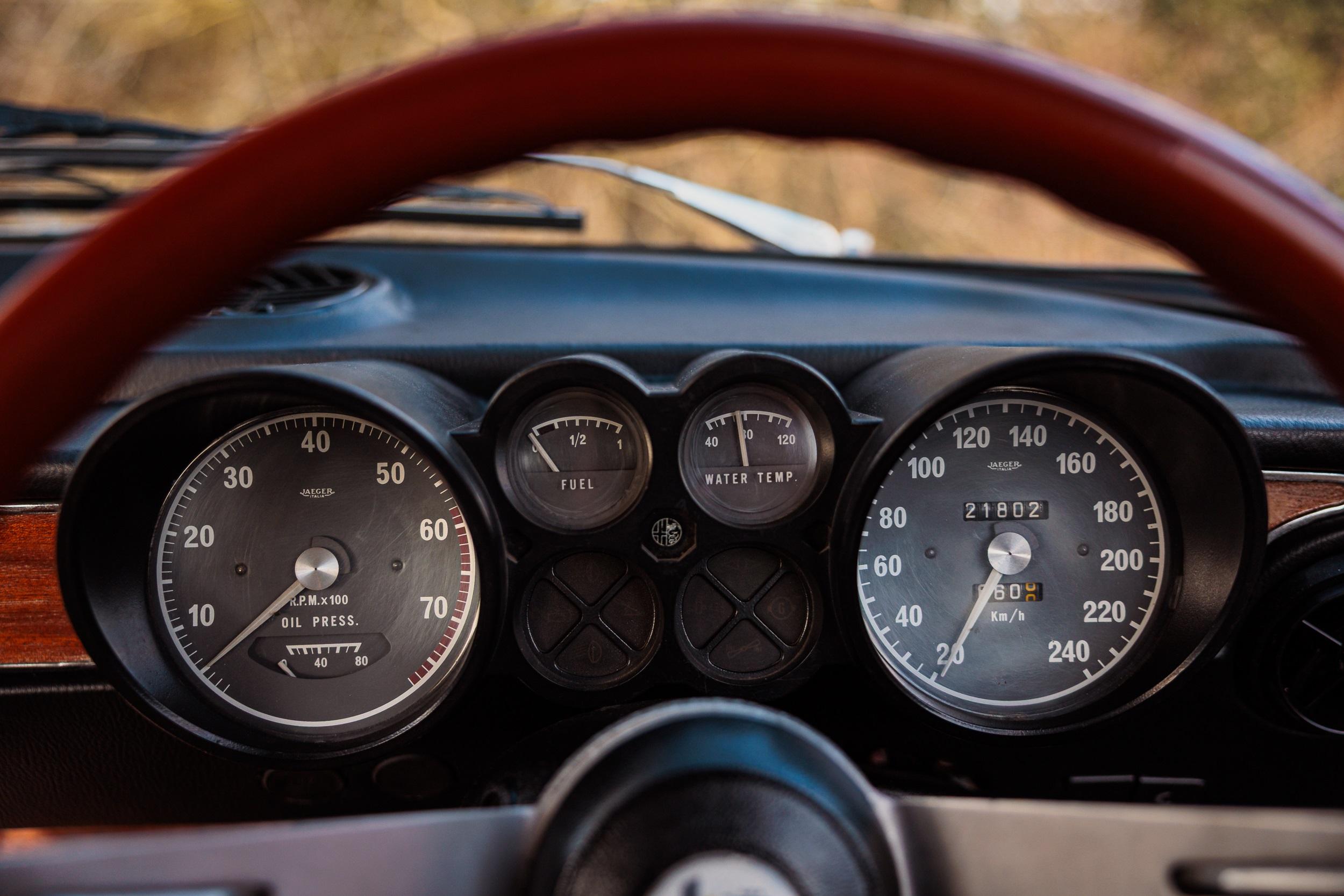 This example, in dark blue metallic, was produced for the South African market. Acquired by a South African owner in 2021, it was treated to a comprehensive programme of improvements, including an engine rebuild with new camshafts and pistons, a rebuilt cylinder head, a full repaint and the installation of a leather interior in place of the original vinyl. Suspension and brake upgrades followed, along with the fitment of a Harvey Bailey-designed Classic Alfa handling kit in 2022. That same year, the car competed in the inaugural Cape 1000 rally, covering 1,000 miles over four days and finishing second in class, later featuring in Octane magazine and various online coverage. It also achieved first in class at an Alfa Romeo South Africa concours event and took part in the Distinguished Gentleman's Drive. Although it retired from the 2023 Cape 1000 with an alternator issue, this was subsequently rectified shortly thereafter.