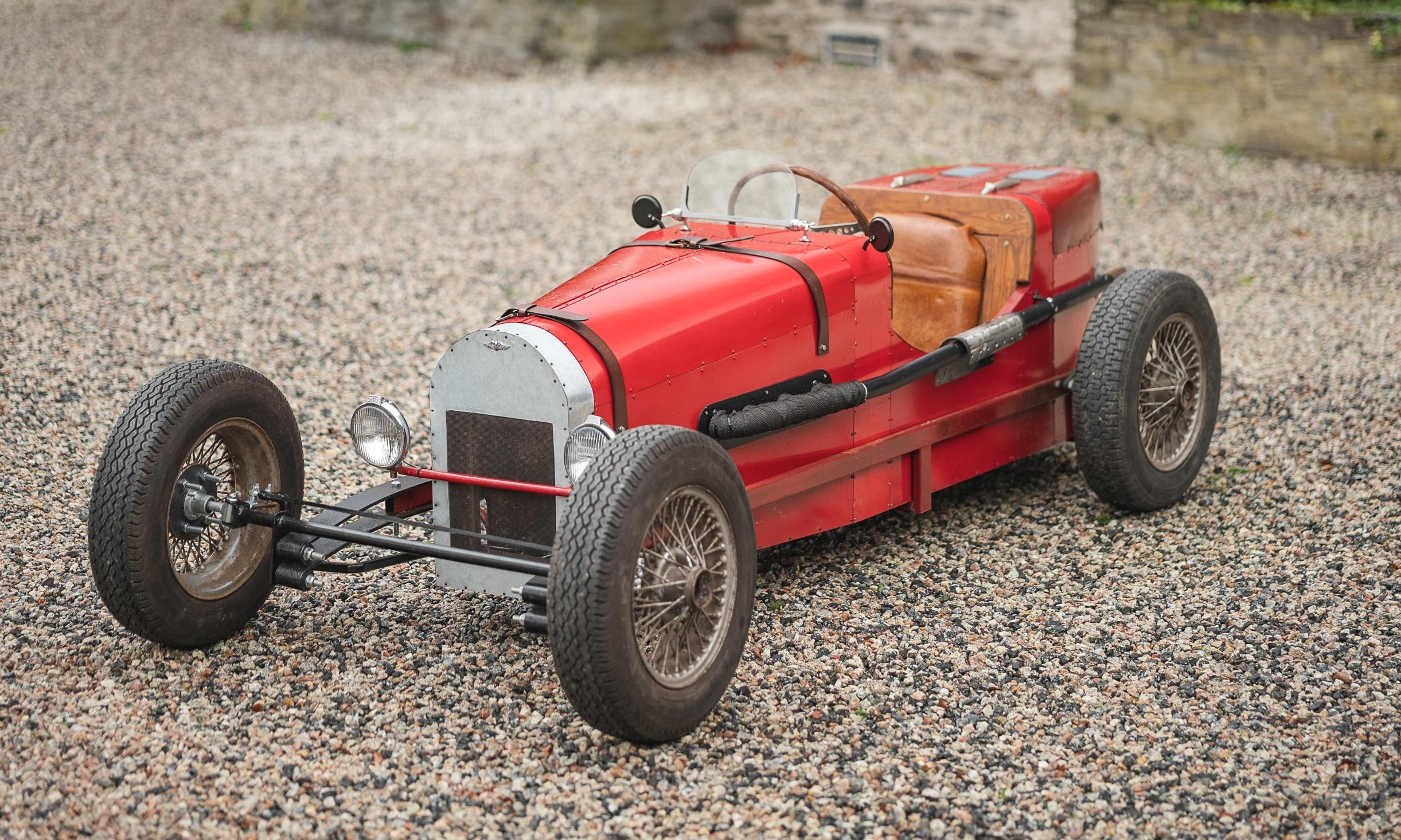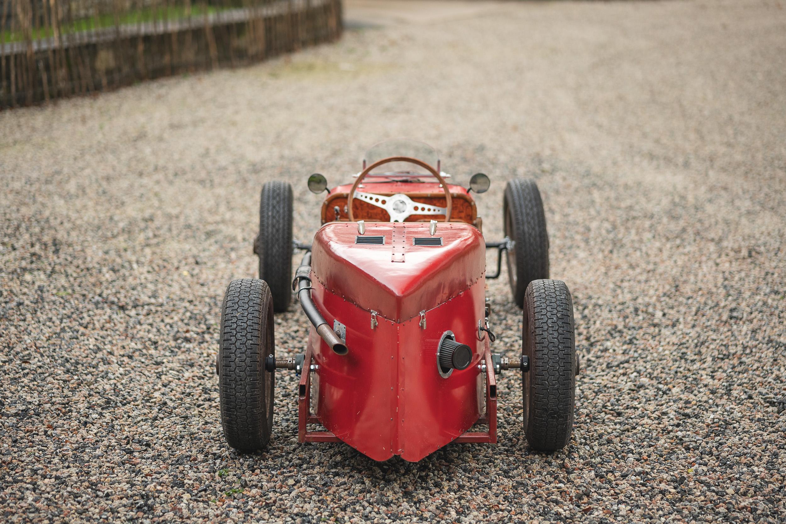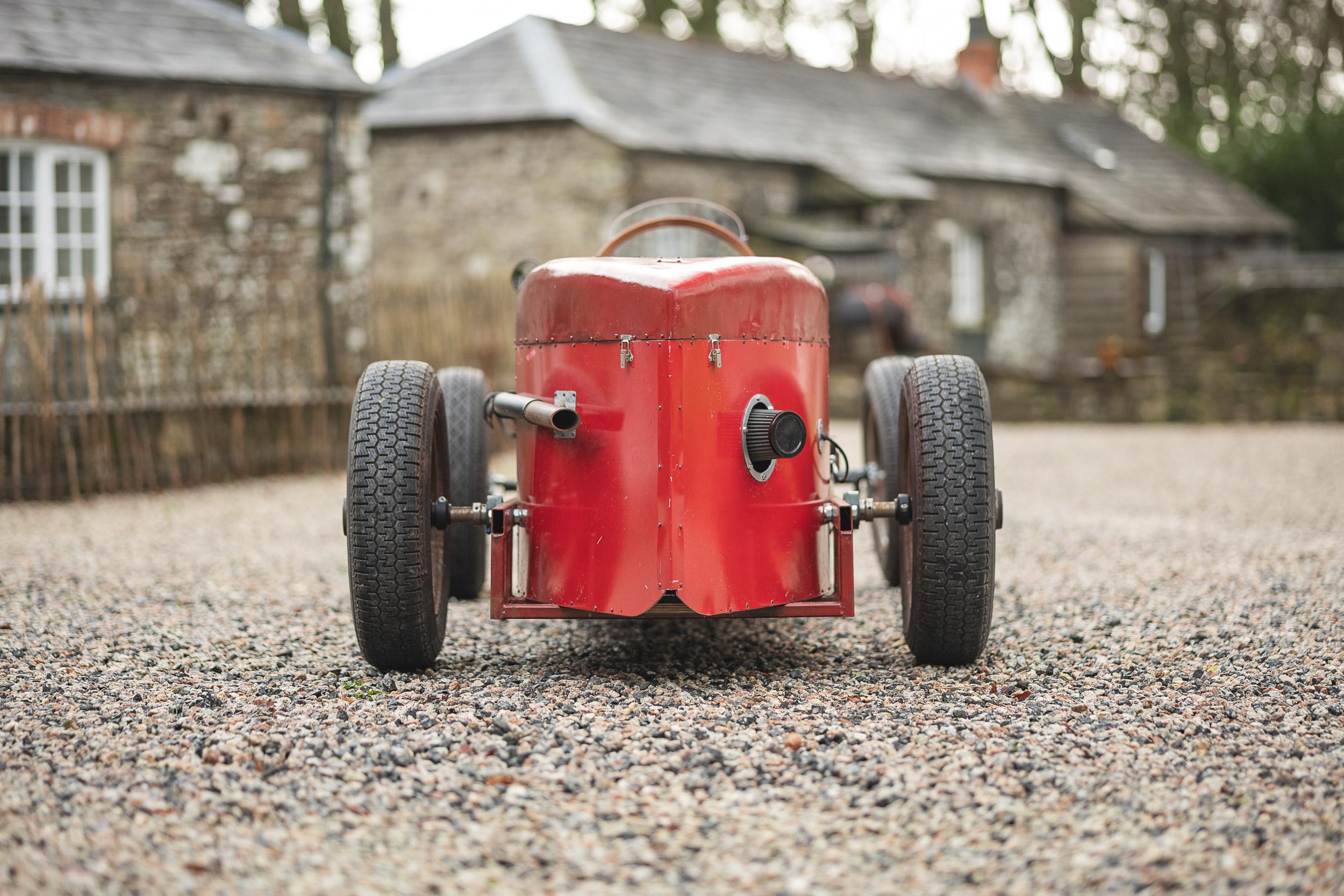 A wonderful throwback in the form of a 1:2 scale replica or evocation of the Formula One cars of the time. Bespoke and handmade this is a true one off with the iconic ducktail and with an engine from a Lifan lawnmower comopany. This is a wonderful toy, museum or man cave piece or if it were us, we would recommission and use it for sheer fun. It looks wonderful and will undoubtedley attract interest. Consigned by Mathew Priddy