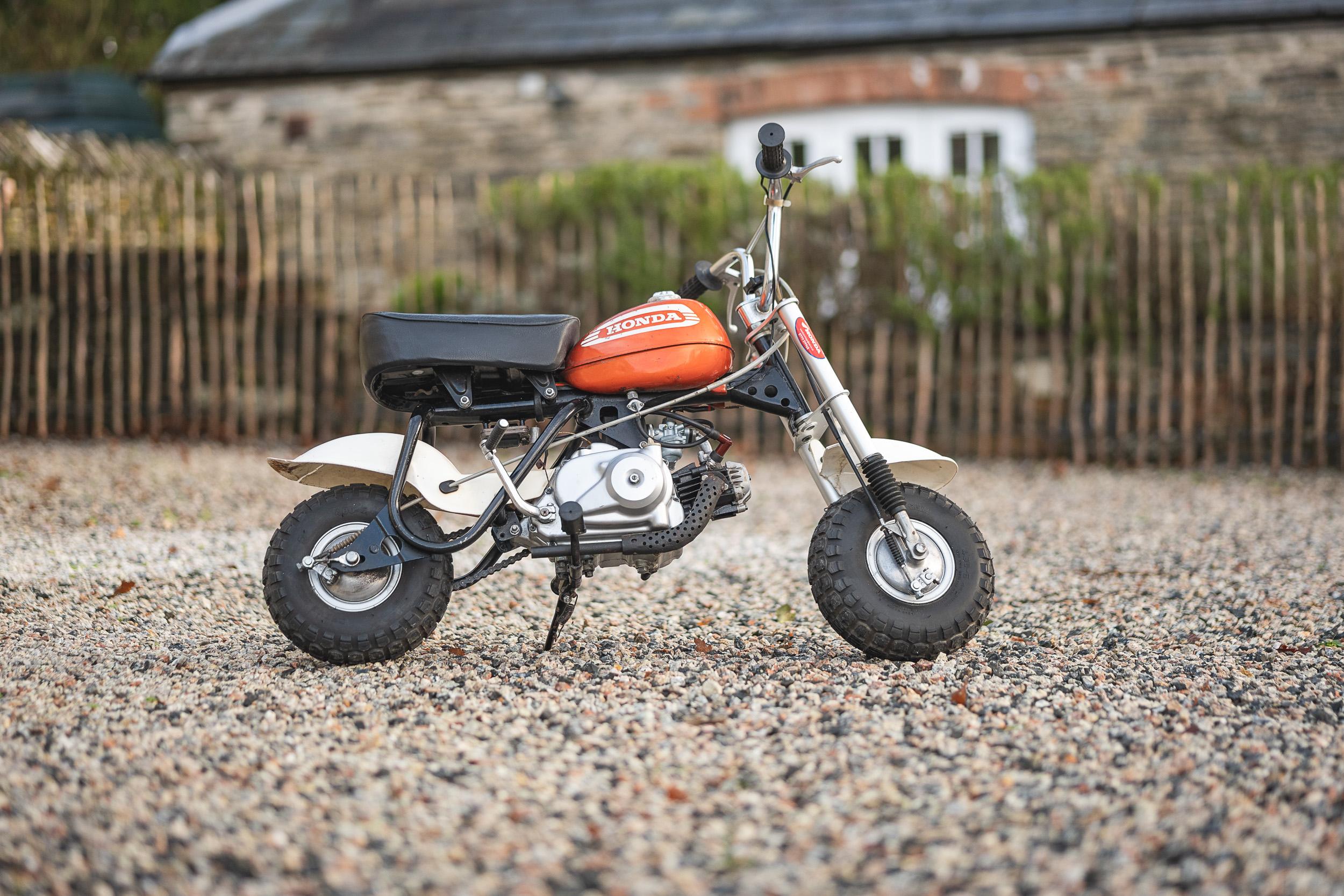 The 1971 Honda QA-50 Monkey Bike is a charming early example of Honda's youth-oriented minibikes. Powered by a 49cc air-cooled two-stroke engine, it was designed to be lightweight, simple, and unintimidating for younger riders. With its compact proportions, low seat height, and playful styling, the QA-50 was easy to transport and maintain, helping introduce a generation of riders to motorcycling in a safe, accessible way. Nothing is more fun than a Monkey Bike and this example is presented in bronze with a fair patina, it will require some recommissioning but offered without reserve it represents excellent value. Consigned by Mathew Priddy