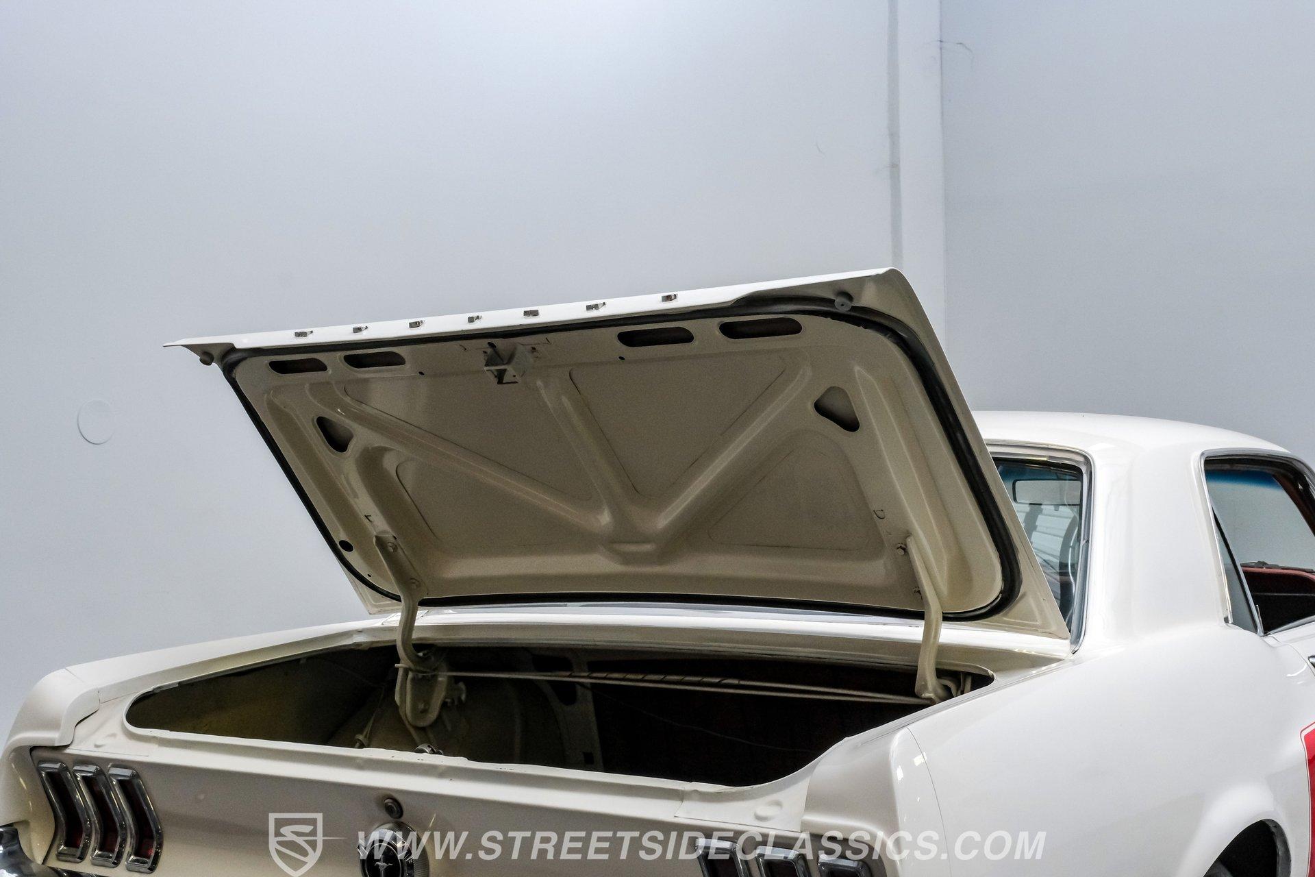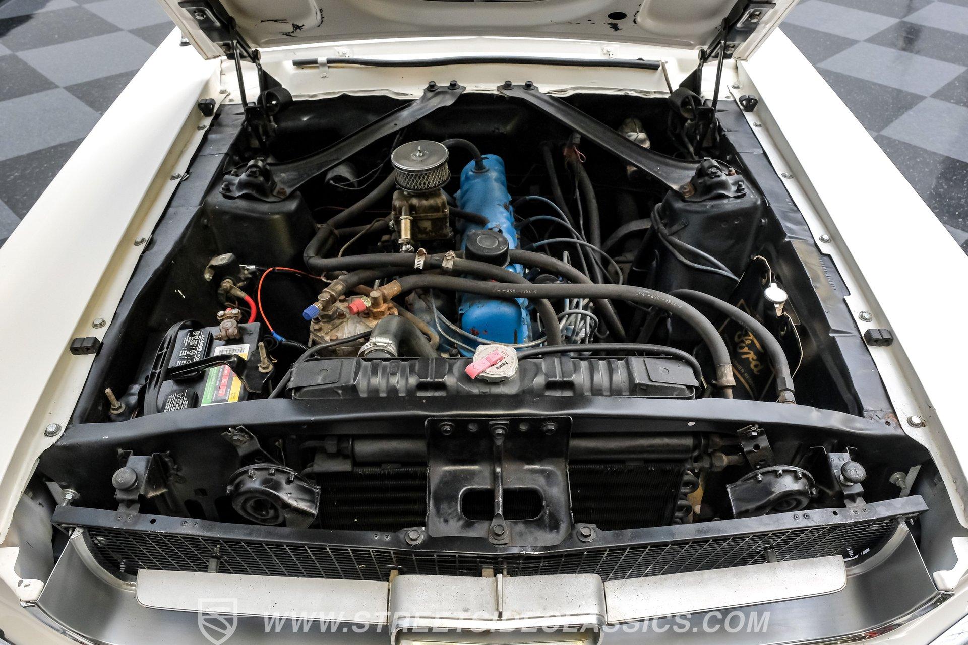 Under the hood, you'll find a correct T-Code 200ci inline 6-cylinder engine with a single-barrel carburetor and factory-style intake and exhaust manifolds. The engine bay maintains a stock appearance, enhanced by an R134-A adapted A/C compressor. Paired with a 3-speed manual transmission, this Mustang offers a driving experience that's both engaging and authentic. The car rides on factory-style suspension delivering a smooth and confident ride.