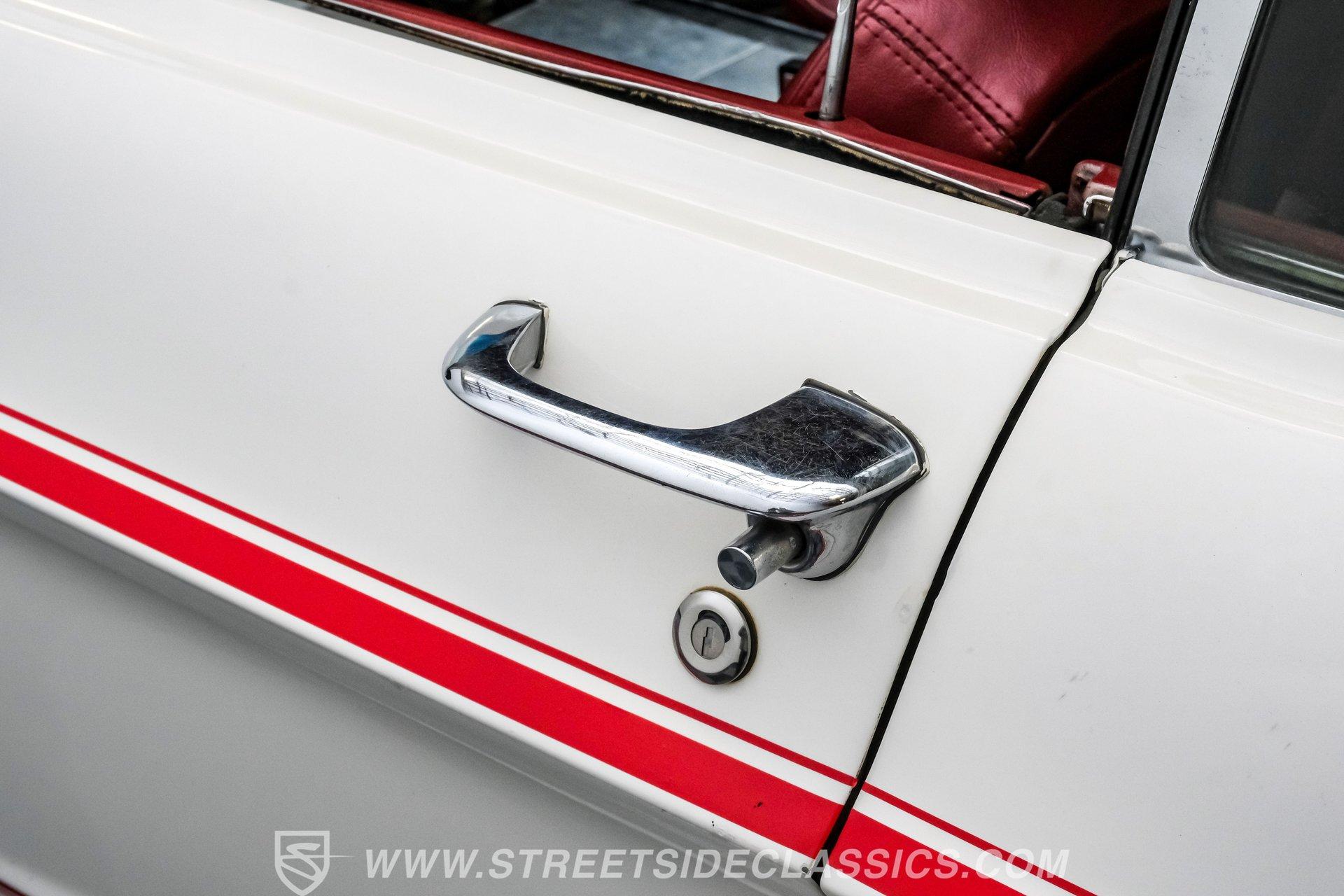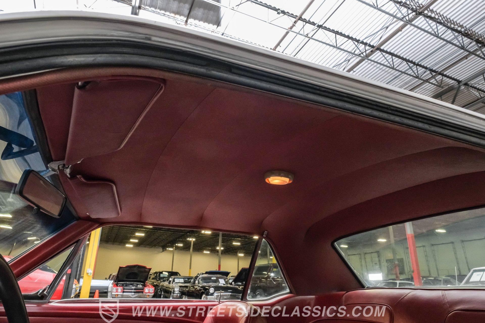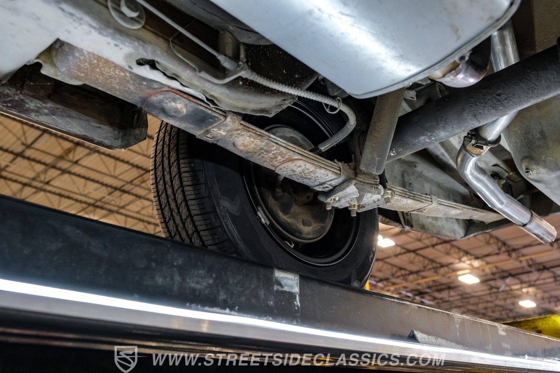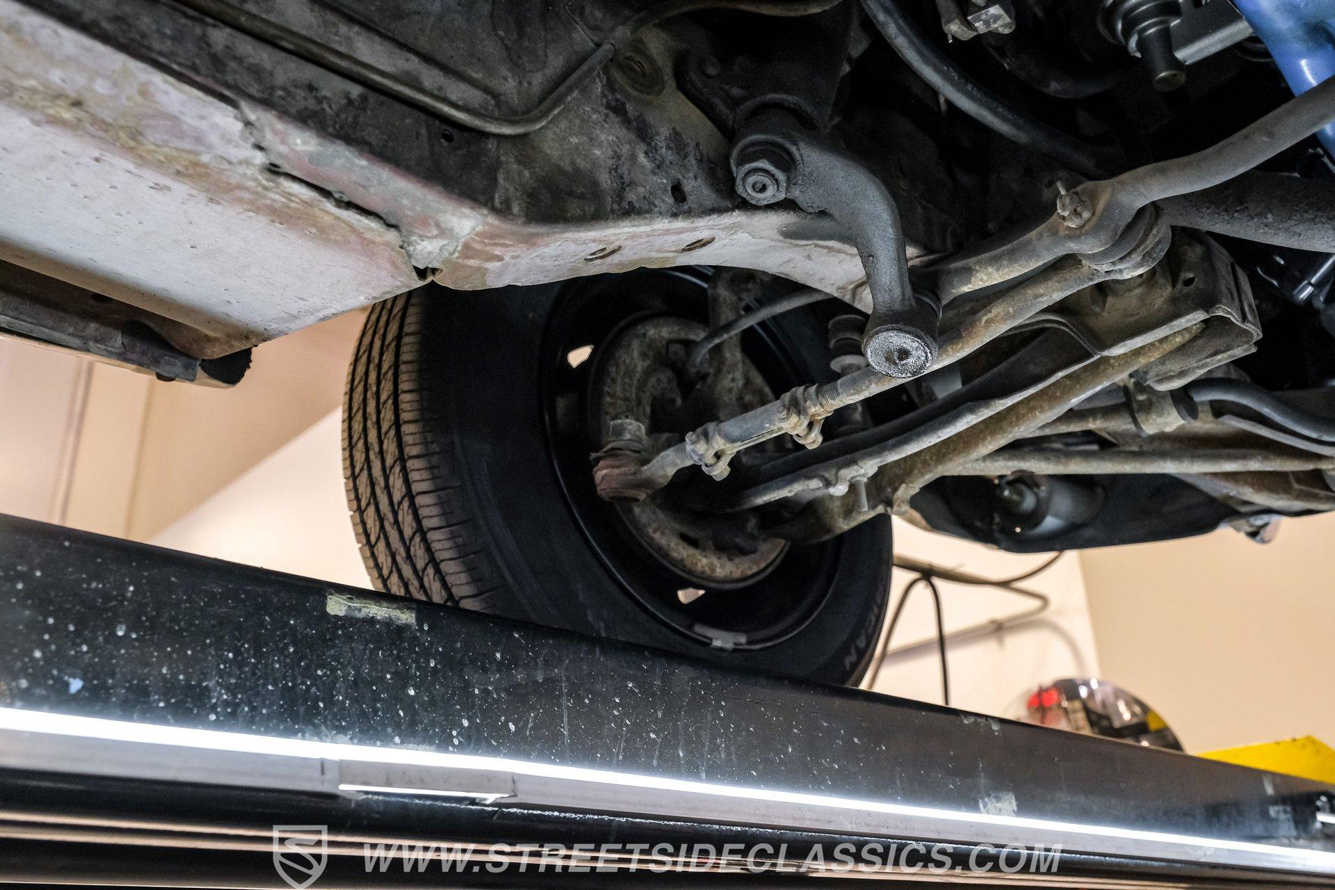 Step inside and experience the vintage-inspired red vinyl interior, complete with bucket seats and matching door panels that capture the spirit of the era. The cabin features a factory-style center console and shifter, a clean dash with clear gauges, and an under-dash A/C unit for added comfort. The headliner, carpets, and door panels all coordinate for a cohesive look, while a Pioneer AM/FM/CD radio with aux input and Sony speakers blend classic style with modern convenience.