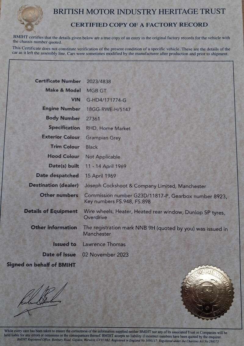 - Pleasingly original in specification throughout, retaining the features that many enthusiasts consider define the most attractive and purest period of MG B GT production