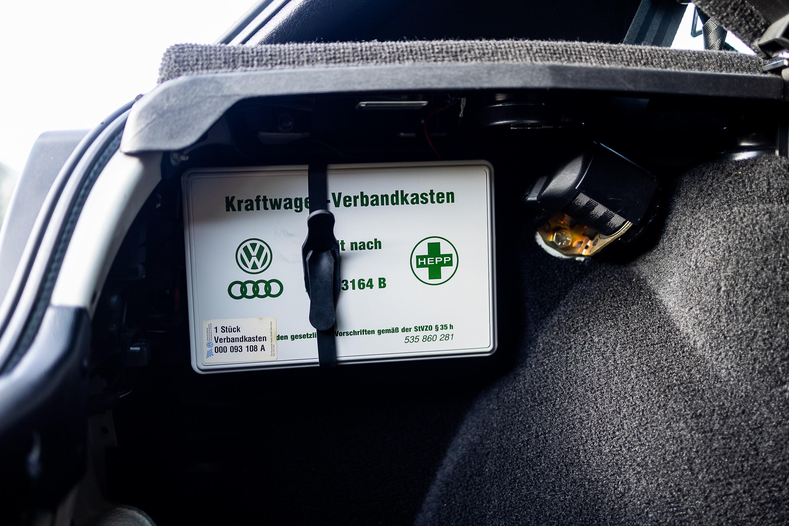 What sets this car apart is its remarkable originality. The L90E Alpine White paint is entirely unrestored, with all panels being original. Period details such as the VAG-marked aerial, embossed dealer plates, and even the tiny rubber spoiler grommets are present and correct. The interior is virtually as new, with grey fabric seats, unmarked carpets and headlining, and a Blaupunkt radio cassette with rare Votex cassette holder. Even the boot retains its original first aid kit and warning triangle. Mechanically, it is equally strong. The vendor reports no knocks, rattles or smoke, with a clean and orderly engine bay showing all the right factory details, including the early wafer-thin scuttle cover. Recent work includes a cambelt and water pump change.