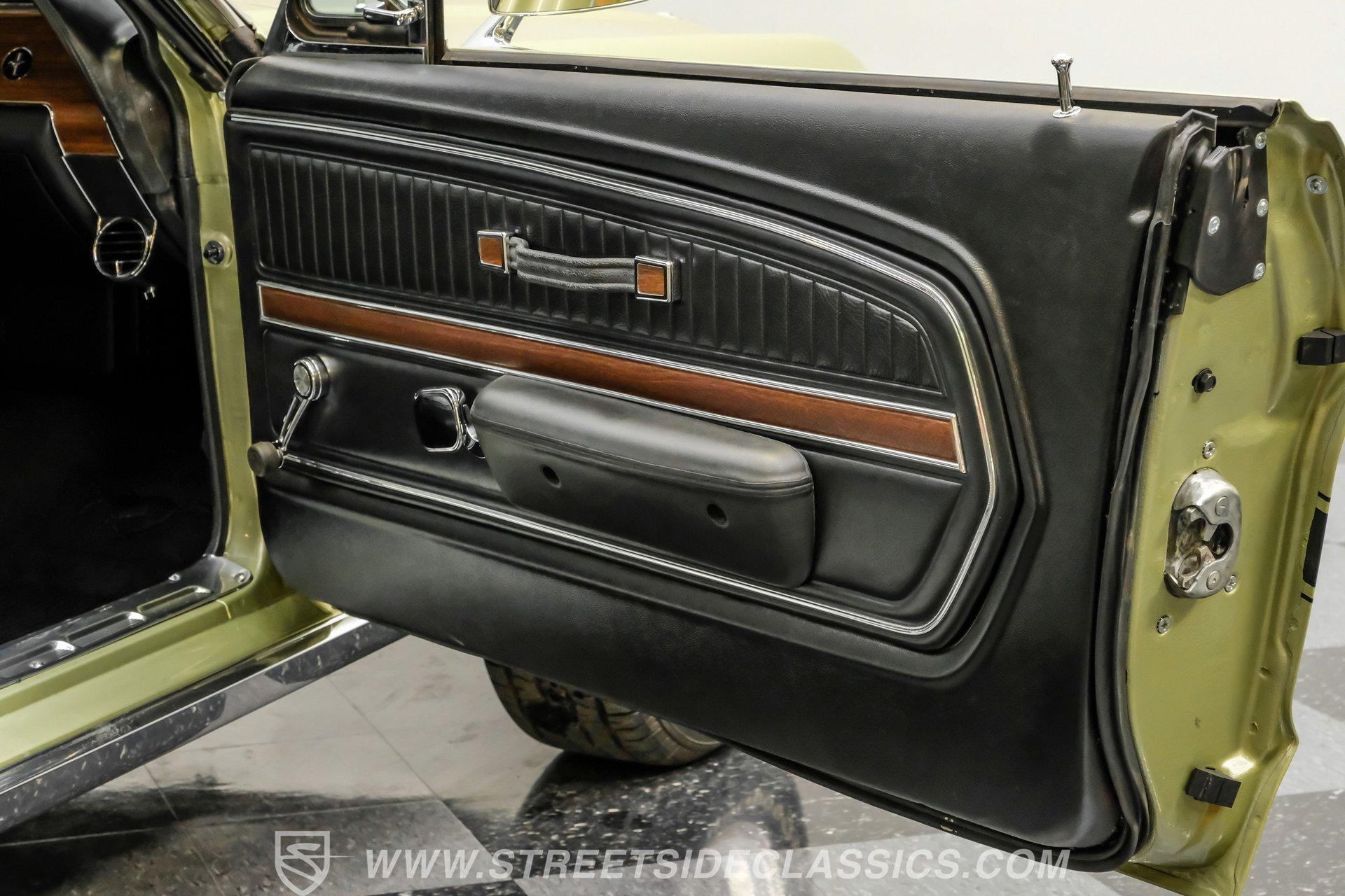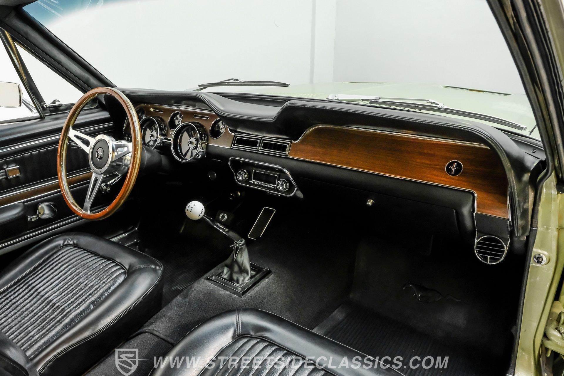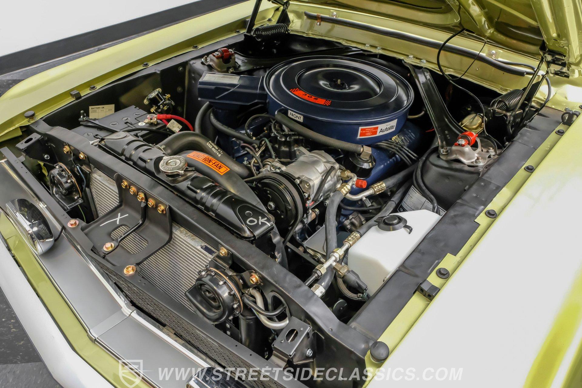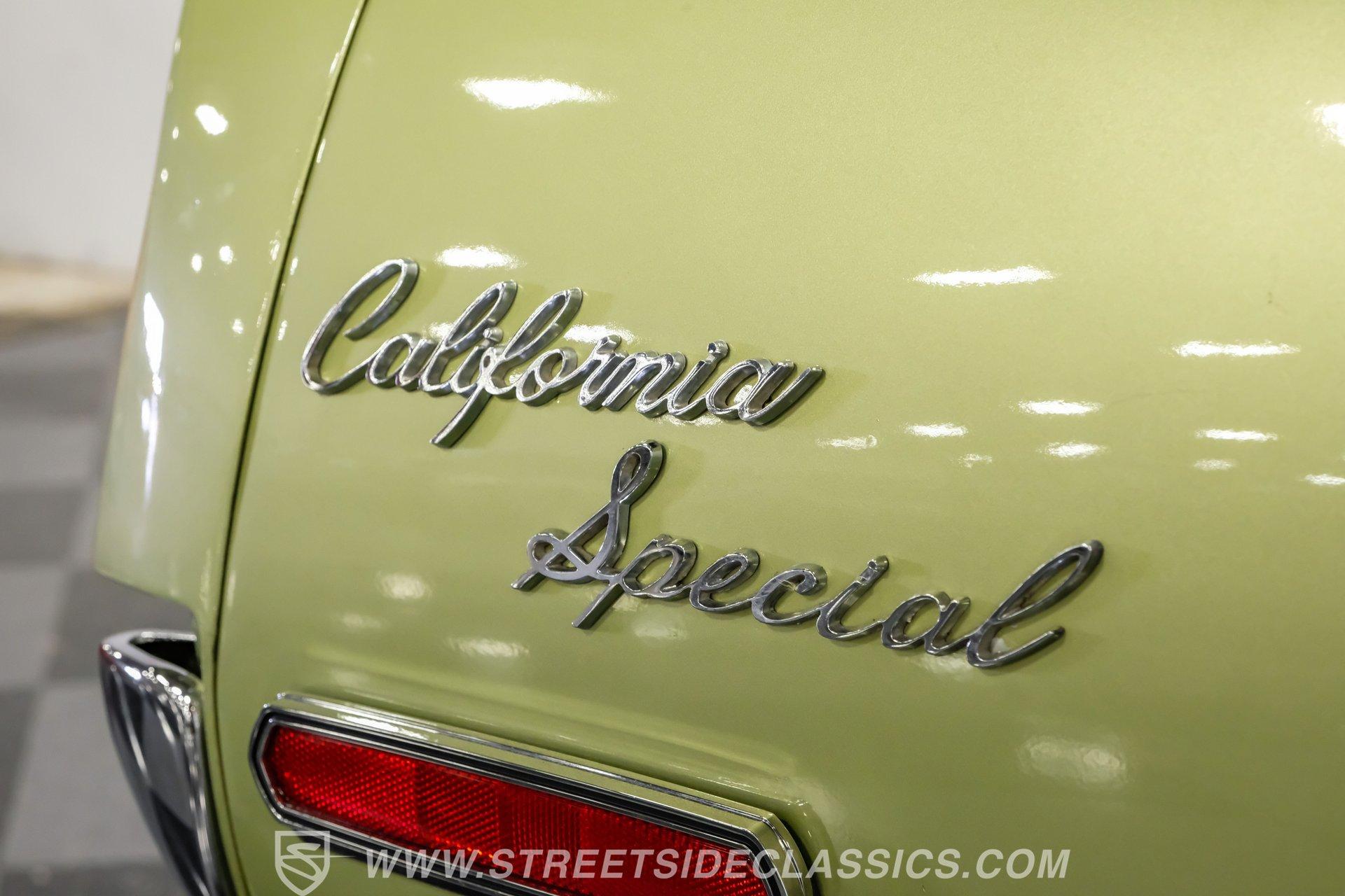 Fully repainted in its factory-correct Lime Gold with a black vinyl roof, this C/S represents the perfect half-way point between a standard Mustang GT and the much pricier Shelby GT350/500. With its unique California Special badging, original restored Shelby-style Lucas fog lights, incredibly fun hood-scoop turn indicator lights, hood-pins, side scoops, and Thunderbird-derived taillights just like the GT350/500 used, this particular car stands out as even special-er, since its Marti Report tells us it was a California Special that was actually sold new to a Texas dealer, making it one possibly only a handful of GT/CS models sent outside its intended market from the factory.