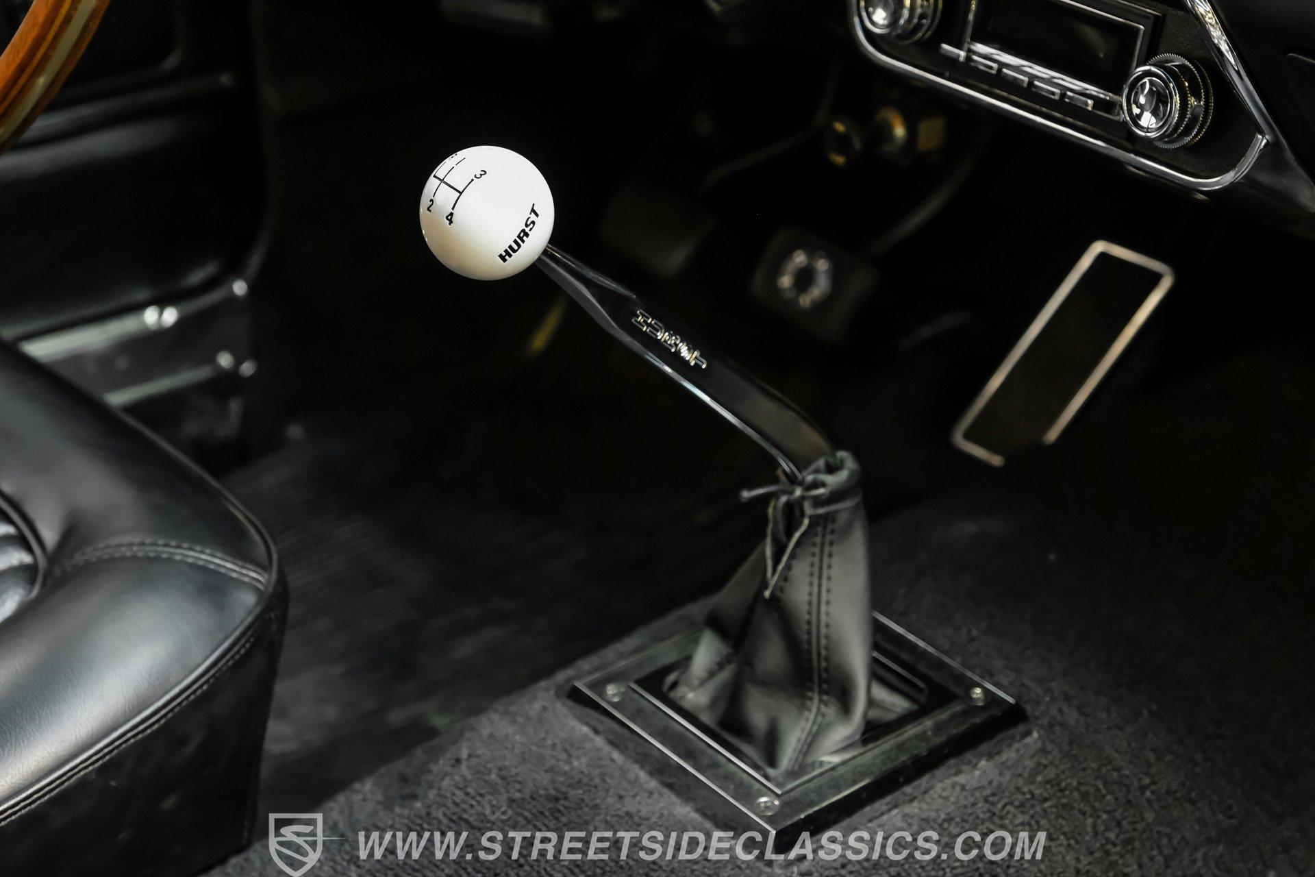 Under that aggressive hood, we find a correct 1968 302 cubic-inch V-8 engine. Fed by a factory-style two-barrel carburetor, spent gases are expelled via factory exhaust manifolds and X-pipe dual exhaust. Originally a three-speed manual, this C/S has been upgraded to a four-speed stick, making cruising far more fuel-efficient. An eight-inch rear transfers power to the pavement via a set of 15-inch, ten-spoke Shelby wheels shod in BFGoodrich Radial T/A tires.