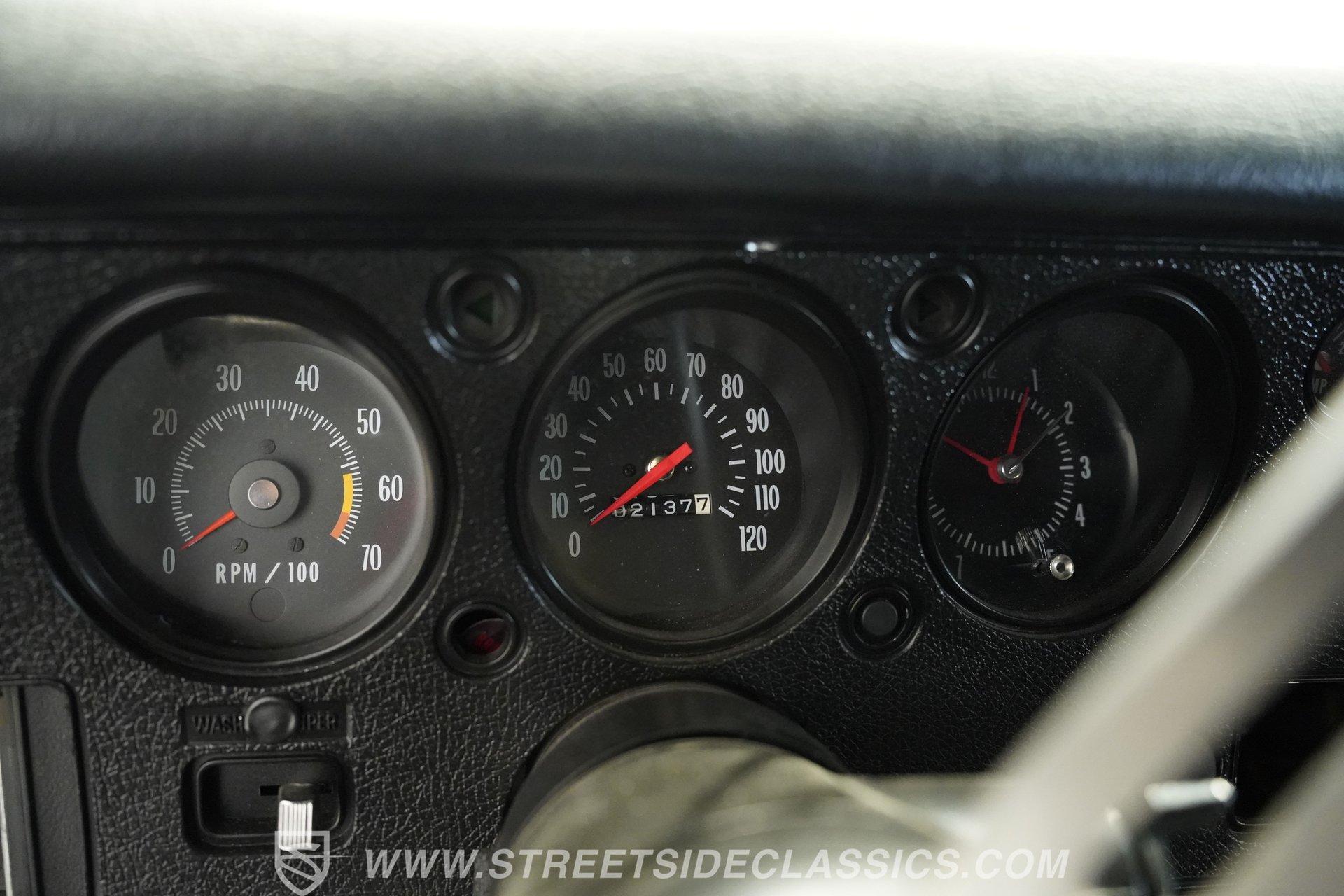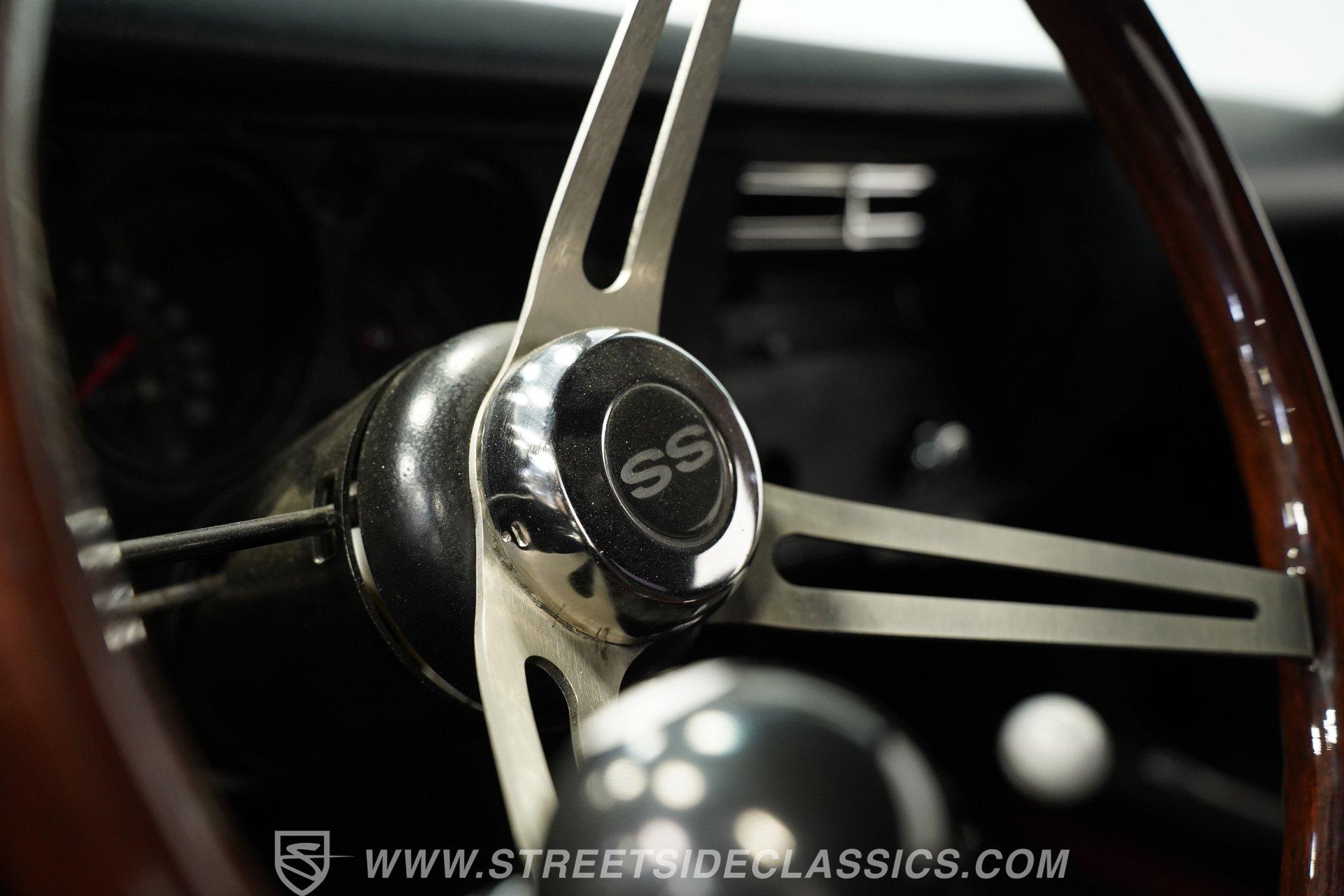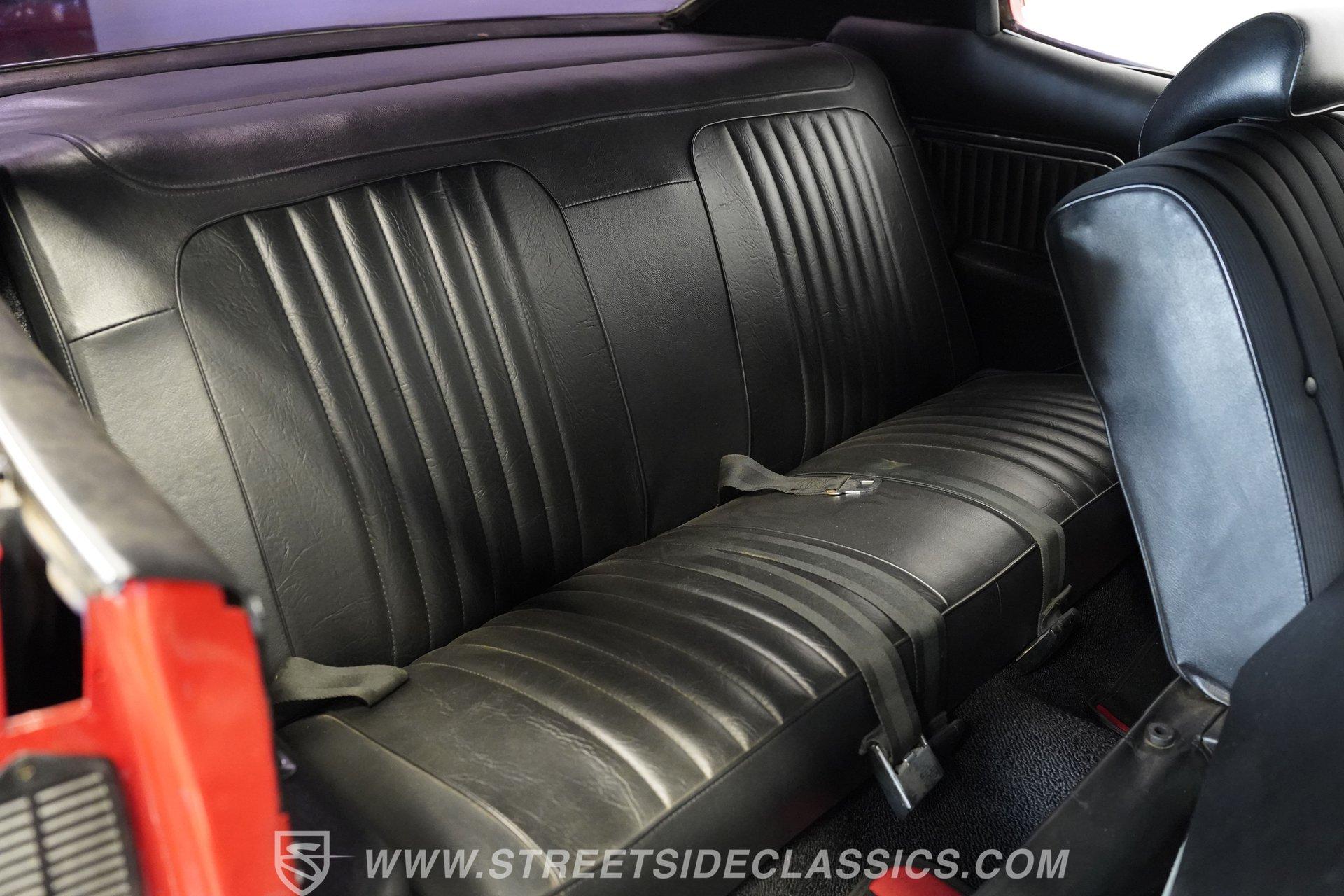 Slide into the cabin and you'll find a stock-inspired interior that combines comfort and classic style. The front features a cloth bench seat, while the rear offers durable black vinyl, all set against a headliner and carpet in good condition. A floor-mounted Hurst shifter gives you direct control over the power, with factory gauges, an SS steering wheel, and a dashboard that evoke the authentic muscle car experience. The interior is complete and presents well for both weekend cruising and car shows.
