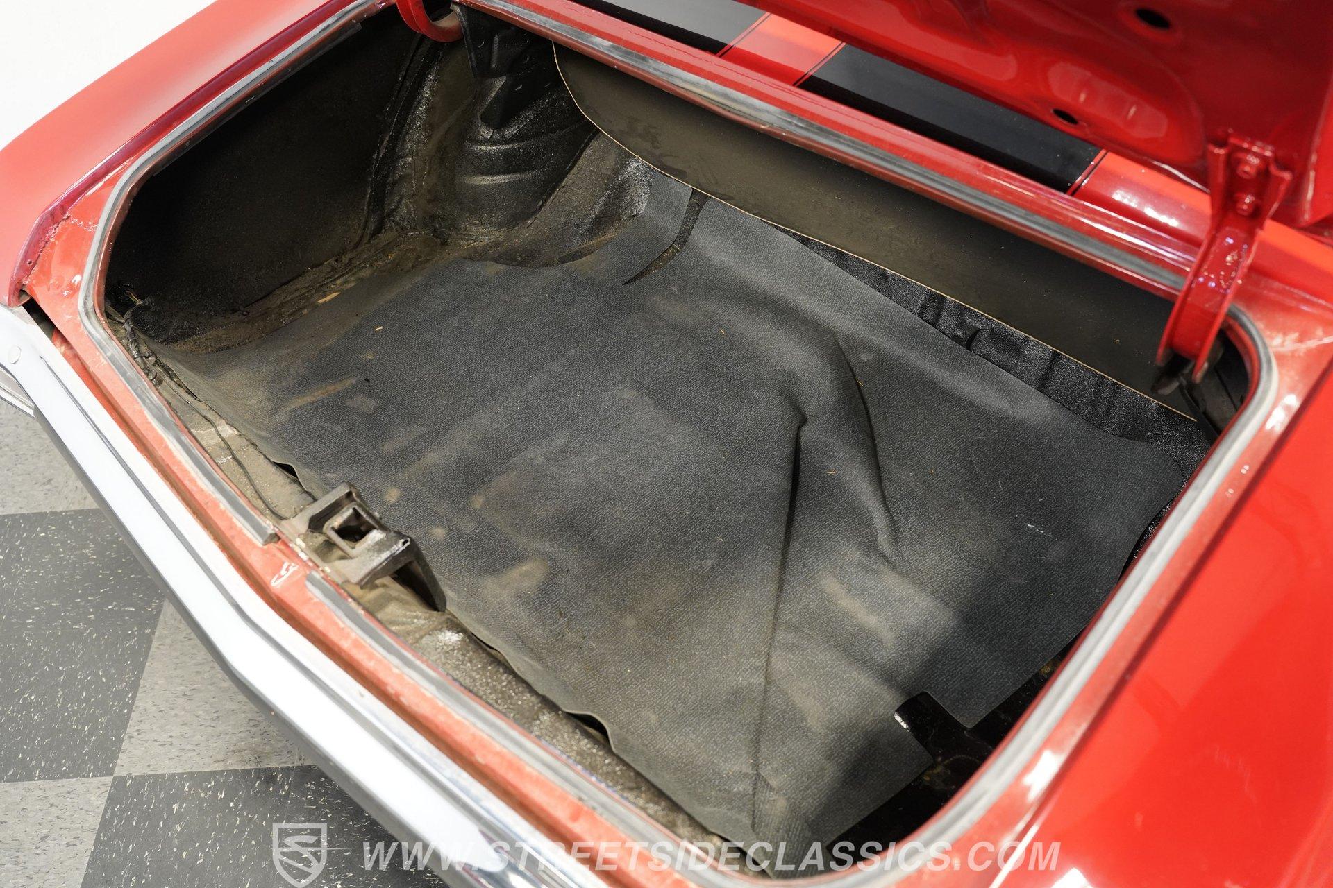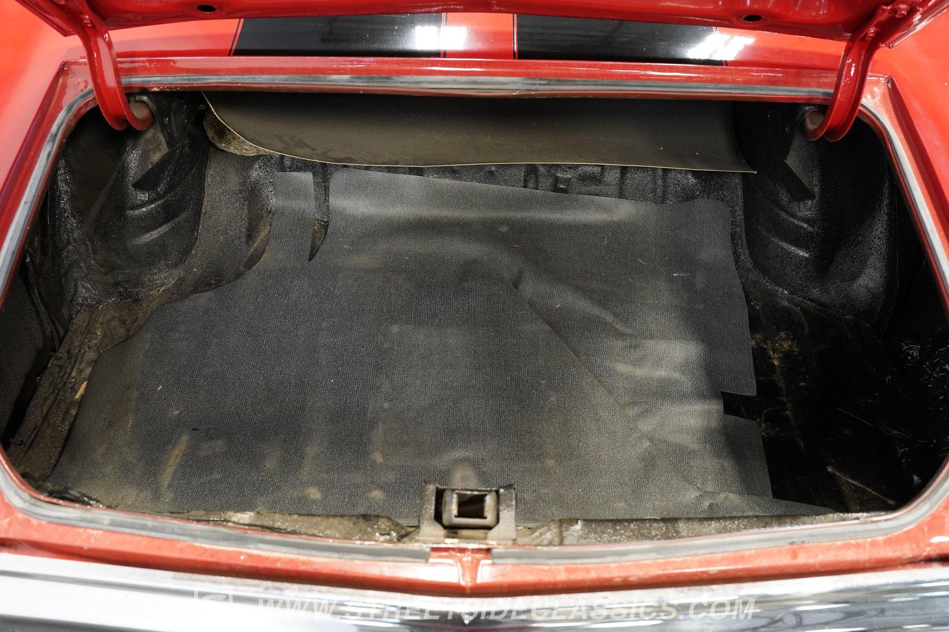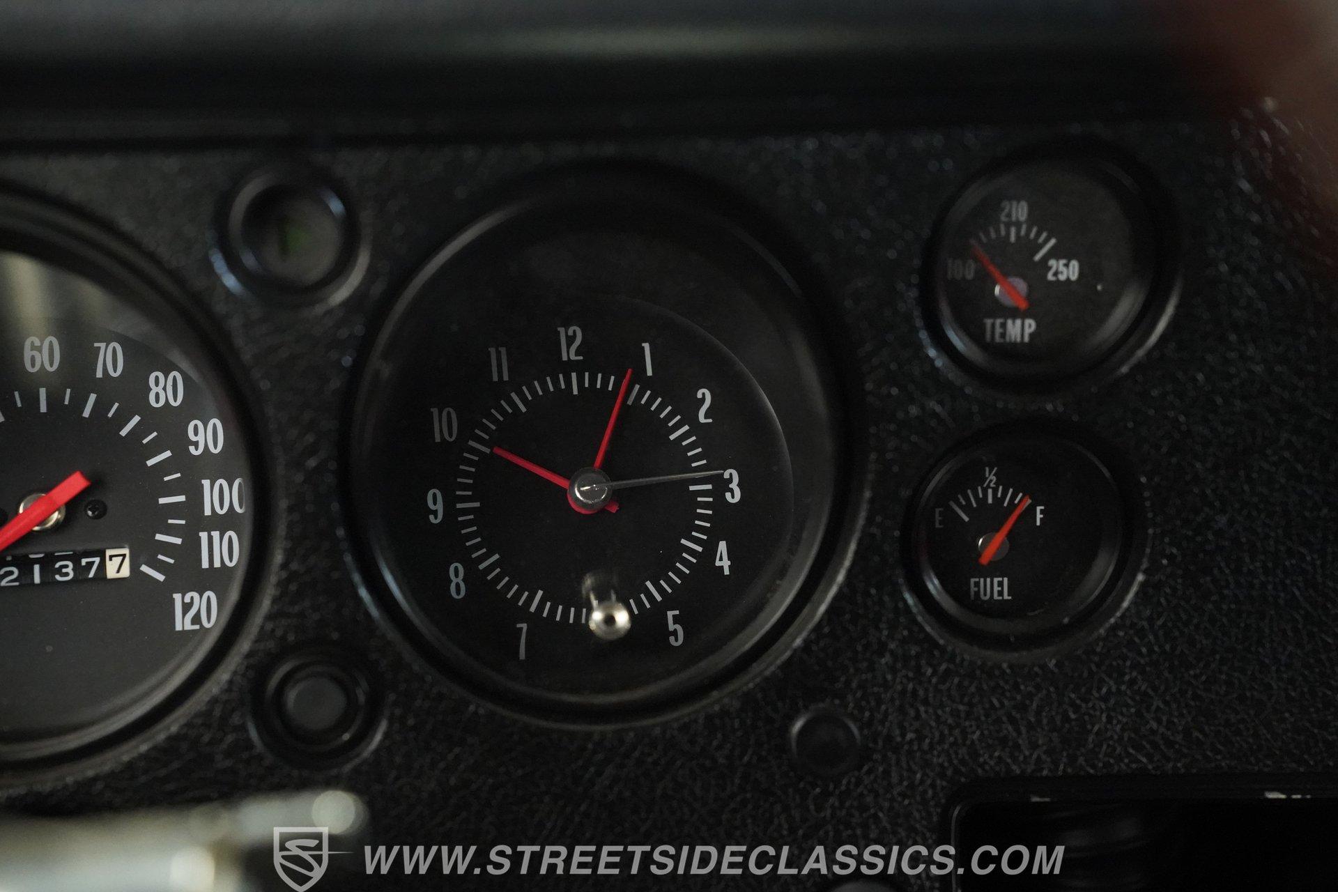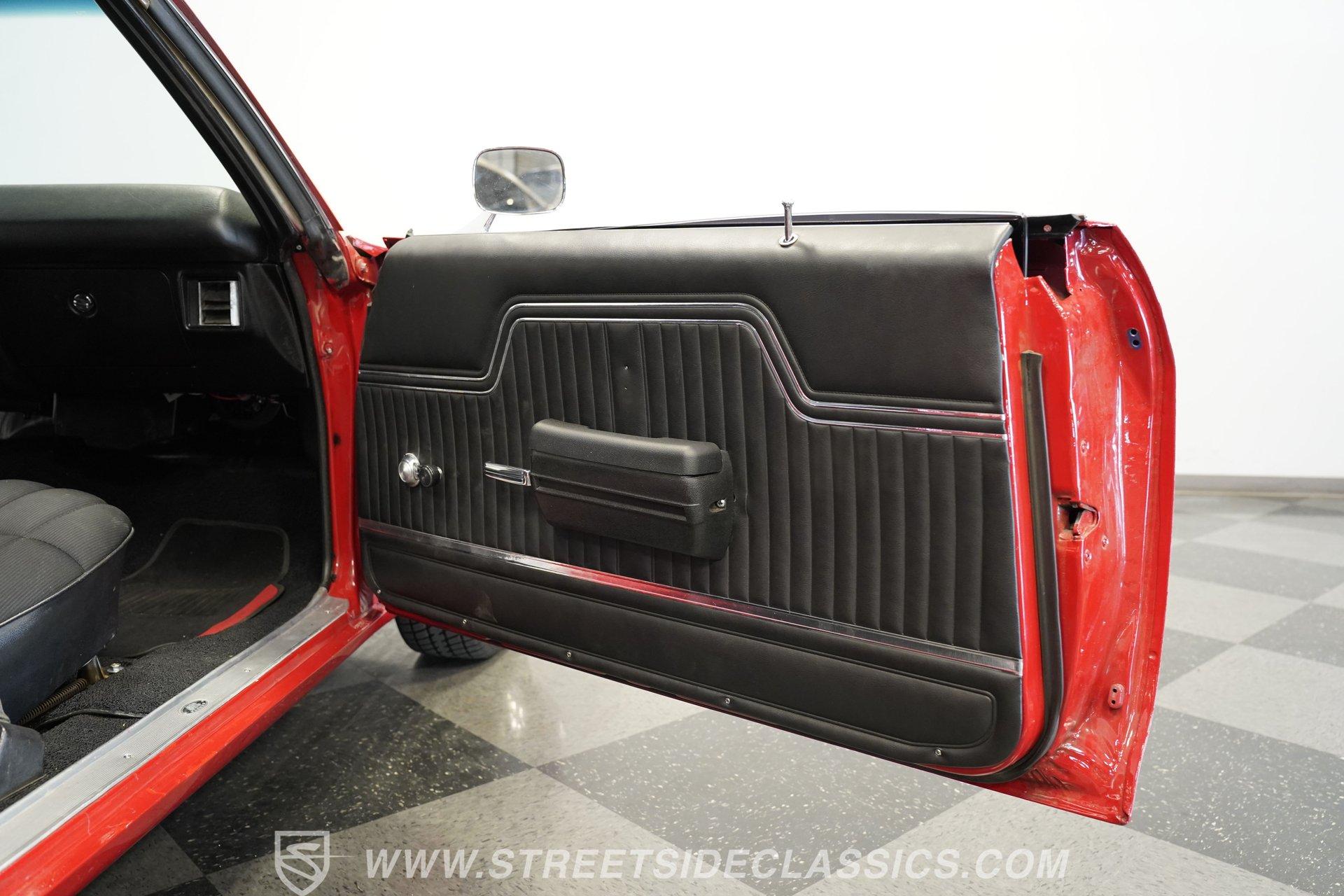 Slide into the cabin and you'll find a stock-inspired interior that combines comfort and classic style. The front features a cloth bench seat, while the rear offers durable black vinyl, all set against a headliner and carpet in good condition. A floor-mounted Hurst shifter gives you direct control over the power, with factory gauges, an SS steering wheel, and a dashboard that evoke the authentic muscle car experience. The interior is complete and presents well for both weekend cruising and car shows.
