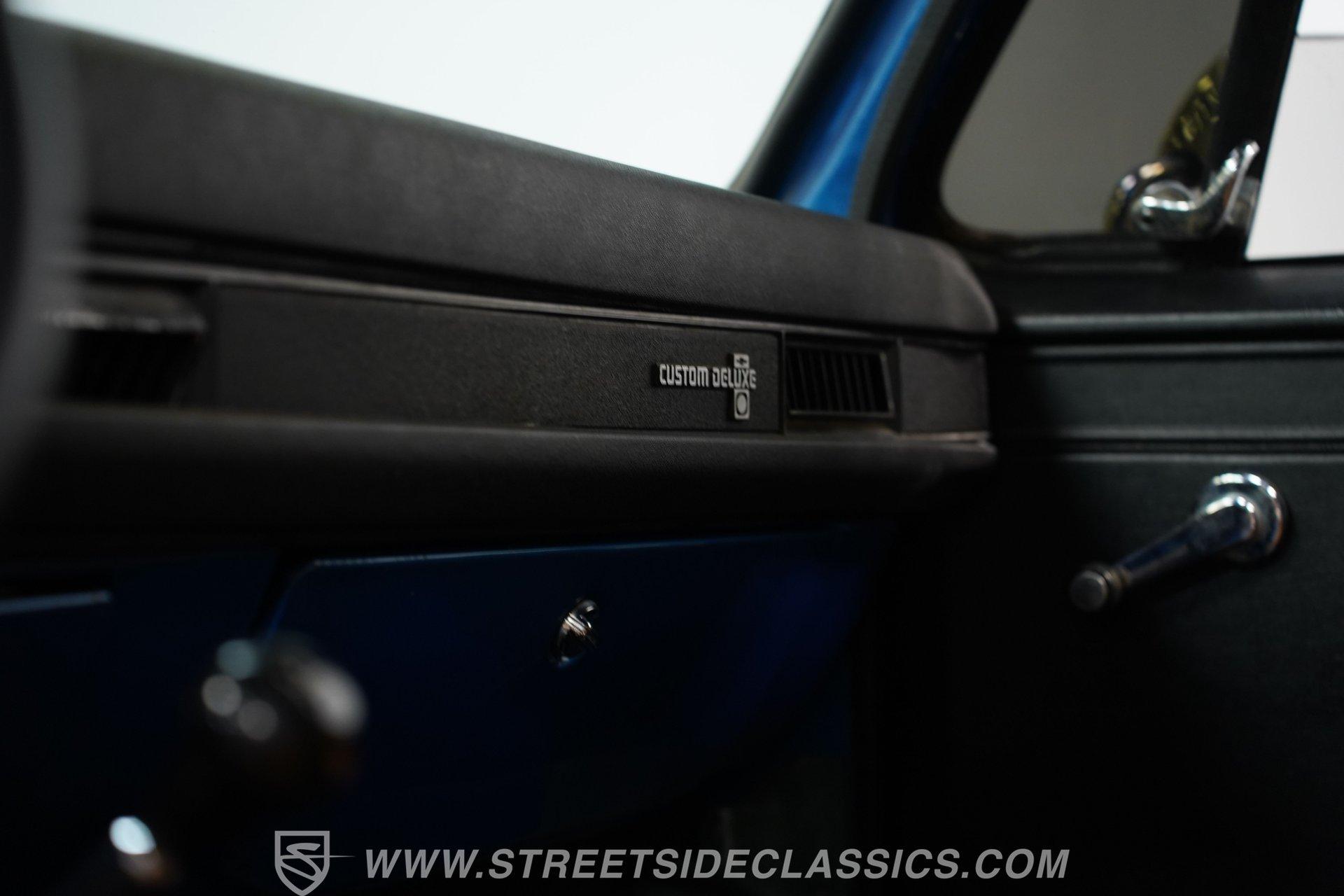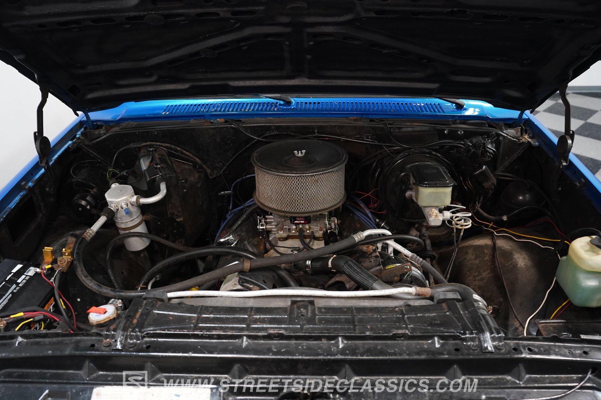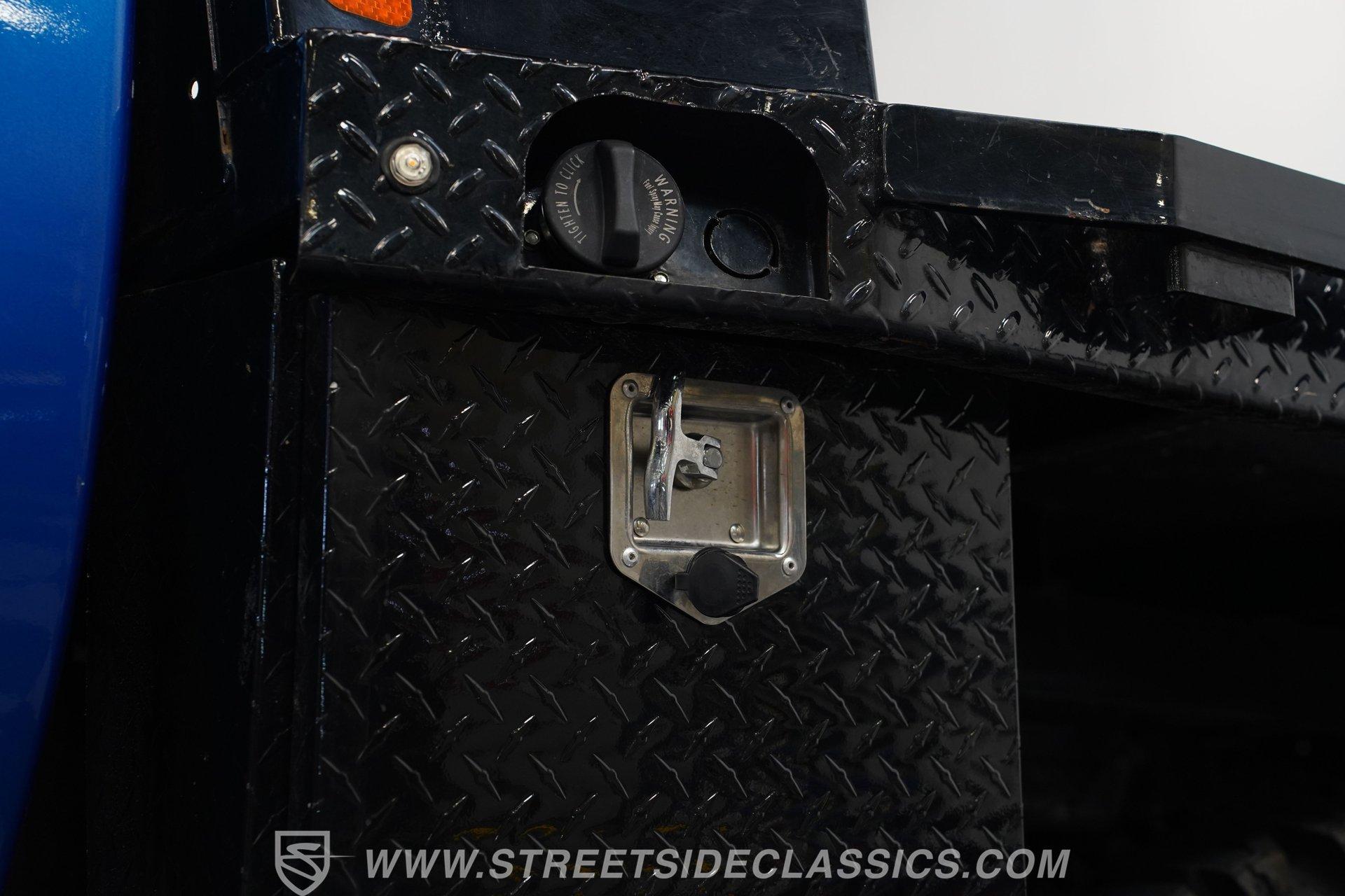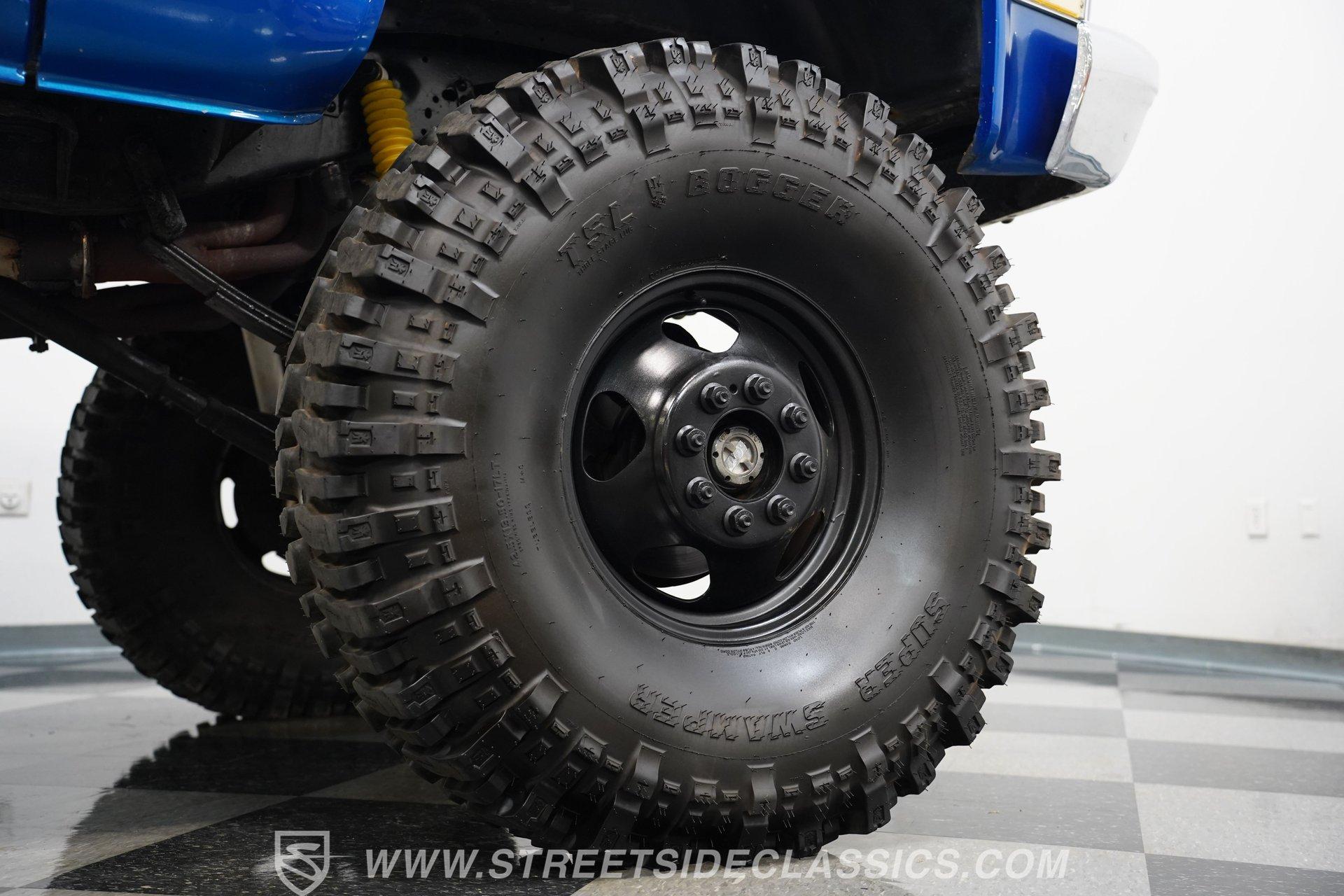 If you can get high enough to see under the hood, you'll find a 350 cubic-inch V8 with an Edelbrock AVS2 1908 4-barrel carburetor. This V8 is connected to an SM456 4-speed manual transmission that runs a Dana 60 rear axle and, when needed, engages a Dana 44 front axle. Both the front and rear rely on leaf springs and shocks for suspension duties, while 17-inch wheels are wrapped in 42.13.50-17LT TSL Bogger Super Swampers for traction. Stopping this massive custom truck are front power disc brakes and rear power drum brakes. And for the deep, throaty sound this truck obviously deserves, there are long-tube headers connected to dual exhaust and Flowmaster mufflers.