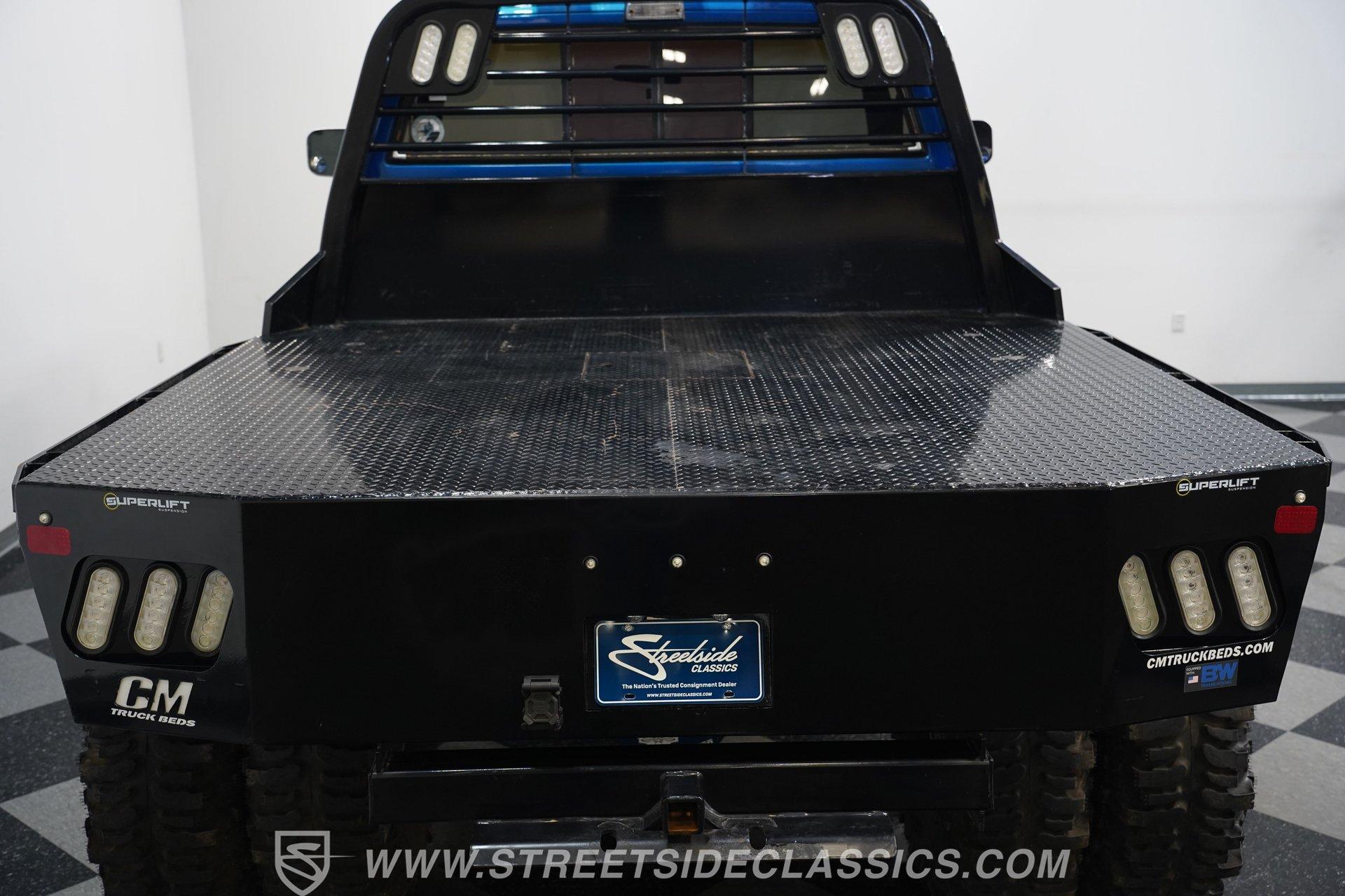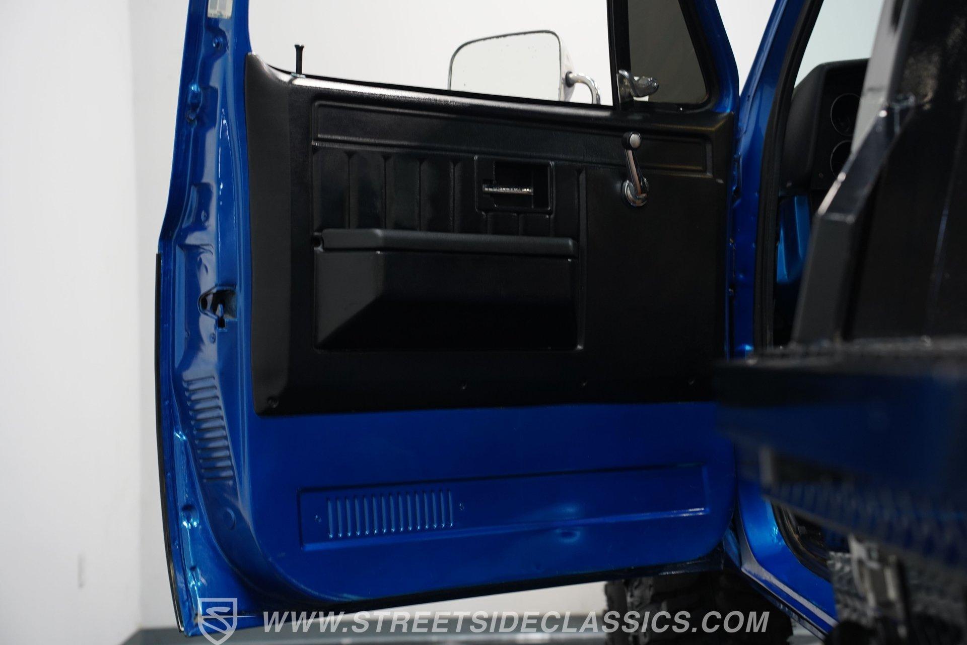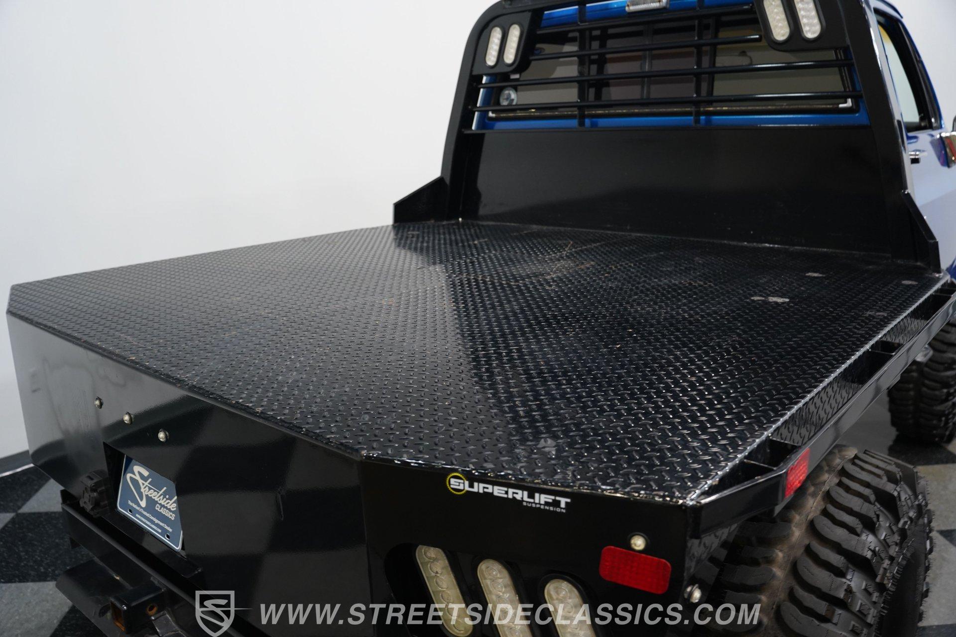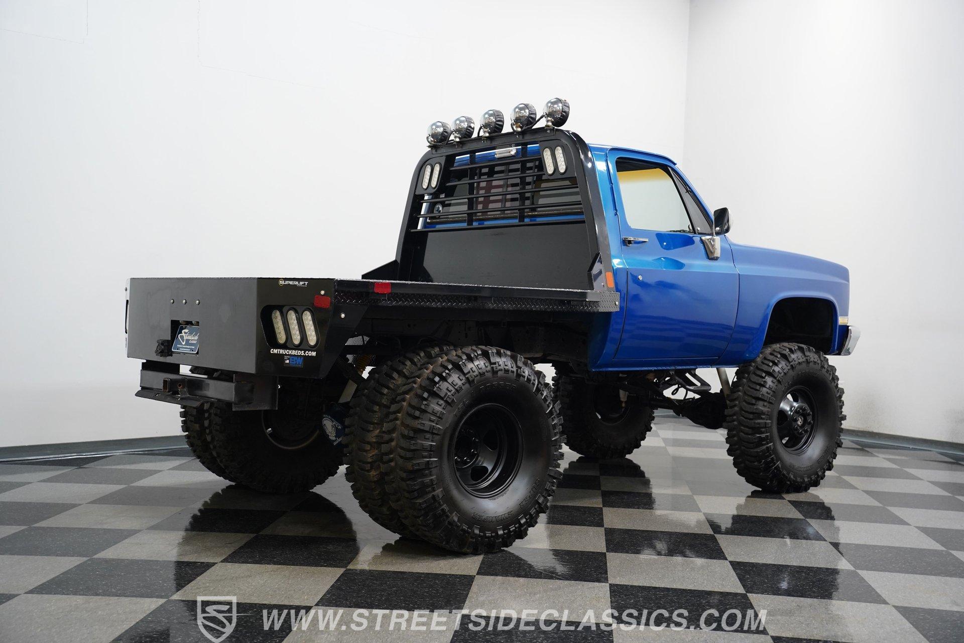 If you ever wanted or needed a monster to drive, here is your chance. This is a 1984 Chevrolet K10 4X4 Dually. Note that Chevrolet never built a short-bed dually from the factory, so this is fully custom. The gooseneck hitch in the rear is for serious heavy towing, and the 8–10-inch lift with 42 ½-inch tall tires means you can go and tow whatever you want, wherever you want. The Bright Blue paint job looks bold and flashy, while the front grille still retains its original look. Five KC fog lights atop the Chevy help you see through whatever madness you encounter, while LED rear taillights ensure you're visible at night from behind.