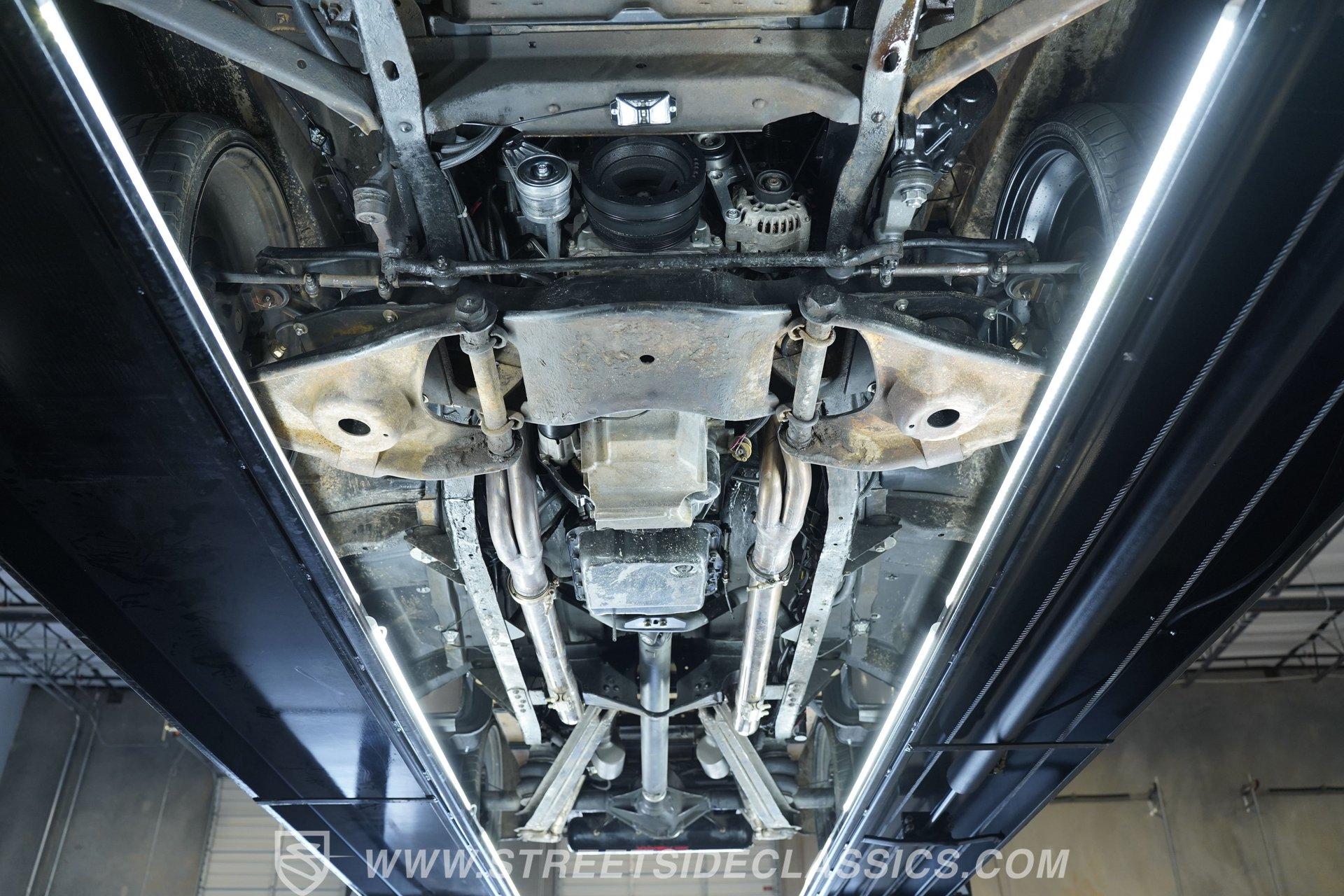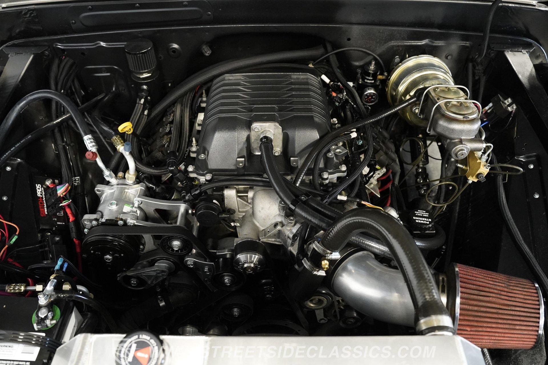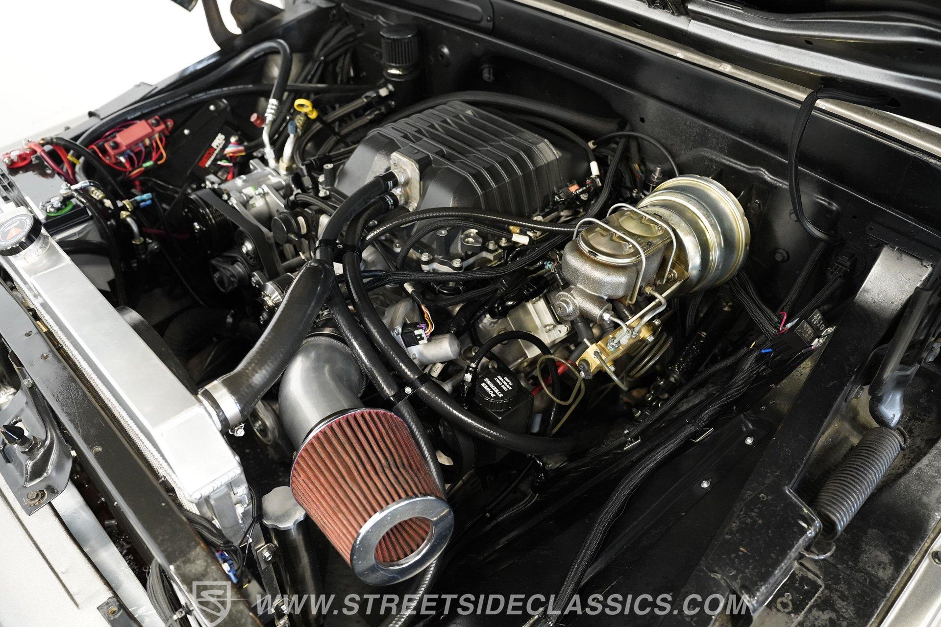 Under the hood is a potent 6.0-liter V8 topped with an LSA supercharger. A serpentine belt drive system keeps everything spinning smoothly, while a Holley Terminator EFI system, combined with a TerminatorX computer and Bluetooth module, manages the engine. An aluminum radiator helps keep temperatures in check. Power is sent through a 4L60 4-speed automatic transmission to a 12-bolt rear axle.