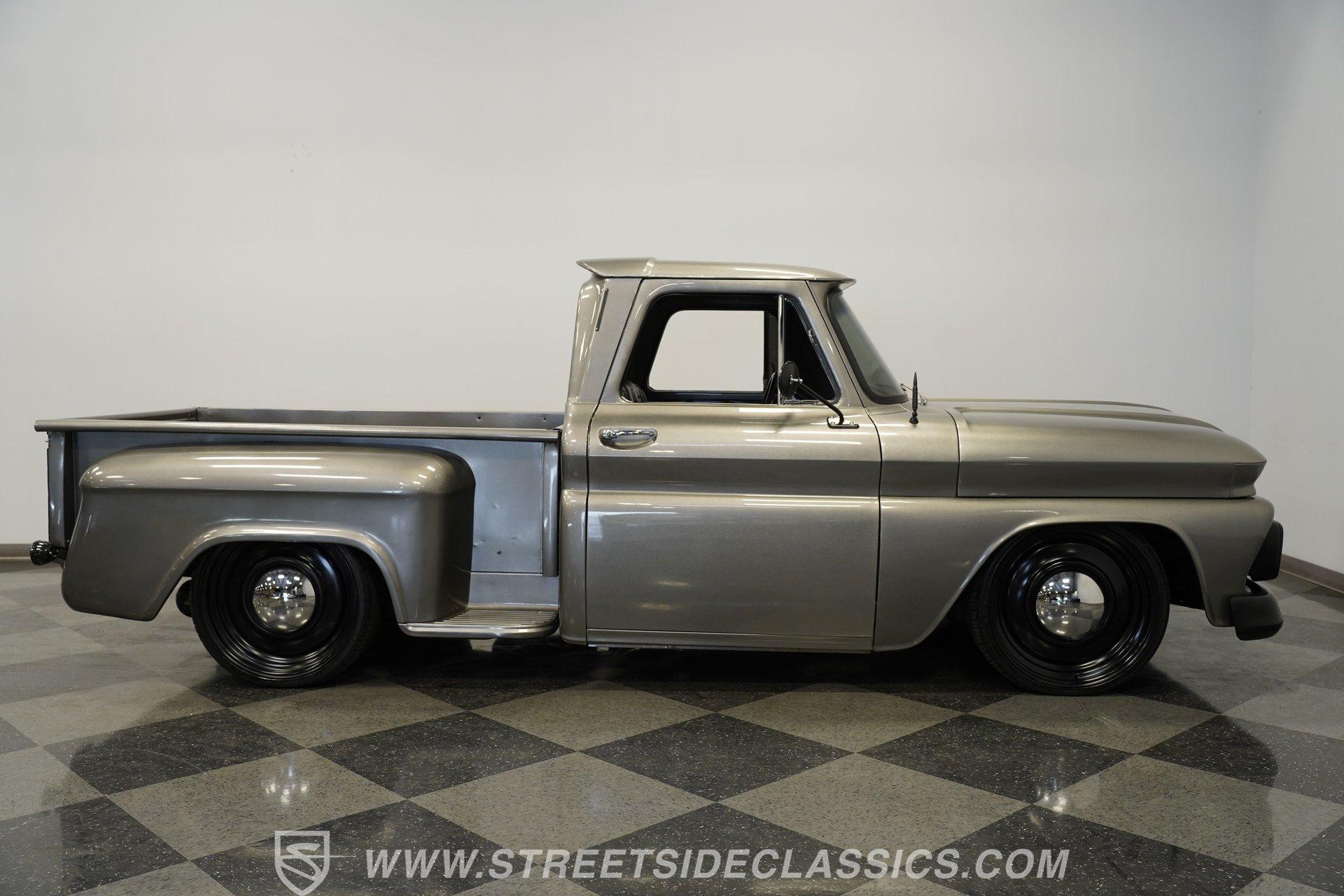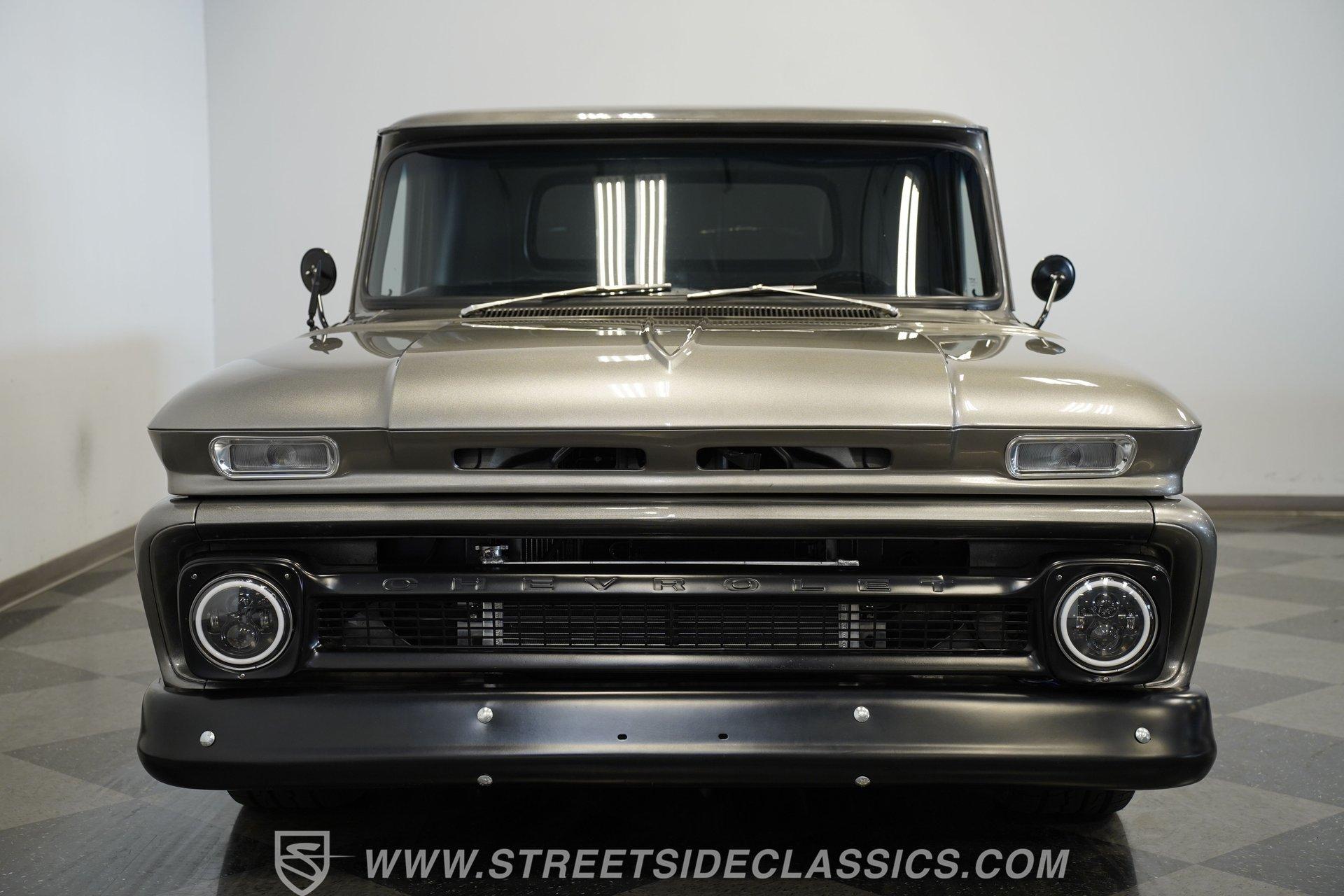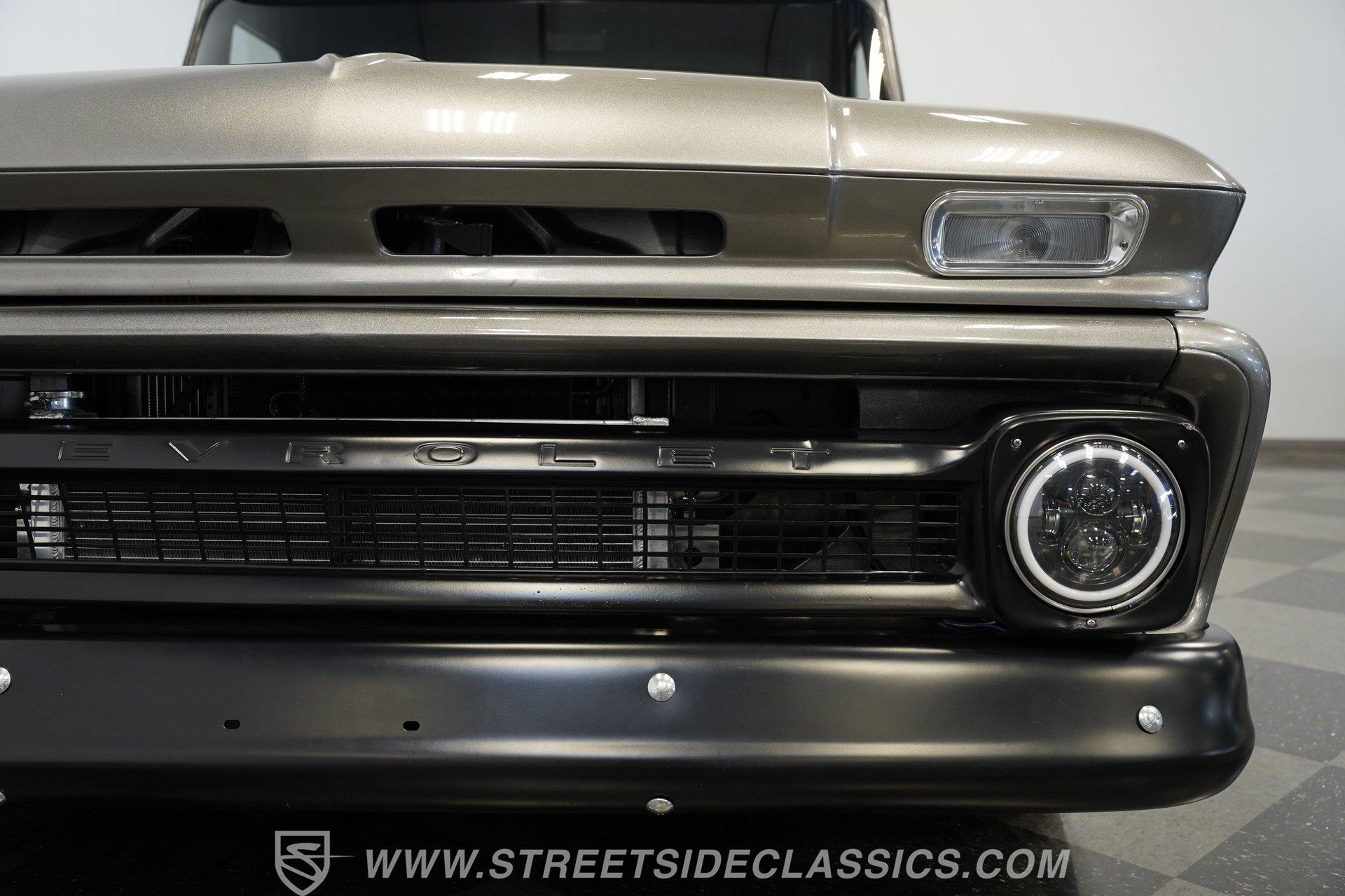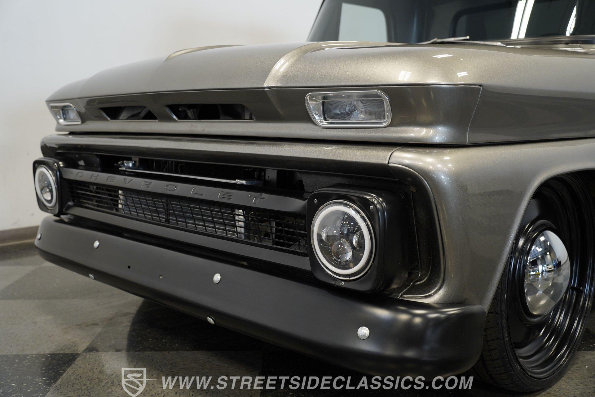 This aggressive 1964 Chevrolet C10 Supercharged LS Restomod short bed looks every bit as tough as it performs. The gray and black paint scheme sets the tone, while the supercharged LS delivers the punch. Add in the custom interior and modern upgrades, and you have one seriously fun truck that won't last long. Call Today!