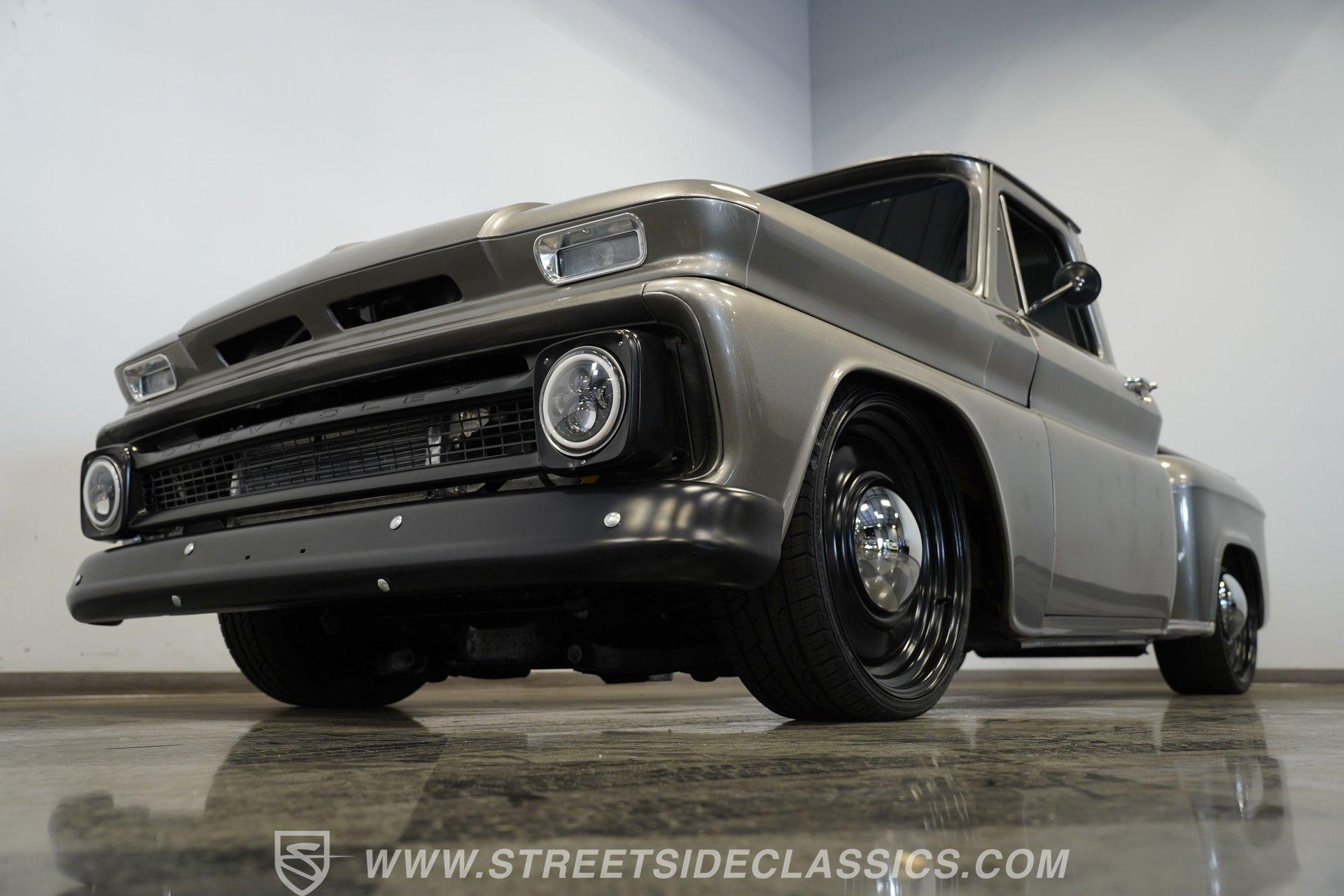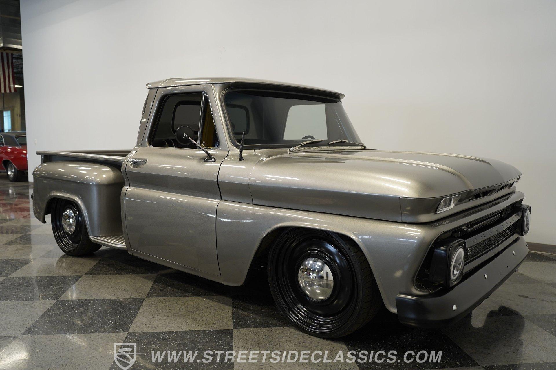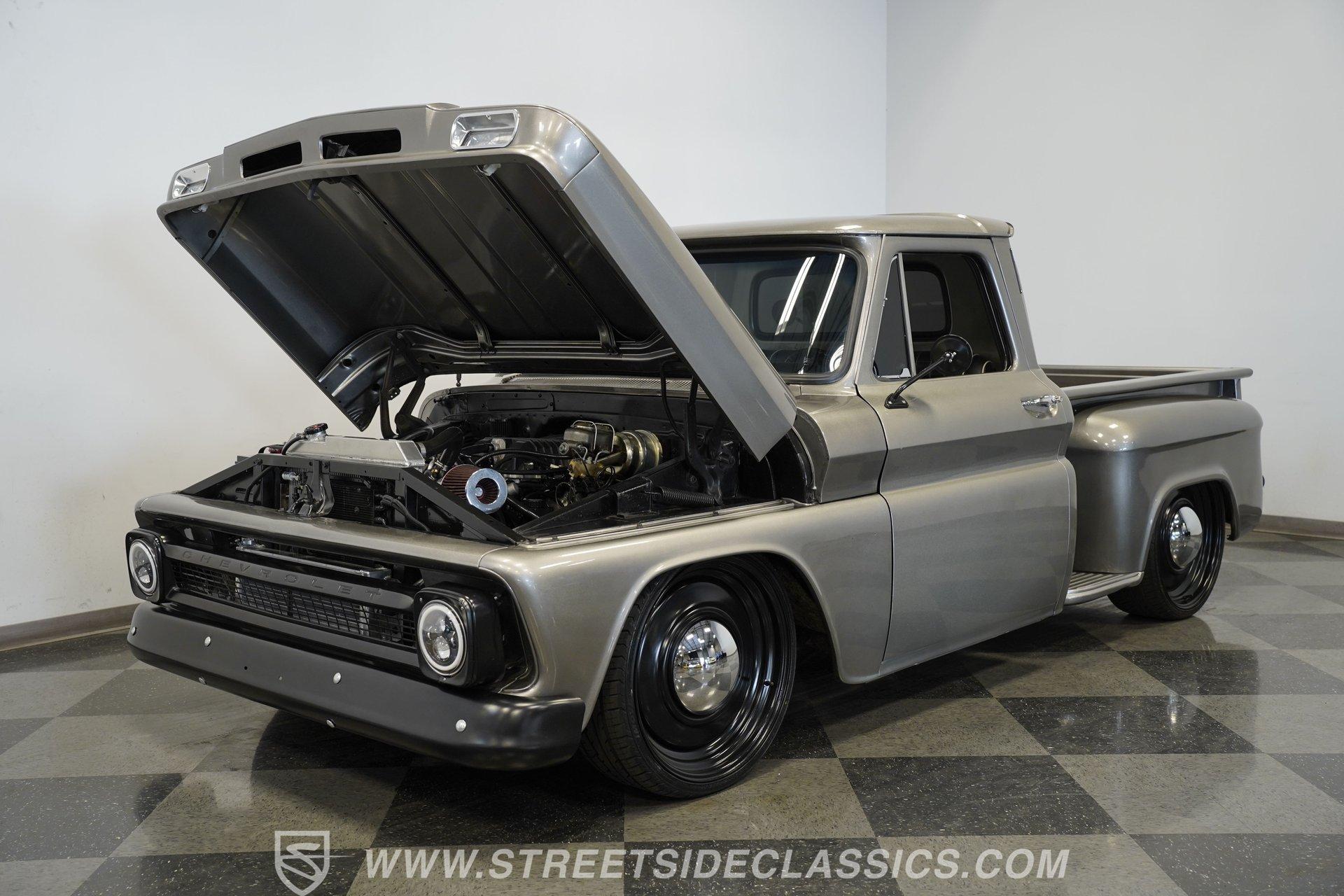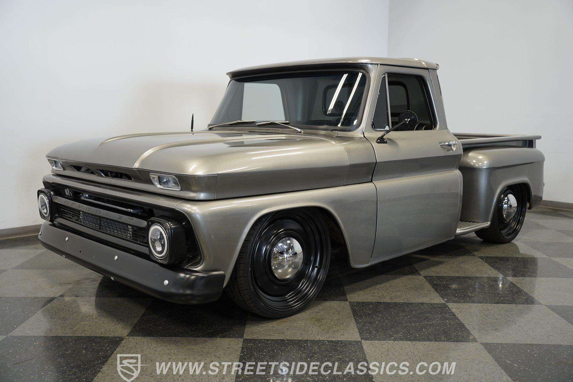 This aggressive 1964 Chevrolet C10 Supercharged LS Restomod short bed looks every bit as tough as it performs. The gray and black paint scheme sets the tone, while the supercharged LS delivers the punch. Add in the custom interior and modern upgrades, and you have one seriously fun truck that won't last long. Call Today!