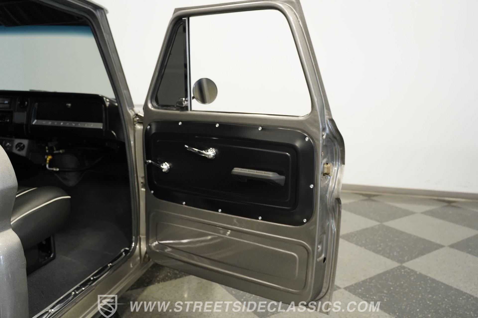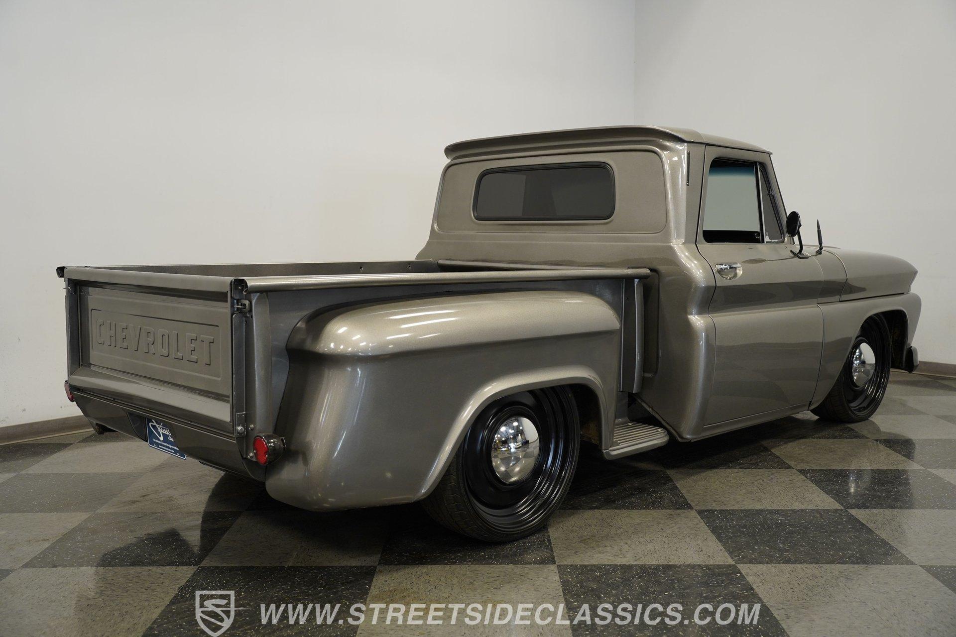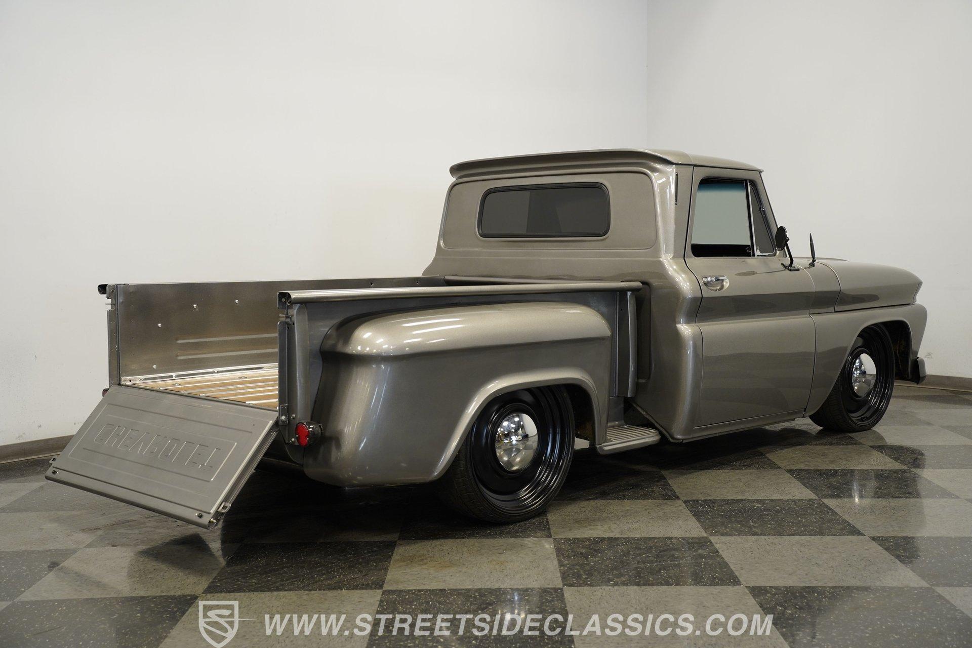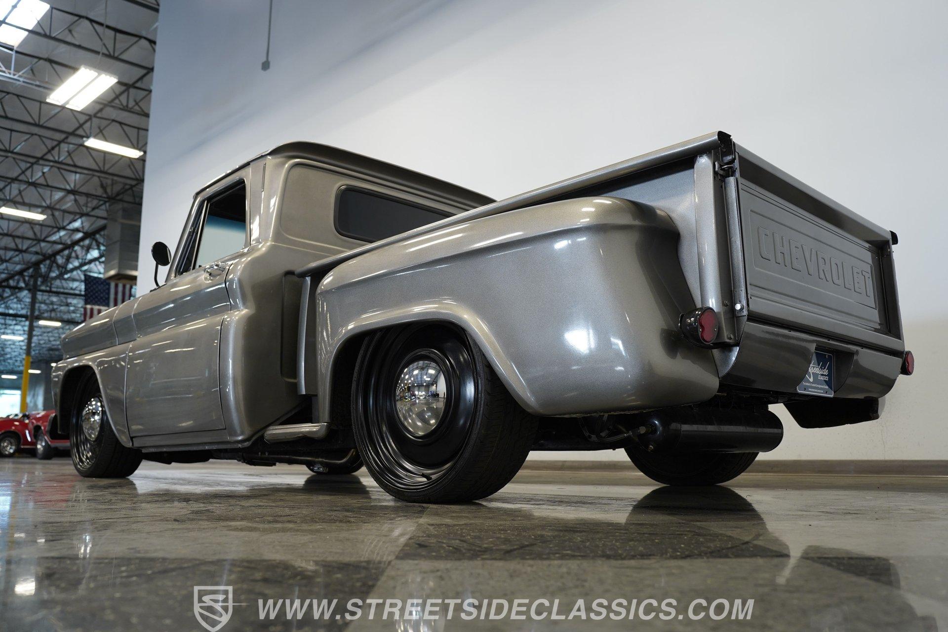 This aggressive 1964 Chevrolet C10 Supercharged LS Restomod short bed looks every bit as tough as it performs. The gray and black paint scheme sets the tone, while the supercharged LS delivers the punch. Add in the custom interior and modern upgrades, and you have one seriously fun truck that won't last long. Call Today!