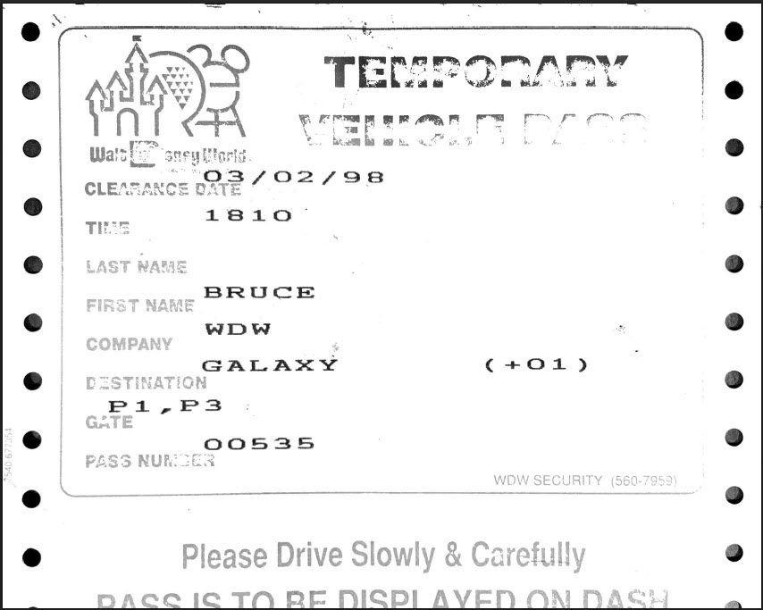 Temporary vehicle pass for the 1998 Galaxie Palace event