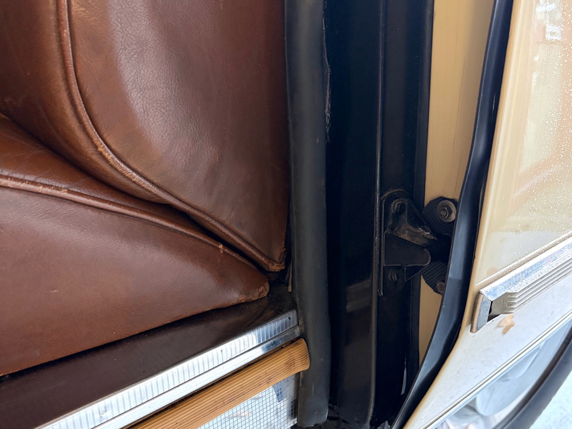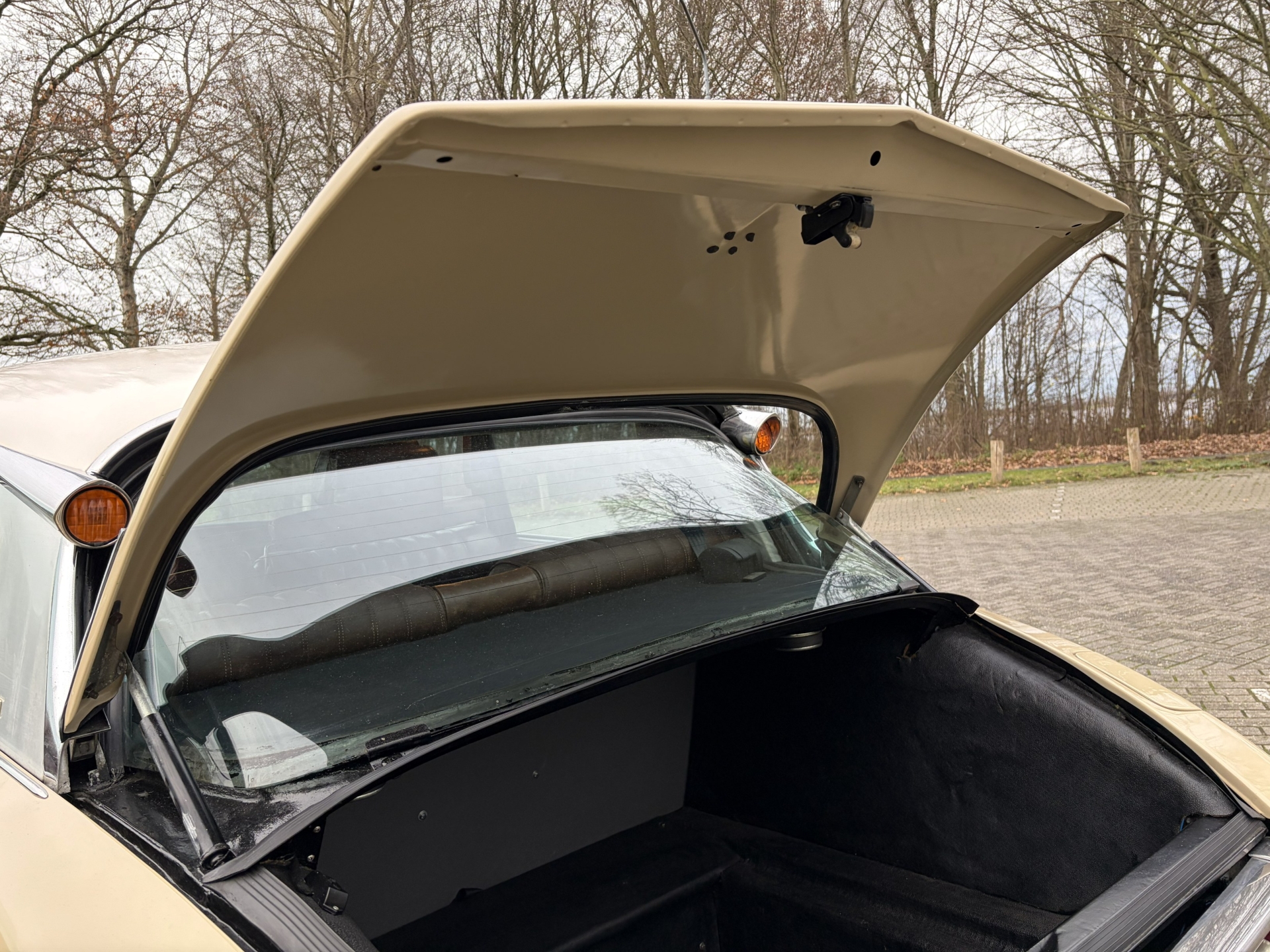 The DS was delivered new in "beige Tholonet AC 086," and like many classic cars, the body has been resprayed. About four years ago, the Dutch owner commissioned the repainting of his beloved Pike in the original DS color "beige Vanneau AC 083," and the quality of the paintwork is excellent. The body is beautifully straight, and all the original details have been carefully maintained. Many stainless steel and chrome parts have been replaced in the past, and the bumpers appear to be original. The chrome is neat with minor signs of wear. The hollow areas have been treated, and I couldn't find any rust. The doors close perfectly, and the seams are also in perfect condition. A tow bar was recently installed.