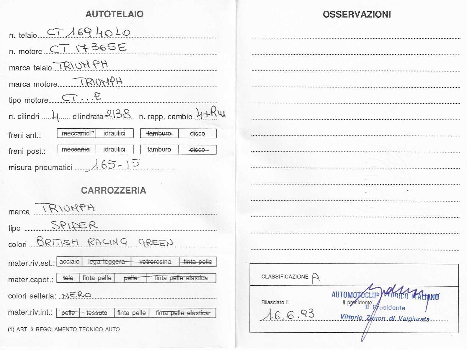 1993 - ASI homologation with Targa Oro