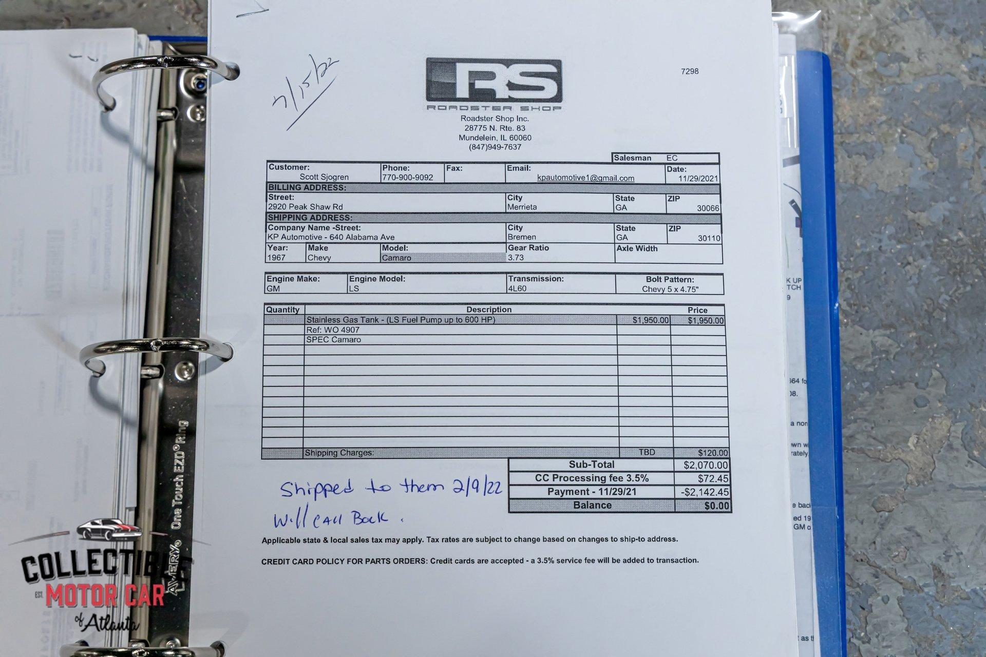 1967 Chevrolet Camaro - Roadster Shop SPEC Chassis Pro Touring Build