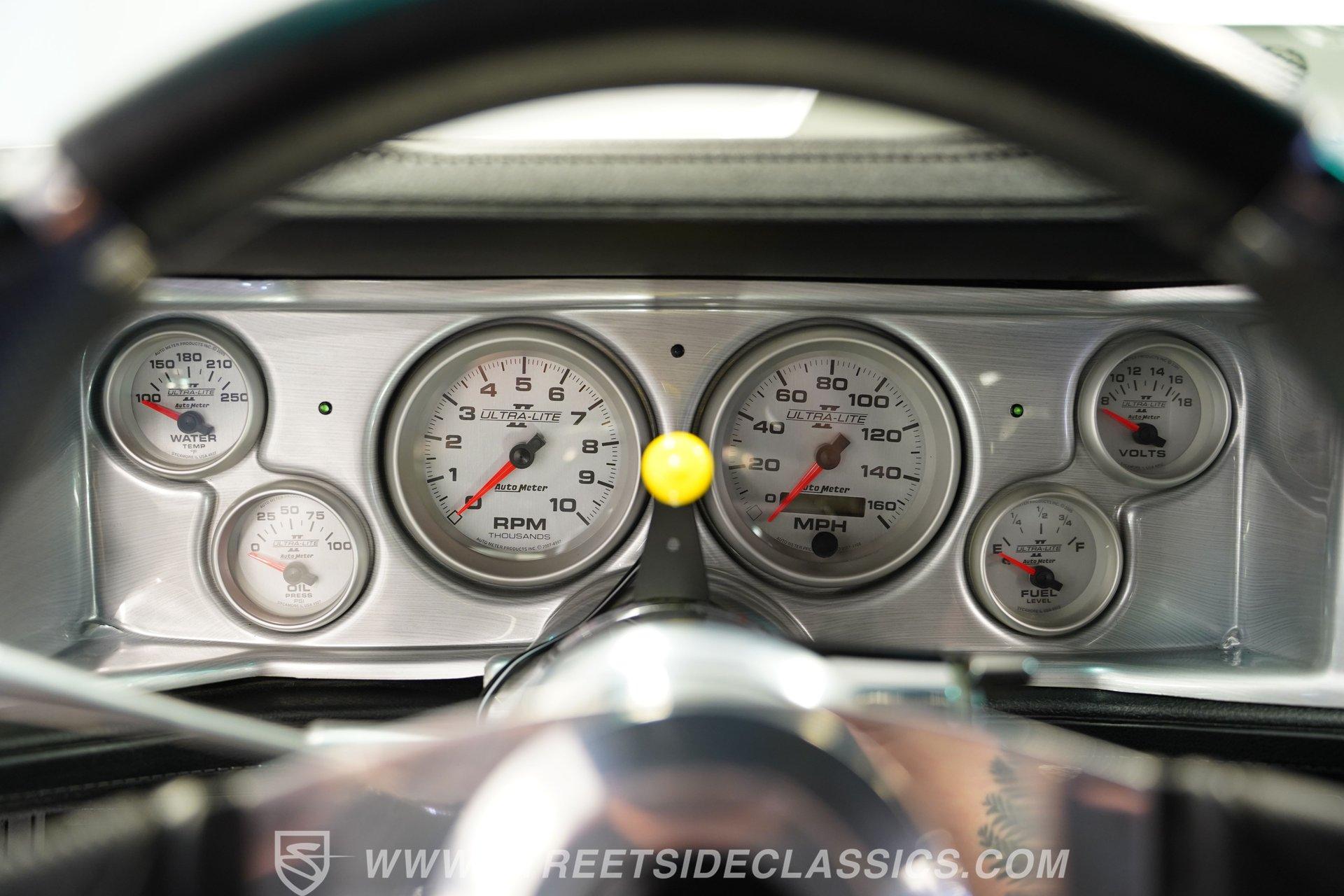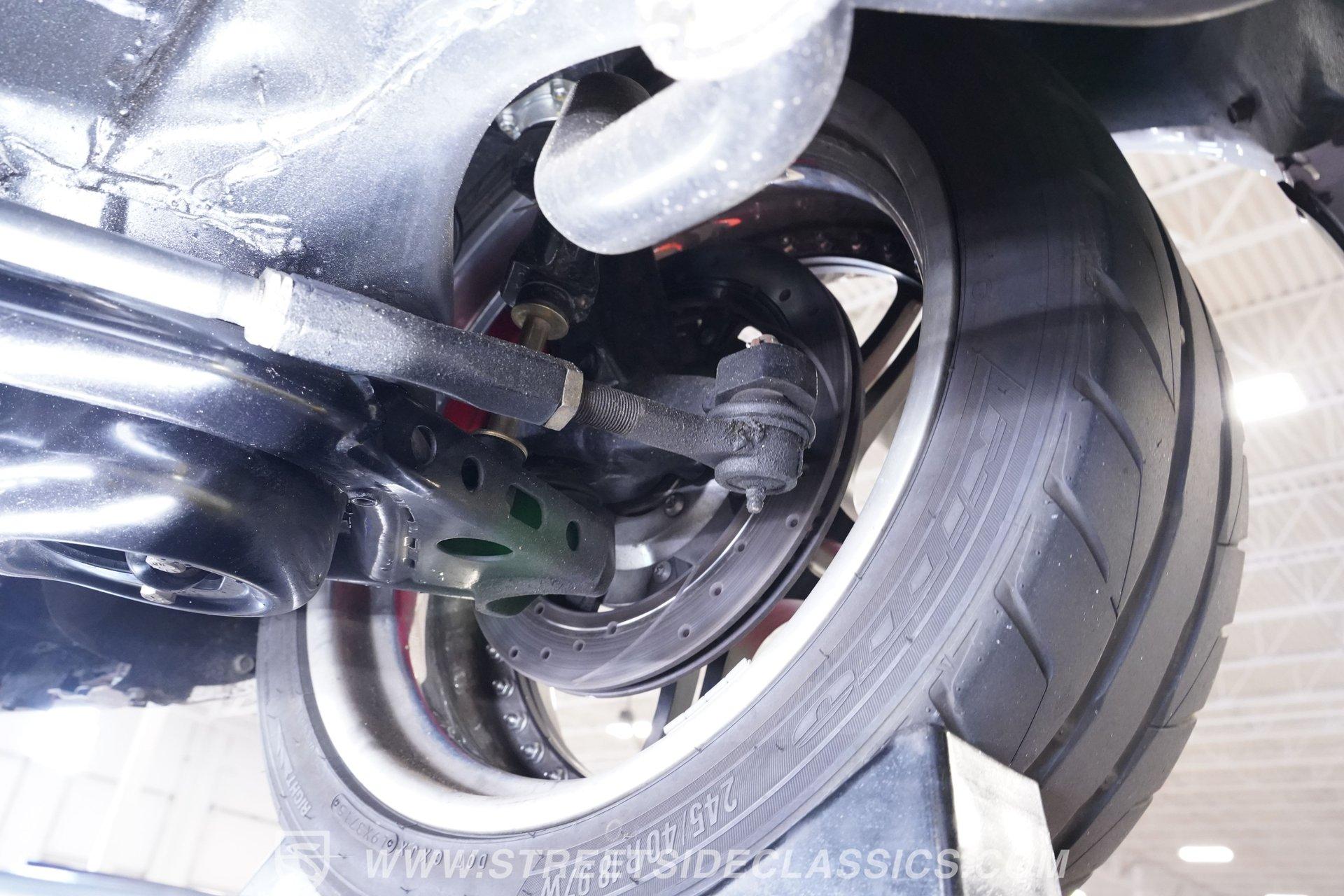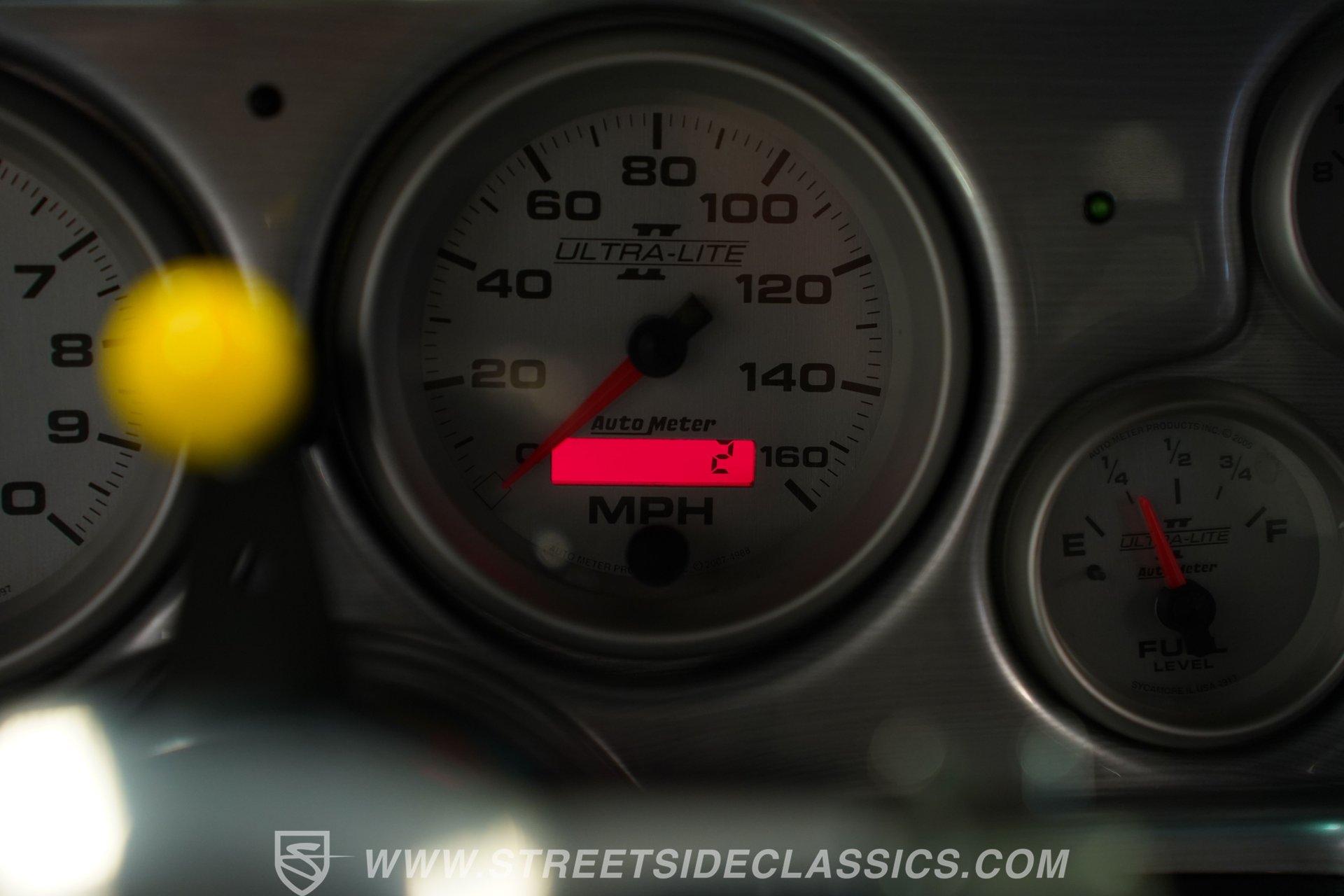 Step inside and you are greeted by a cockpit designed for both comfort and control. The interior features Procar seats with five-point G Force racing harnesses, keeping you securely in place during spirited drives. The custom dash houses clear Auto Meter Ultra Light gauges, while a chrome steering column and aftermarket Grant steering wheel add a modern touch. Vintage Air controls are conveniently mounted low, and a custom center console offers cupholders for extra convenience. An Alpine radio with kick panel-mounted speakers delivers your favorite tunes, creating an inviting space for both daily drives and weekend adventures.