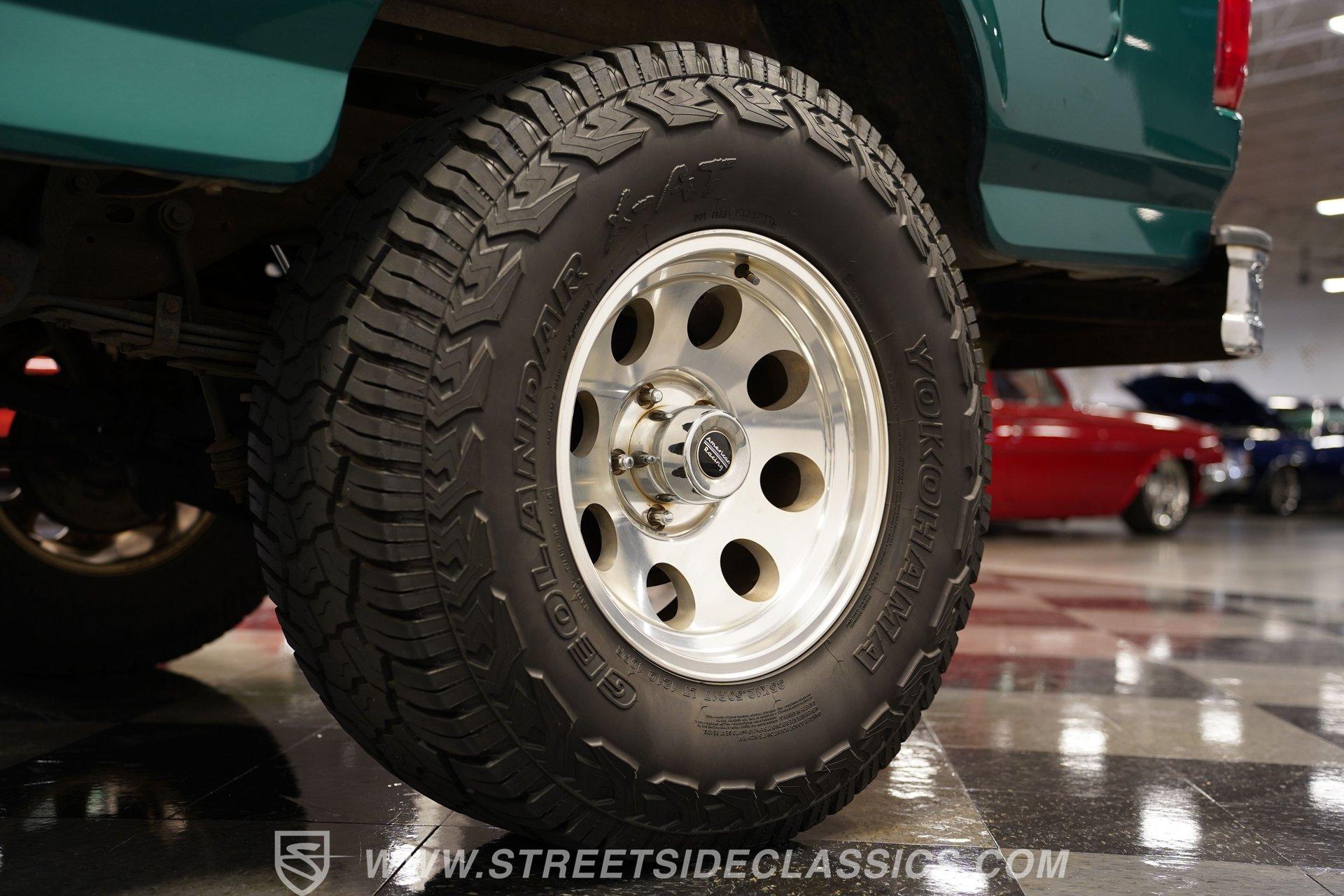 Under the hood, the legendary 5.8-liter V8 delivers robust power and reliability, paired with a smooth-shifting 4-speed automatic transmission for effortless cruising or tackling tough terrain. Electronic fuel injection ensures responsive performance, while the upgraded Rough Country lift and stabilizer bar, Dana 44 rear end with 3.55 limited-slip gears, and power steering provide confident control both on and off the road. Power front disc and rear drum brakes help bring this classic SUV to a sure stop, making it as capable as it is fun to drive.