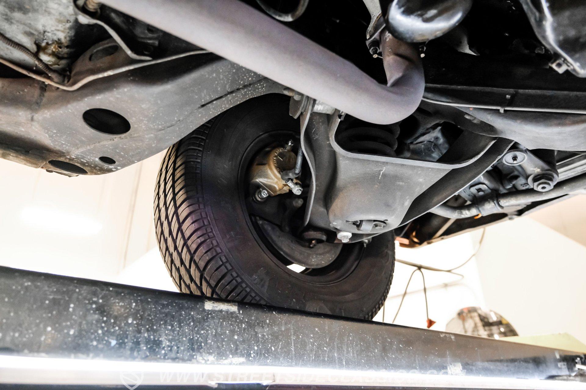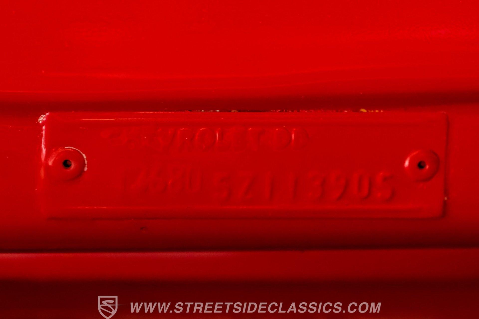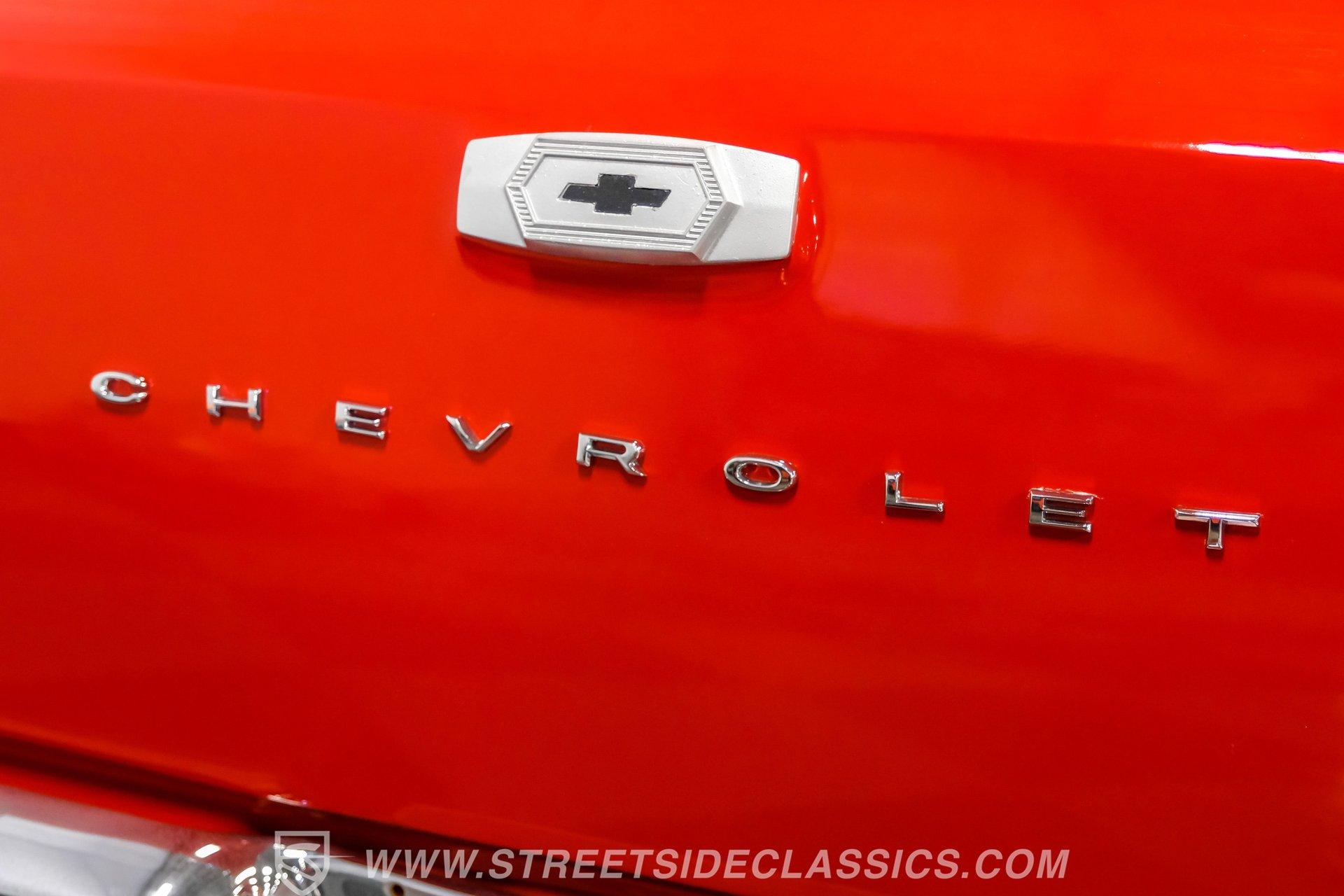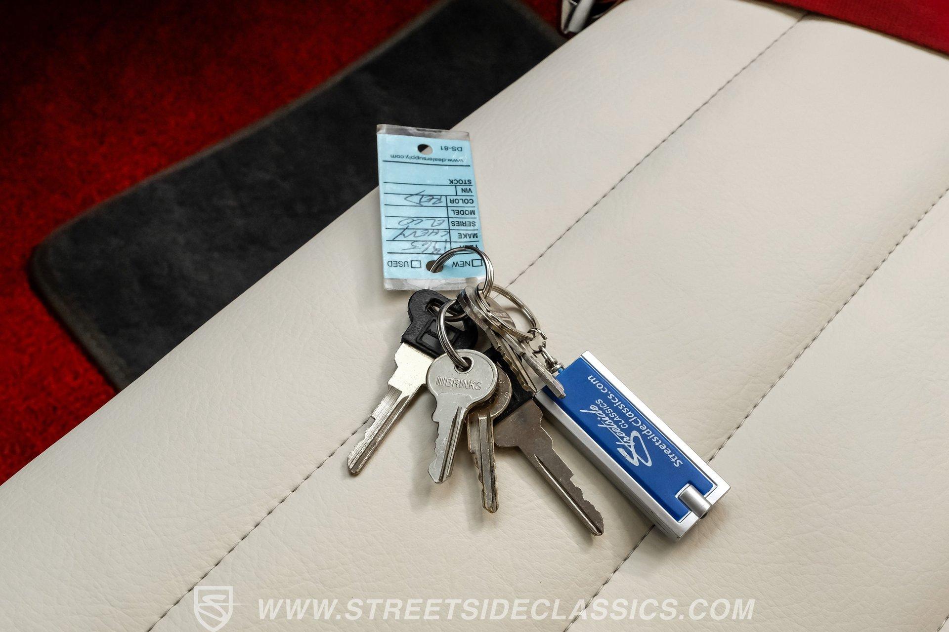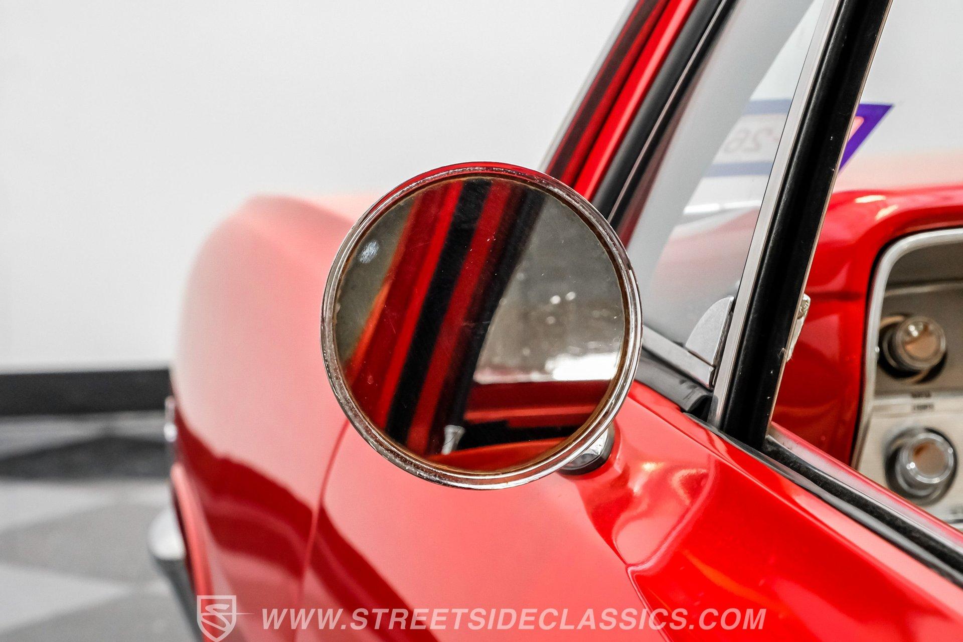 Step inside and you'll find a tastefully refreshed interior that blends classic charm with thoughtful updates. The white vinyl bench seat, complemented by bold red seatbelts and matching white door panels, creates a striking contrast against the red carpet and painted dash. A wood-rim Grant GT steering wheel adds a sporty touch, while under-dash auxiliary gauges and a retro-style radio (on display) echo the car's vintage roots. The headliner and door panels are clean and inviting, making this cabin as comfortable as it is stylish.