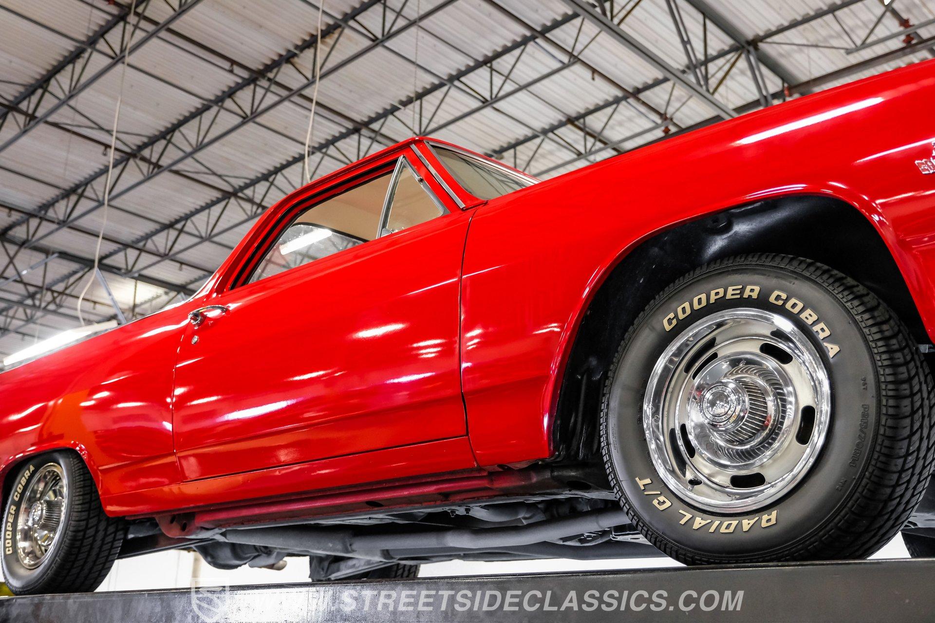 Some vehicles are more than transportation, they're rolling history, shaped in steel, chrome, and pure character. This 1965 Chevrolet El Camino is exactly that kind of classic. Fully repainted in bright red in 2015, including the bed, it wears its factory grille, chrome bumpers, and 14 inch Rally wheels wrapped in Cooper Cobra tires with confidence. Originally yellow, it now turns heads for all the right reasons. Every time you fire it up, it invites you to imagine cross country adventures, Sunday cruises, and a time when American muscle ruled the road. If you're after a classic that delivers style, nostalgia, and unmistakable presence, this El Camino is ready to write its next chapter with you.