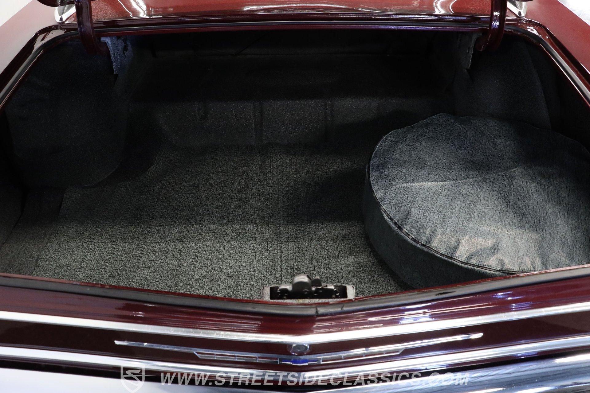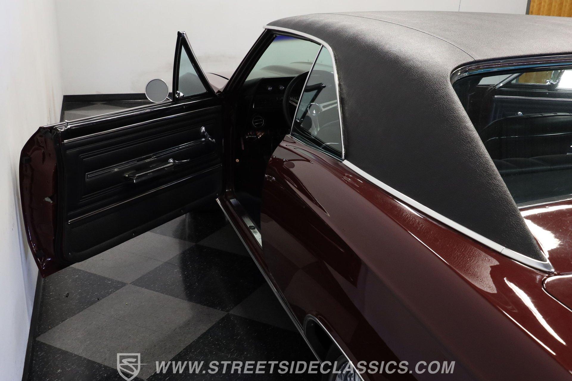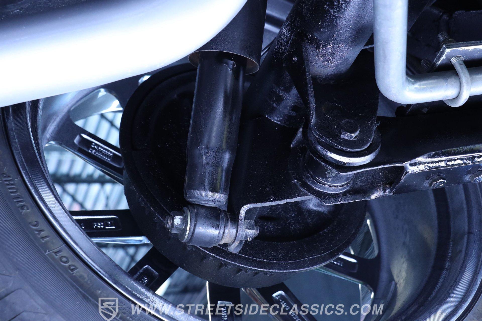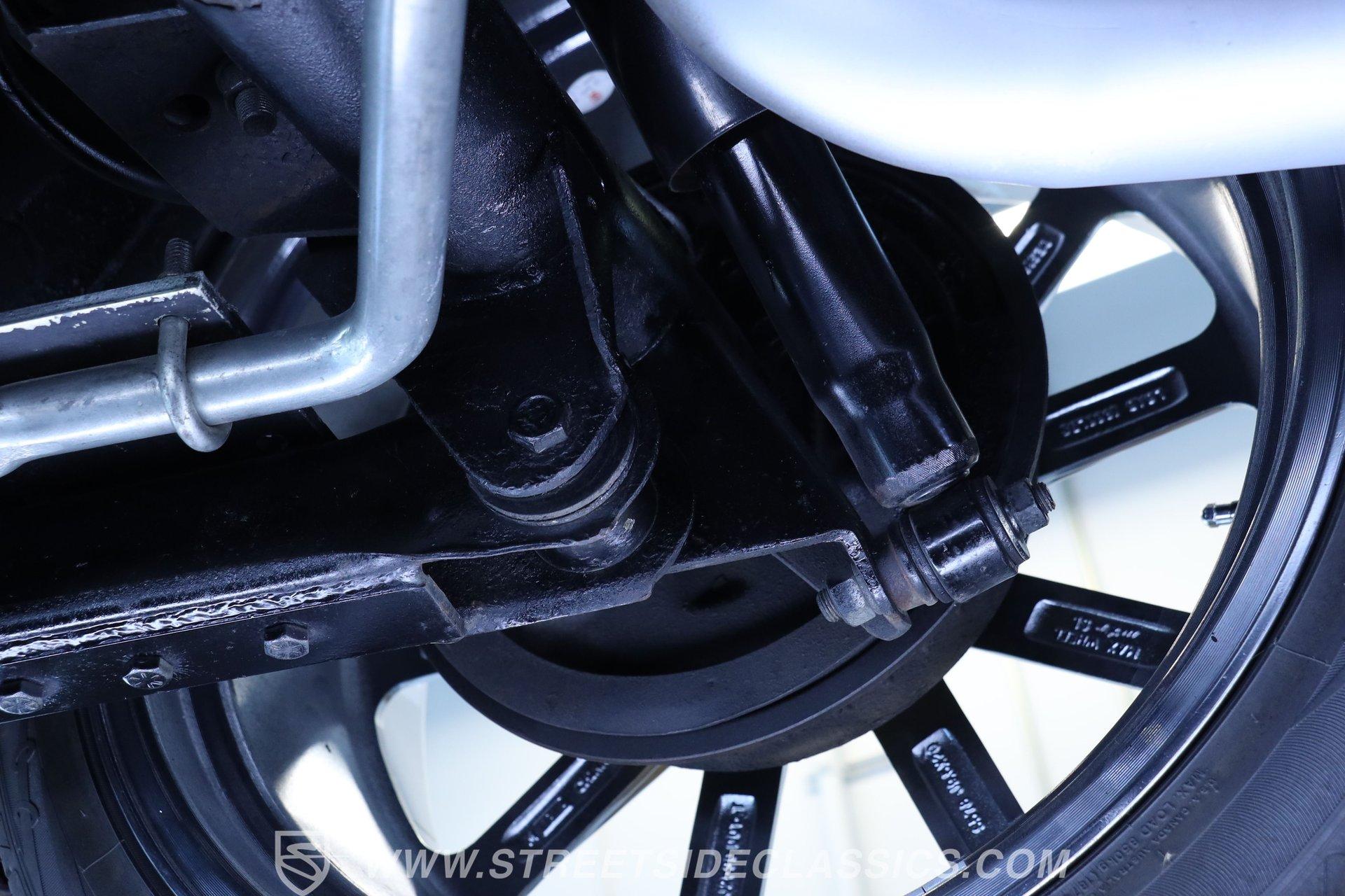 Step inside and discover a cabin that balances vintage style with comfort. The black vinyl seats are in excellent condition, inviting you to settle in for the ride. Both the door panels and headliner look fresh and crisp, while the dashboard maintains its classic appeal with only the most subtle signs of age. The center console features a chrome Hurst shifter, and a retro sound radio with modern touches ensures you enjoy every mile with your favorite tunes. An aftermarket tachometer sits neatly under the dash, ready for spirited drives.