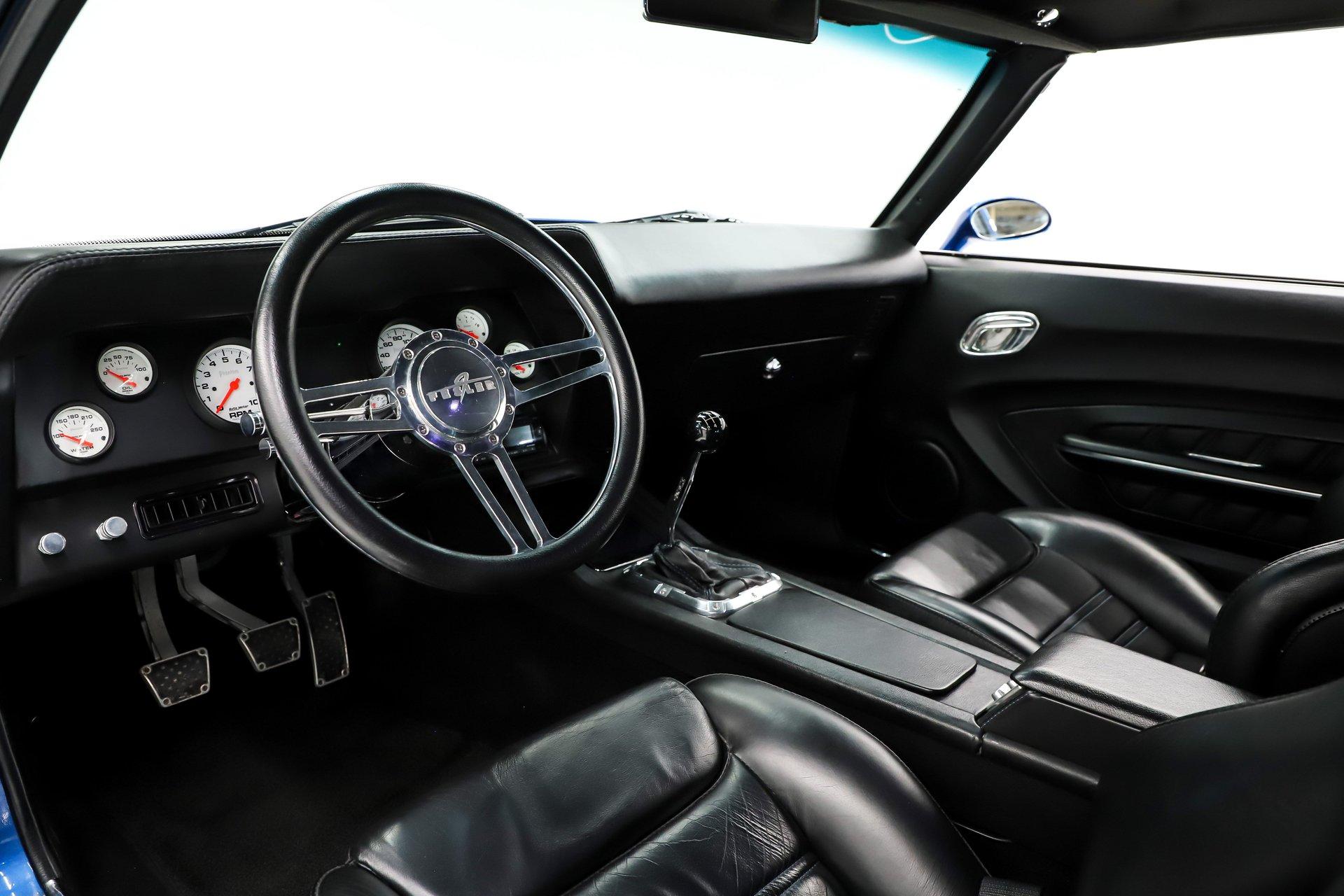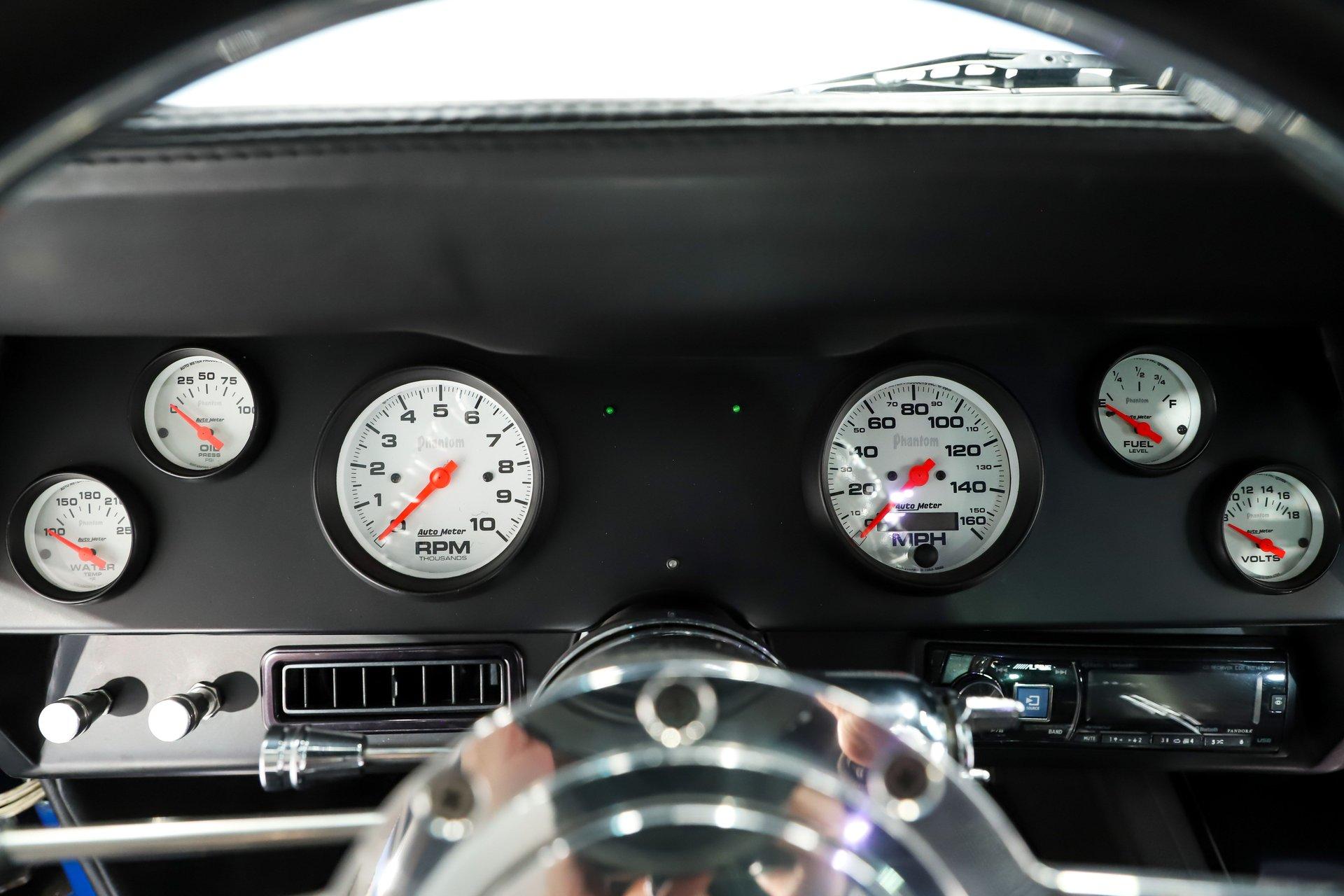 INTERIOR: Professionally crafted by Recovery Room and executed to very high-end standards with a tasteful, cohesive design throughout. Glove-soft leather is used extensively, covering the custom door panels, dash pad, console, and trim surfaces for a rich, upscale feel. The Recaro Sport seats are fully powered and equipped with lumbar support, and heating, delivering modern comfort without sacrificing style. The rear area has been boxed and upholstered to match, featuring two storage compartments and a four-point roll bar. Up front, a Fesler custom steering wheel sits on a polished tilt column, facing a Detroit Speed dash panel fitted with custom gauges. Even small details were addressed - the ashtray has been filled and smoothed for a cleaner look. A custom-built center console houses premium power window switches and a concealed compartment for the Lokar parking brake, maintaining a sleek appearance. The car is also equipped with an Intelligent Multiplex System, allowing many electrical functions to be programmed and controlled via iPad or iPhone. Painless wiring was used throughout, and a premium audio system with hidden speakers provides modern sound without disrupting the clean design. The result is a luxurious, modern cockpit wrapped in classic form - every inch reflecting careful planning and professional craftsmanship.
