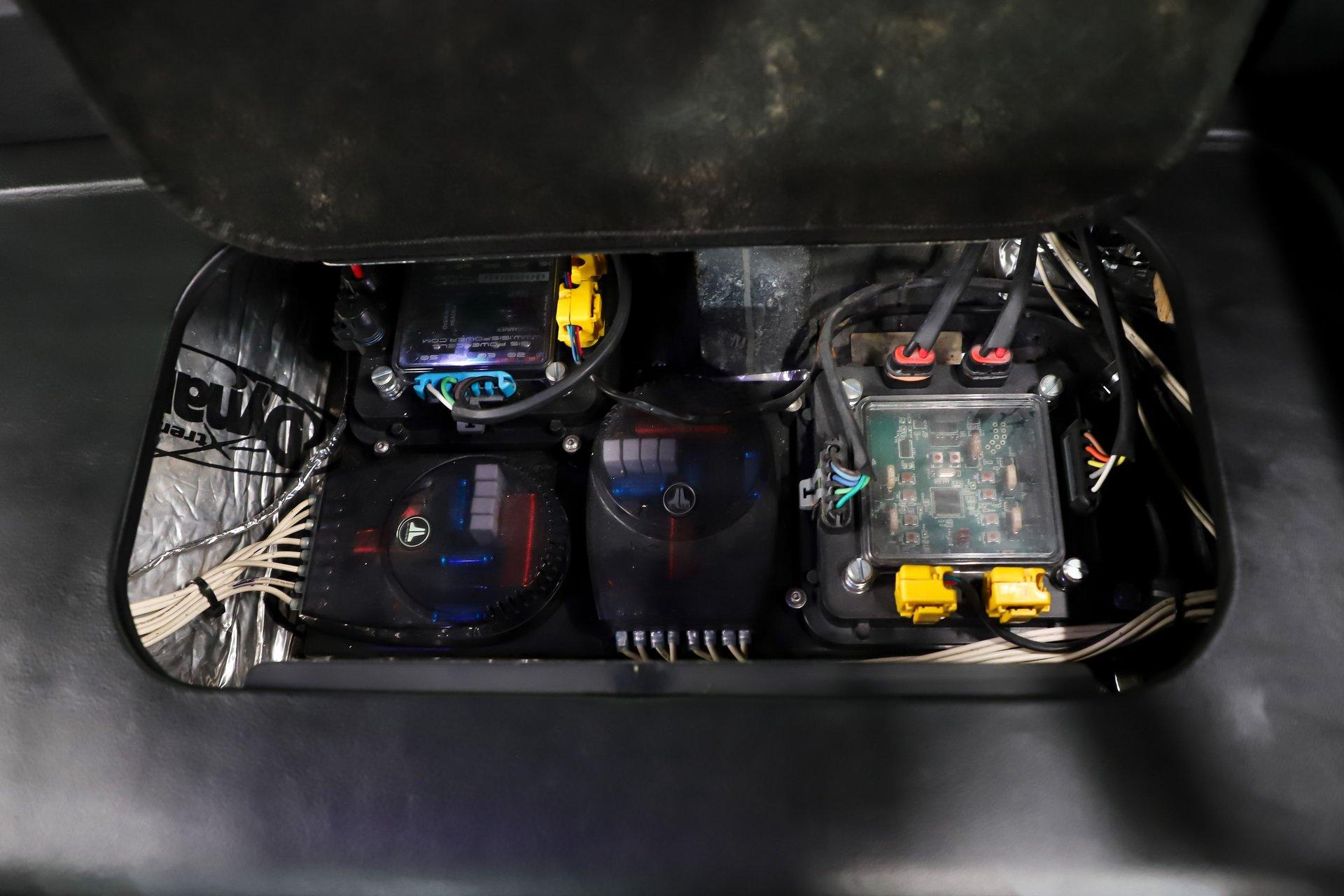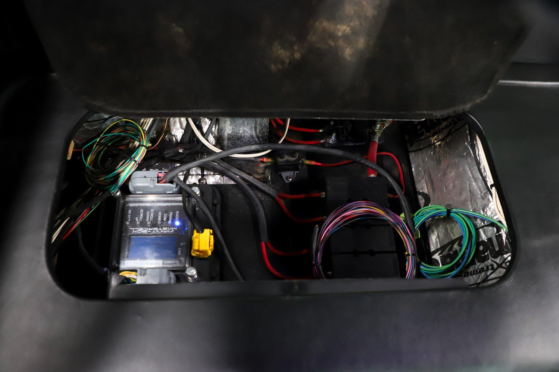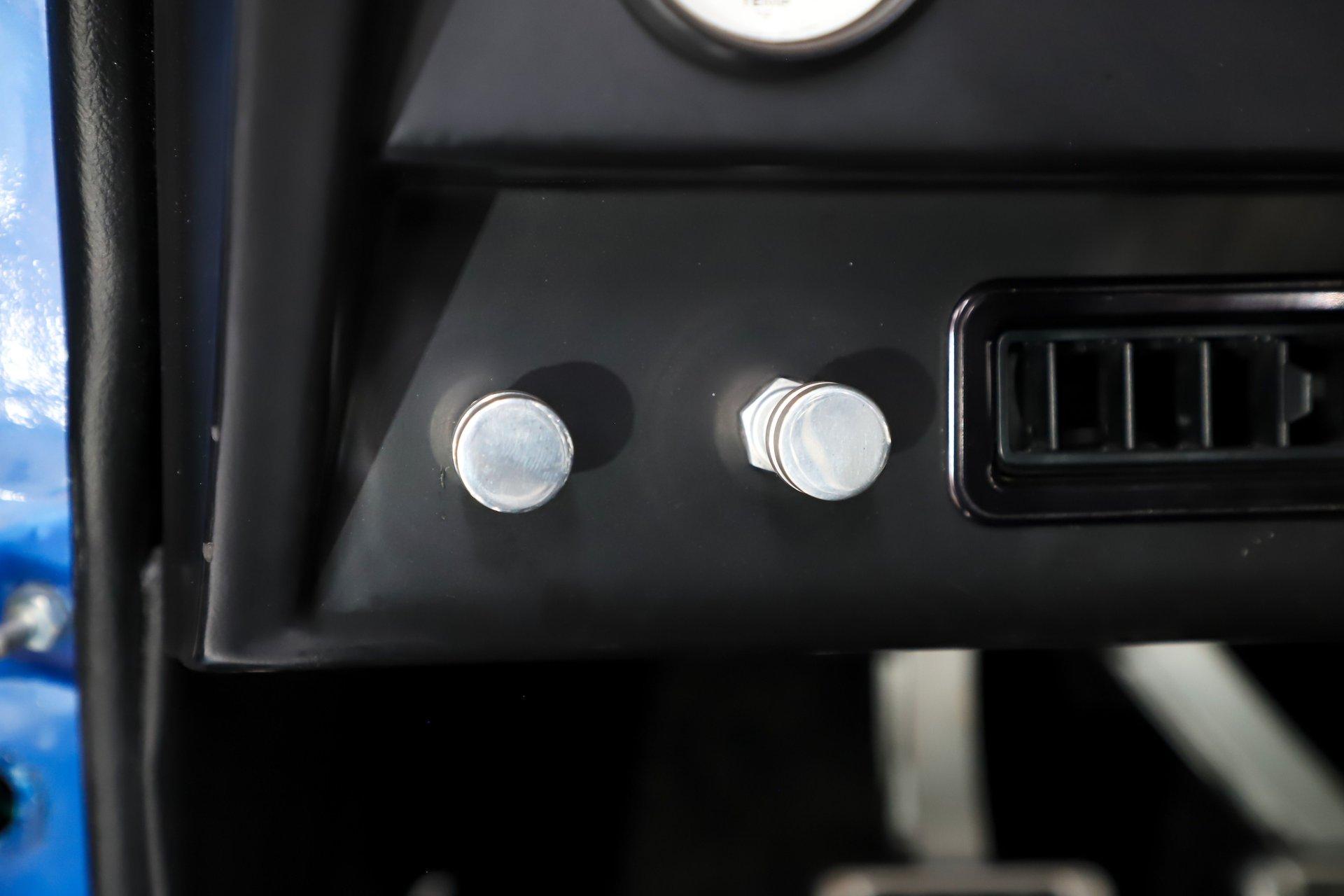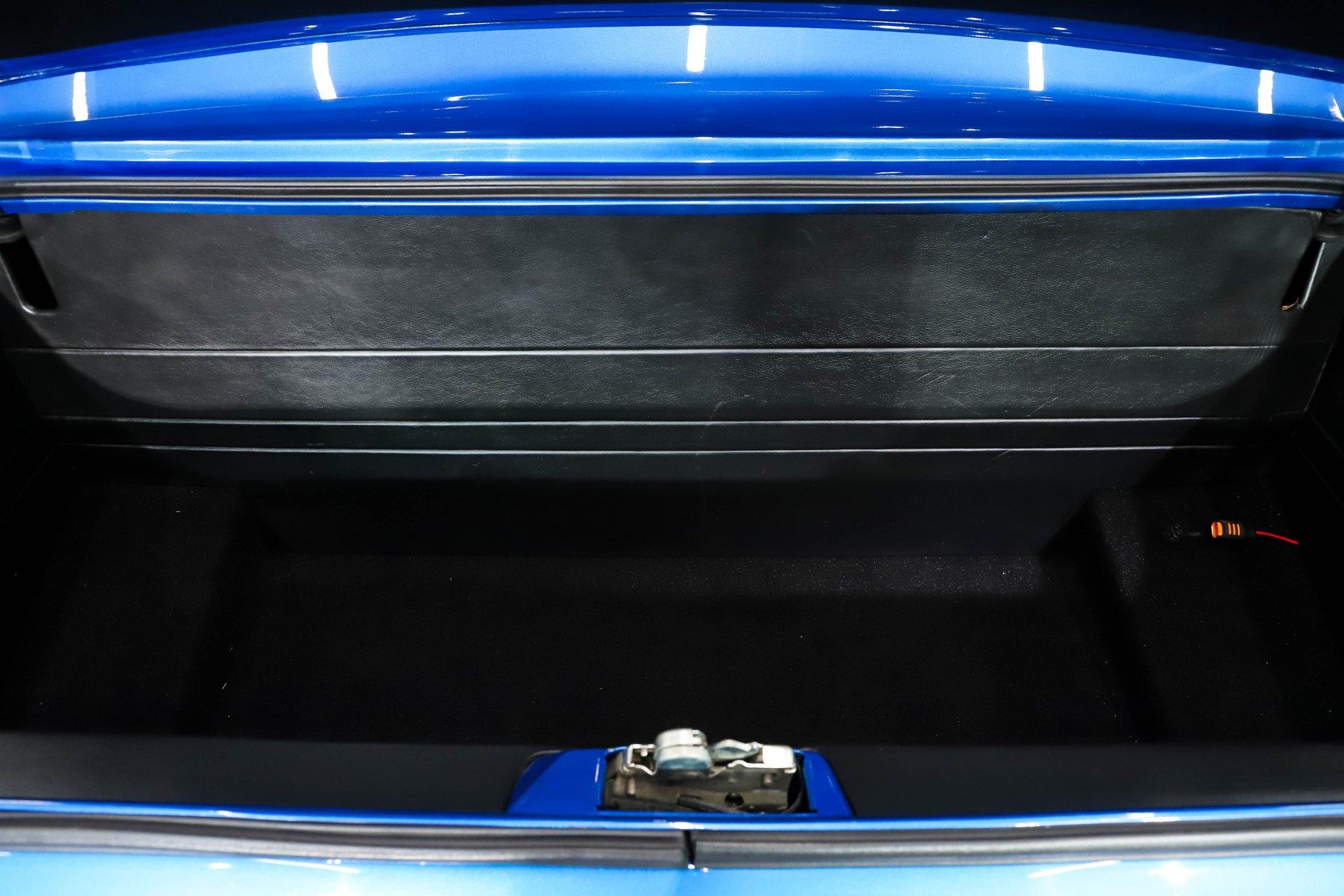 TRUNK COMPARTMENT: It is fully finished to the same high standard as the interior. It has been completely boxed and upholstered in matching materials, including the underside of the trunk lid, creating a clean, cohesive appearance throughout. A set of Fesler billet hinges adds both strength and visual appeal, while the battery has been neatly relocated behind a panel to keep the area uncluttered and show-ready.