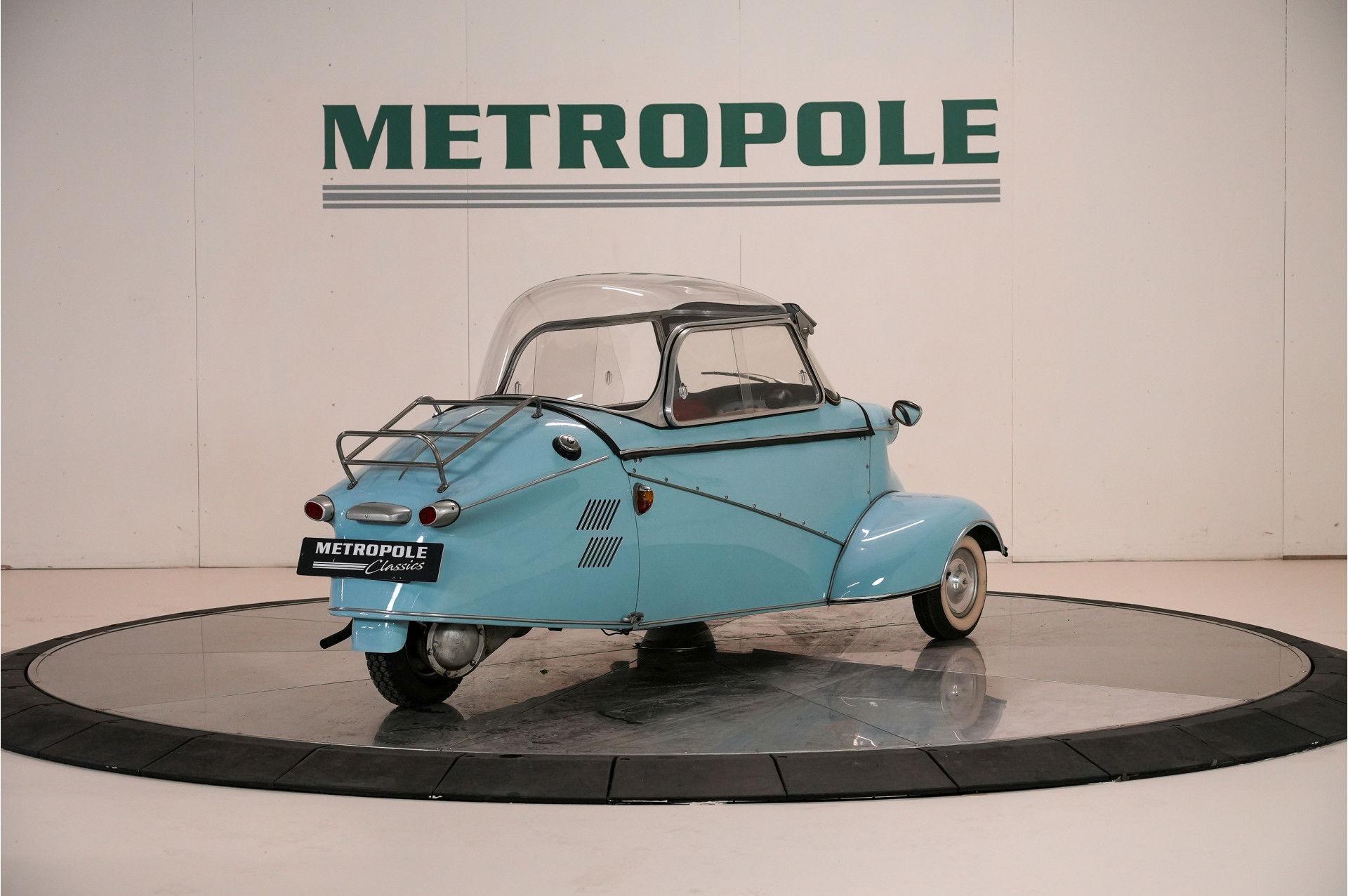 Featuring a clear dome top and original chrome luggage rack, this Messerschmitt is in excellent condition. It has been meticulously restored, faithfully to the original, using original parts. The restoration was completed a long time ago. Blue with a red interior. Fully operational and a lot of fun to drive. You'll attract more attention than in a Ferrari. Includes a Dutch registration.