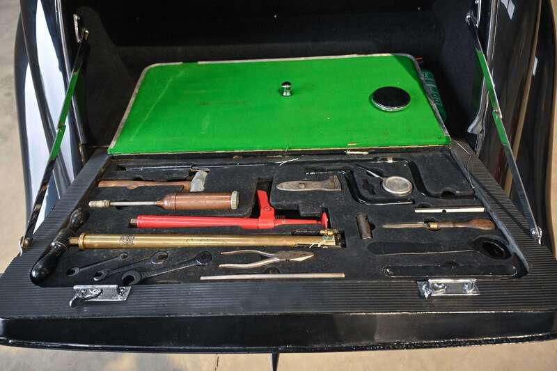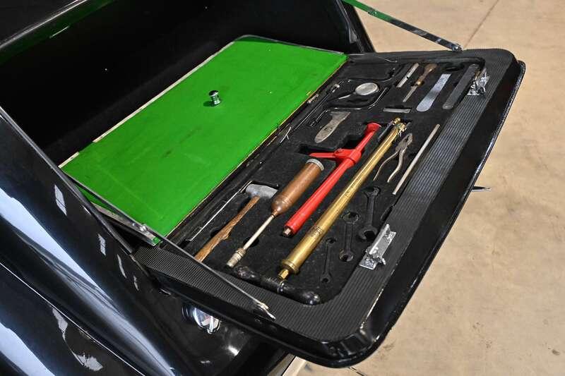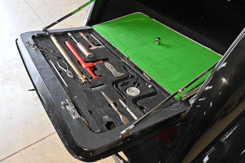 - Finished in Black and retains its original navy blue leather interior, along with what are understood to be its original instruments, tool kit and sunroof