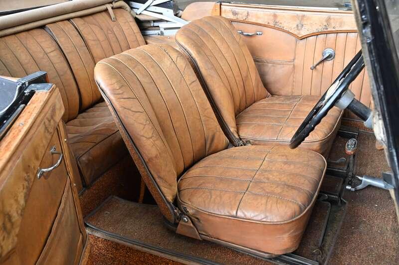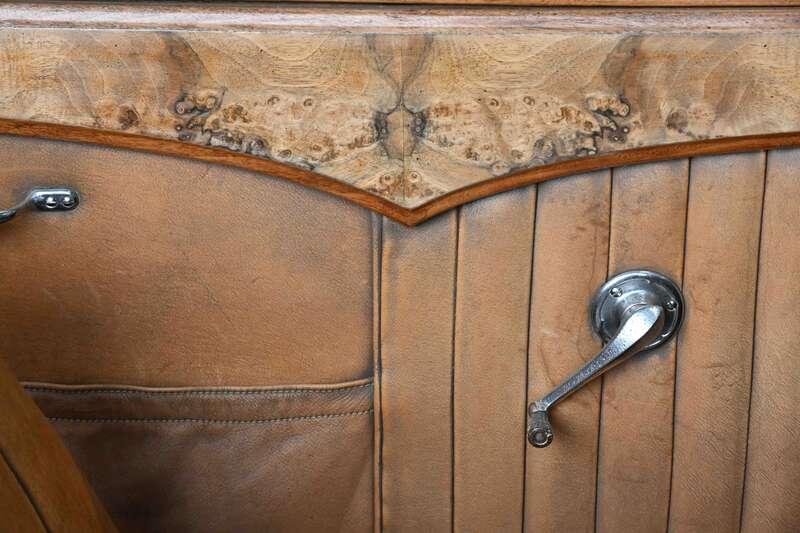 - Restored around 1960, however, the well-patinated, Deco-style tan leather interior appears totally original