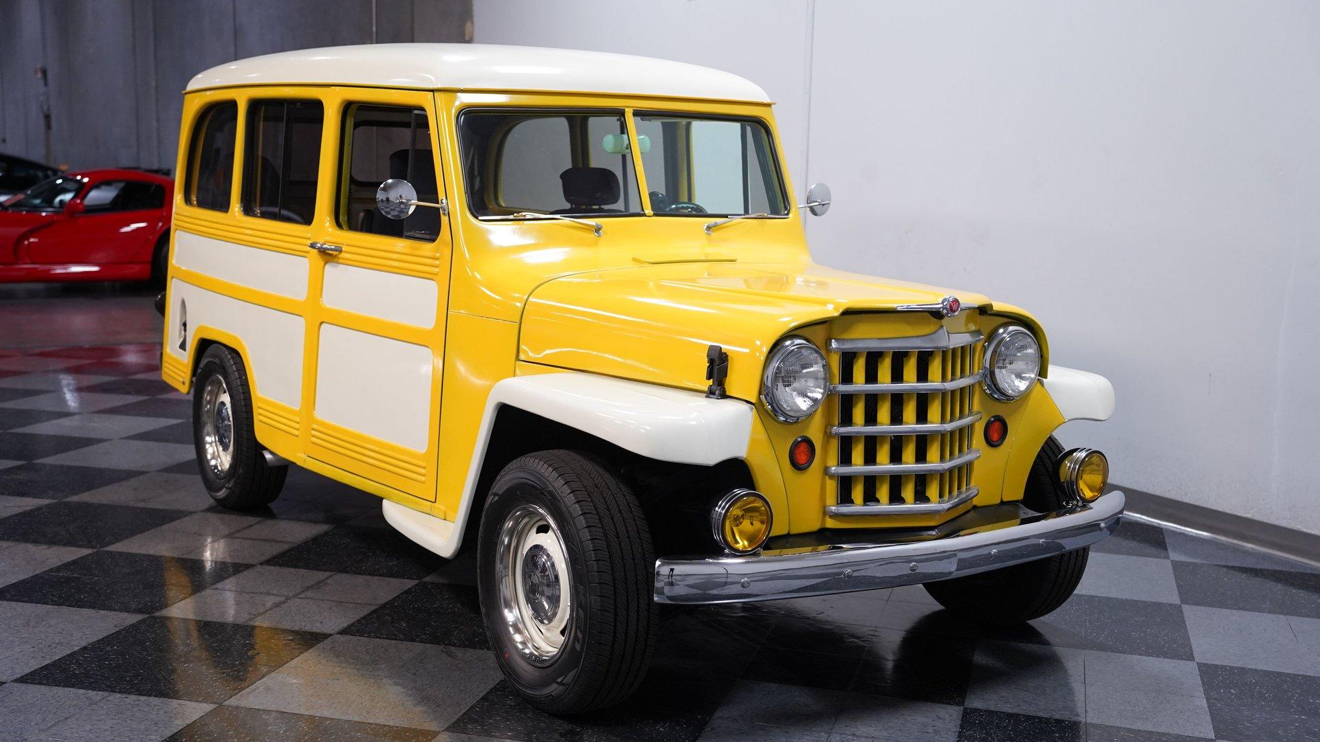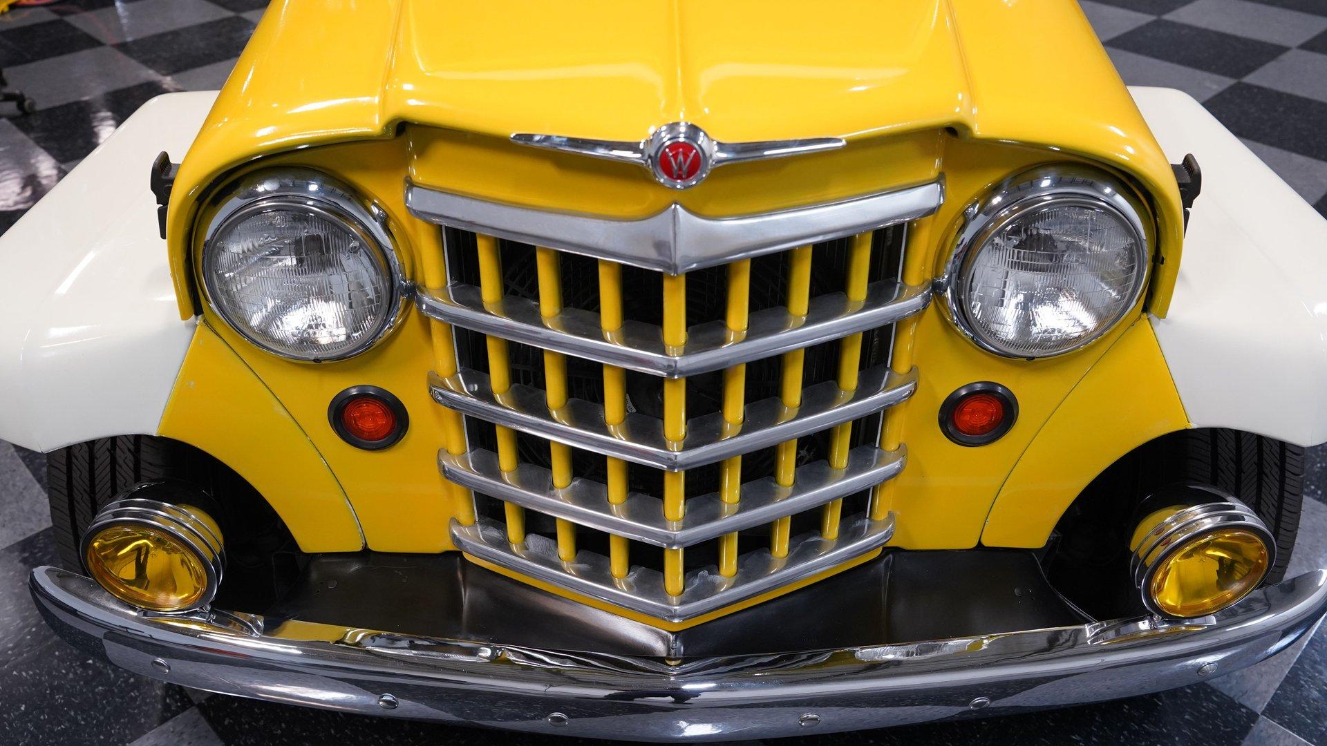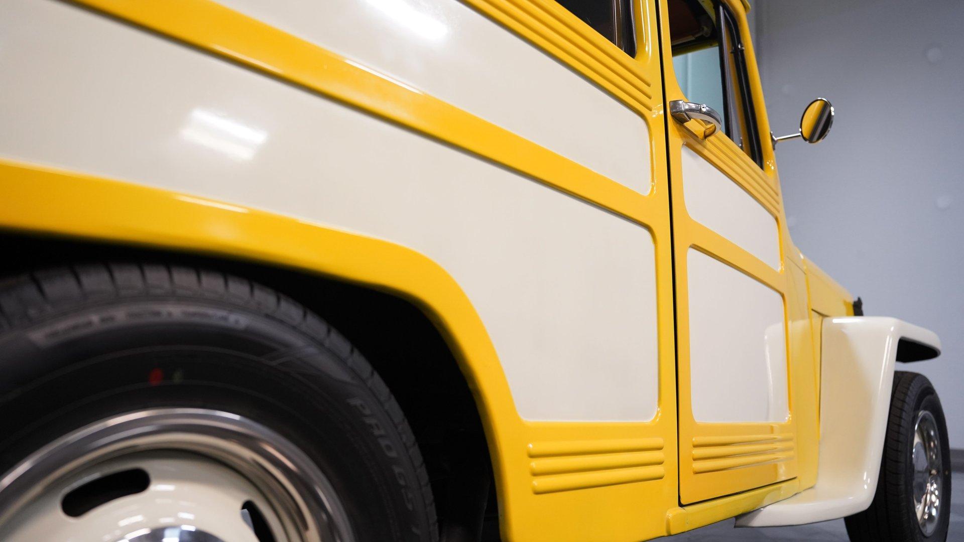 Built with the kind of attitude that belongs on dusty trails and mountain switchbacks, this 1951 Jeep Willys Wagon Restomod comes finished in Yellow and White with just the right mix of rugged utility and custom flair. Sitting on 15-inch rally wheels wrapped in 215/70R15 tires, this vehicle has a muscular, squared-off stance anchored by a Nova front clip and rear airbag suspension. Power disc brakes up front and dual FlowMaster exhaust out back round out the package, giving this Willys the mechanical grit to go with its adventure-ready styling.