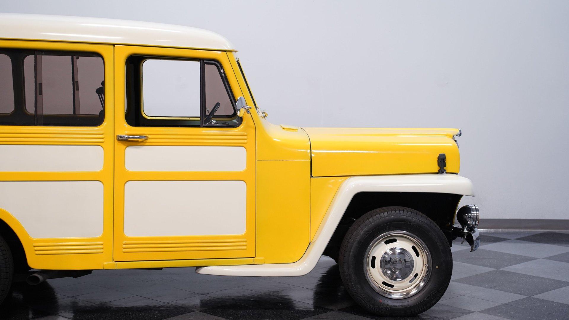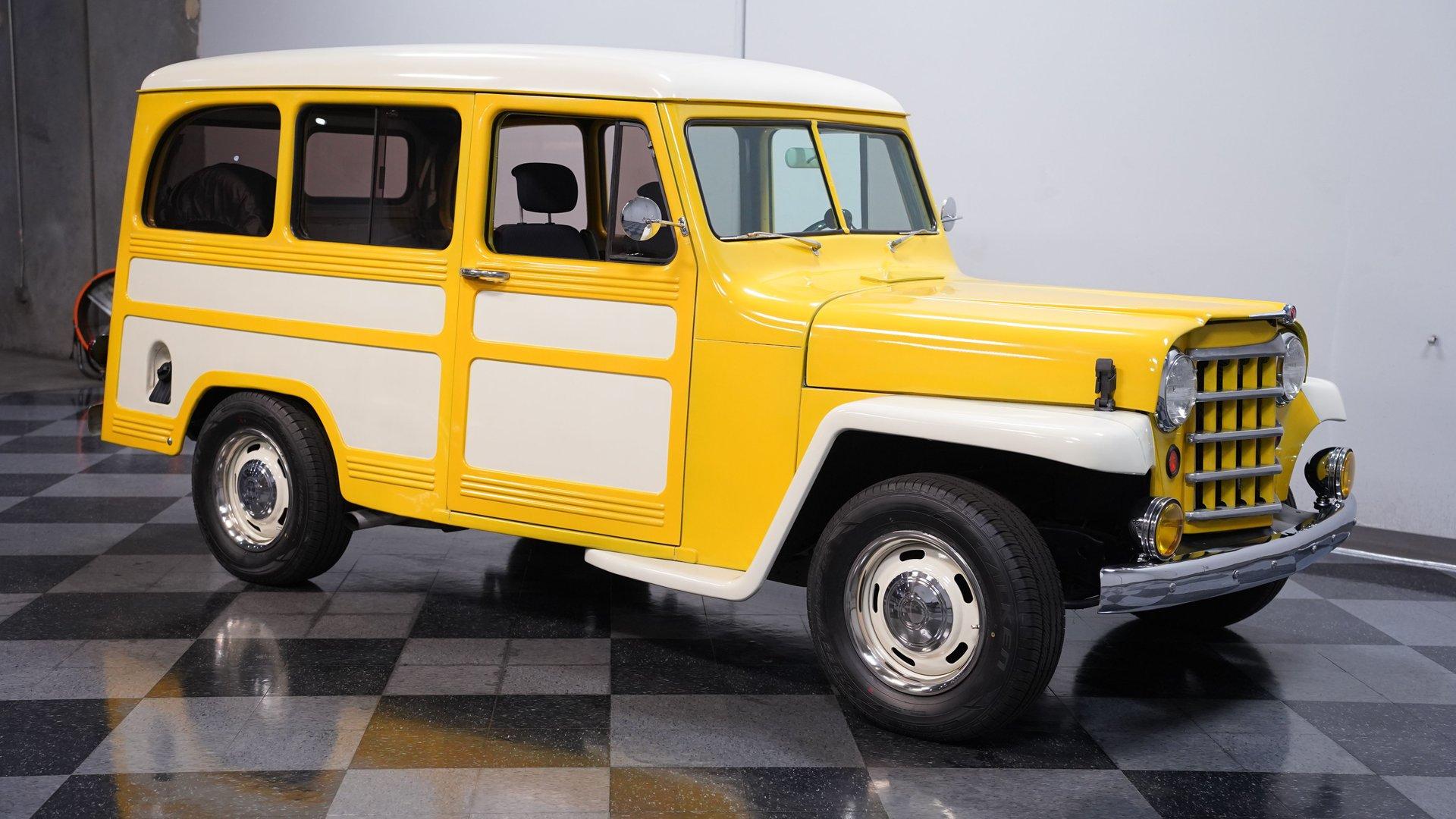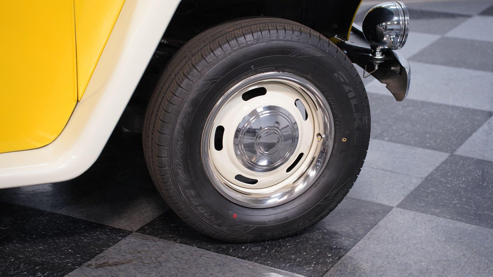 Built with the kind of attitude that belongs on dusty trails and mountain switchbacks, this 1951 Jeep Willys Wagon Restomod comes finished in Yellow and White with just the right mix of rugged utility and custom flair. Sitting on 15-inch rally wheels wrapped in 215/70R15 tires, this vehicle has a muscular, squared-off stance anchored by a Nova front clip and rear airbag suspension. Power disc brakes up front and dual FlowMaster exhaust out back round out the package, giving this Willys the mechanical grit to go with its adventure-ready styling.