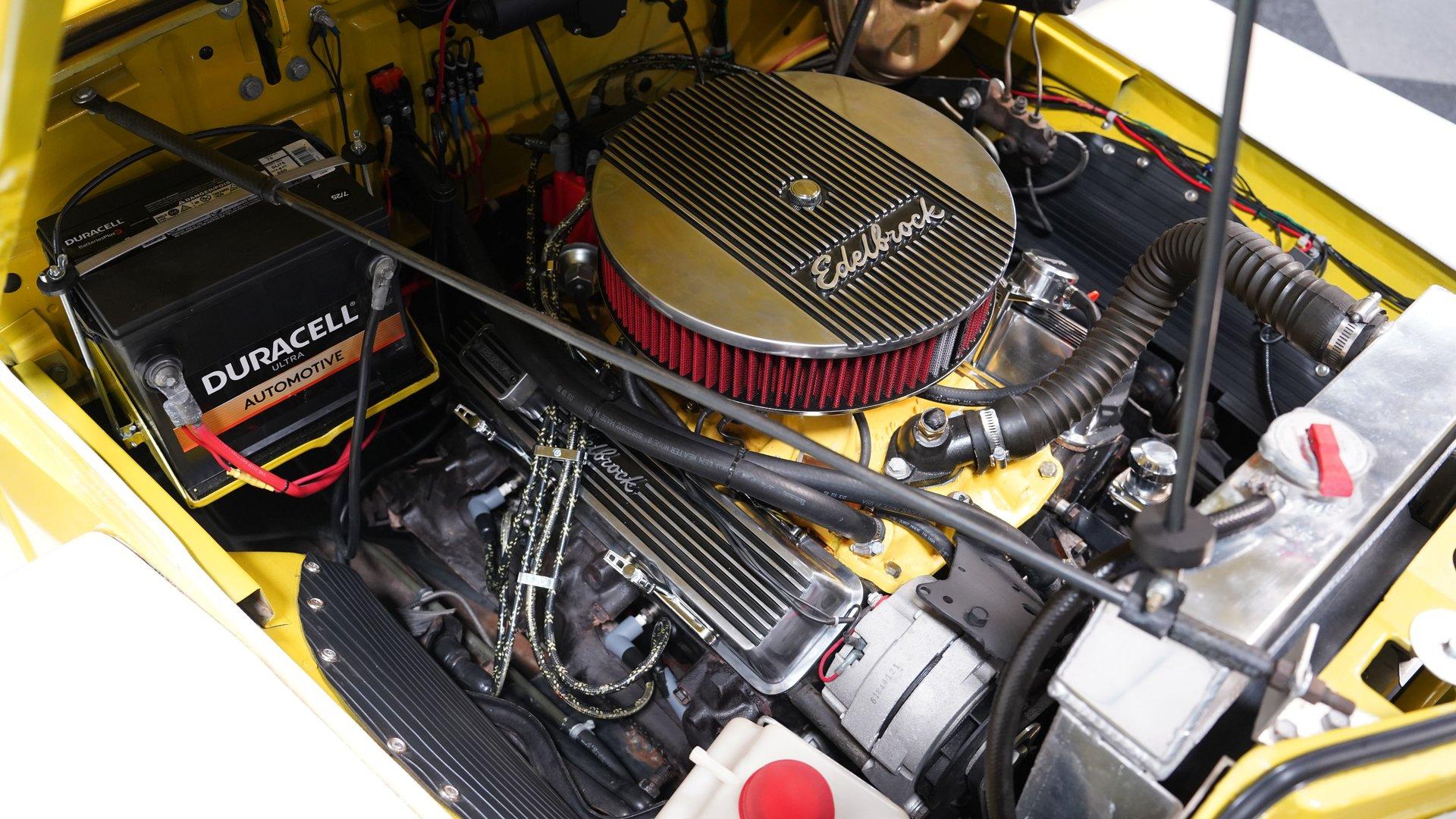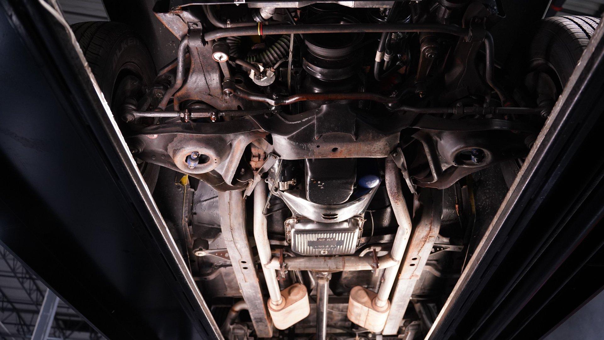 Under the hood, a GM 350 V8 crate engine handles business, breathing through an Edelbrock 4-barrel carb and intake. It's backed by a TH350 3-speed automatic transmission and exhales through a dual FlowMaster exhaust system that gives off just enough growl. Suspension duties are handled by a Nova-sourced front coil spring setup with sway bar and shocks, paired with a 10-bolt rear axle cushioned by rear airbags. Power steering and an aluminum radiator round out a setup built to haul, climb, and cruise without complaint.