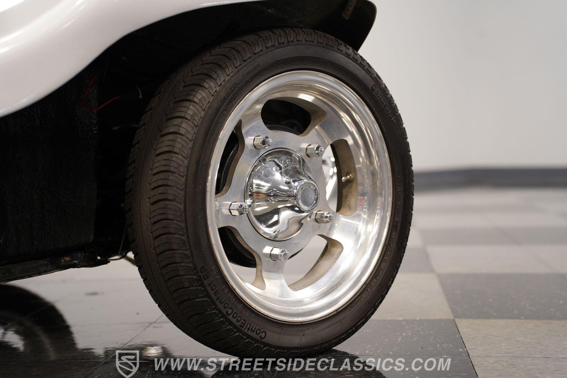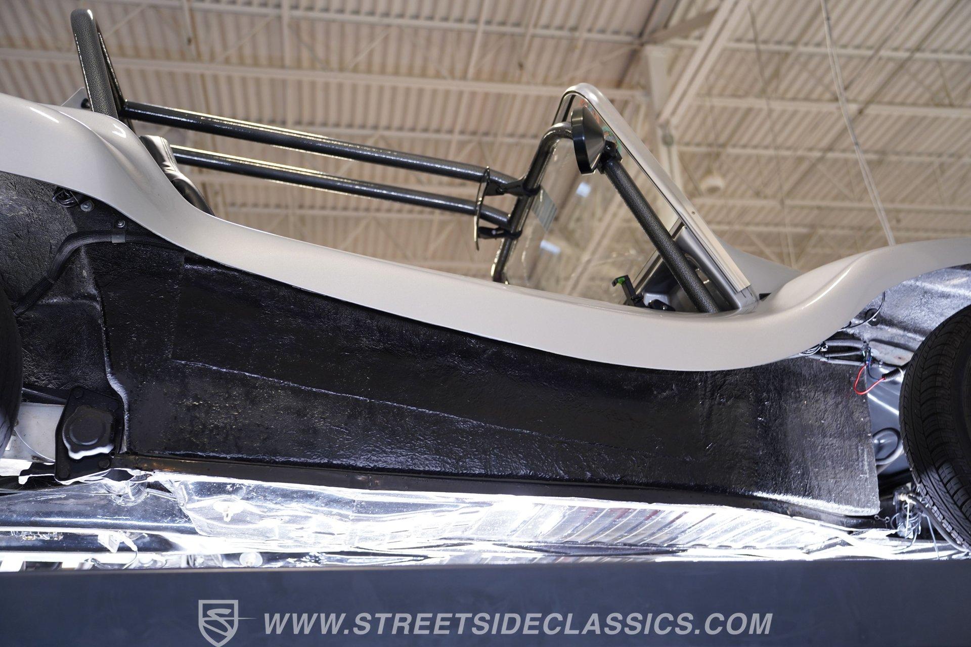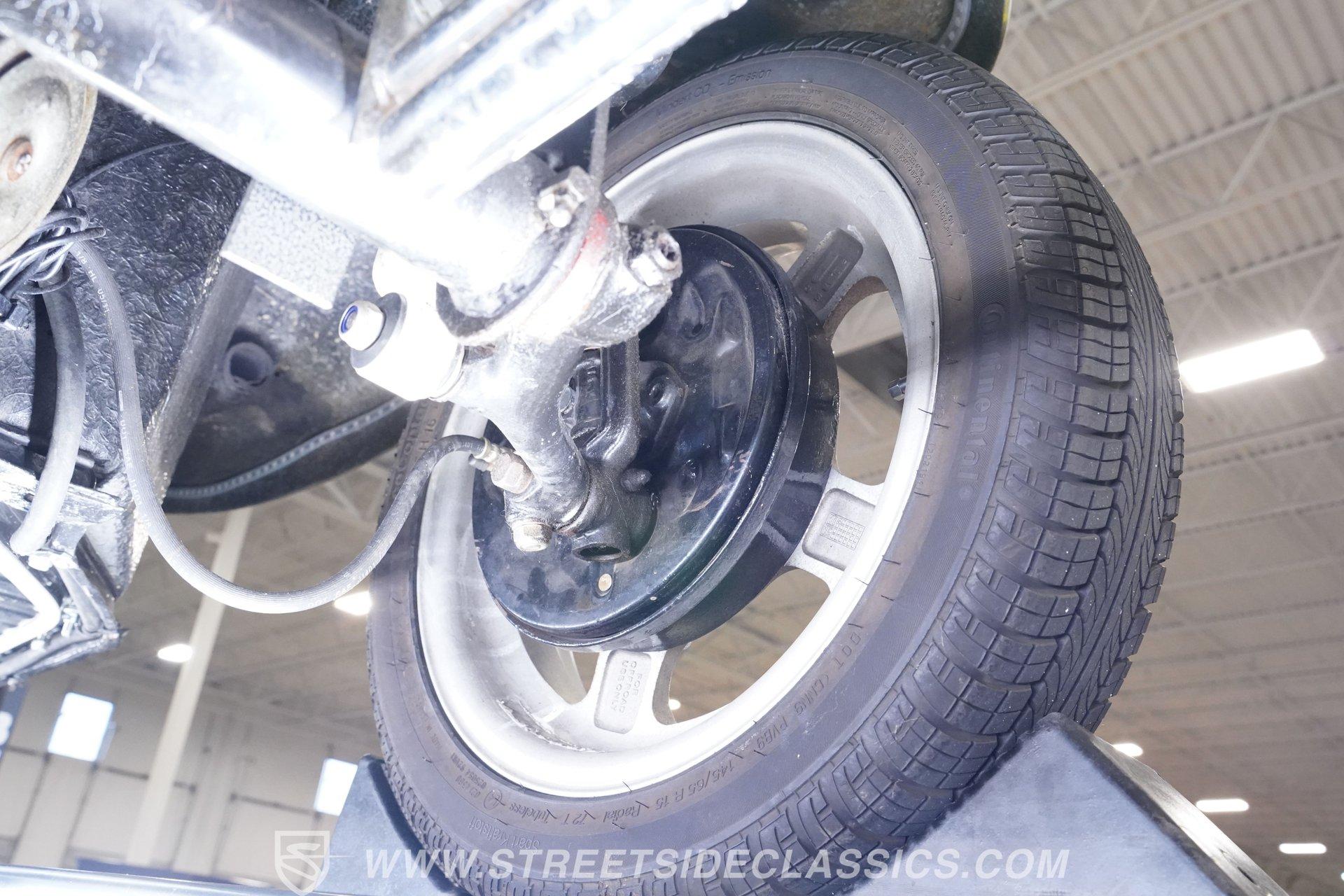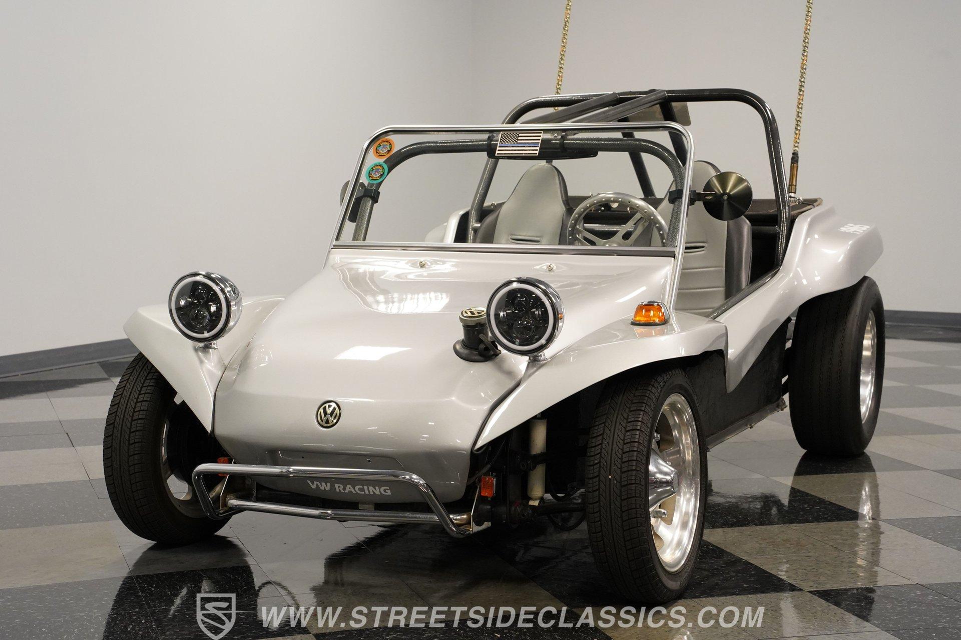 Power comes from a lively 1600 CC Flat-4 engine equipped with dual Weber two-barrel carburetors and paired with a 4-speed manual transmission. Factory-style front and rear suspension keeps the ride classic, while aftermarket lowering shocks give it a more aggressive stance. Custom 15-inch alloy wheels are wrapped in 145/65R15 tires up front and wider 235/65R15 tires in the rear for a planted look. Manual drum brakes provide reliable stopping power. Long tube headers, dual exhaust, and aftermarket mufflers give the buggy that unmistakable air-cooled sound every enthusiast loves.