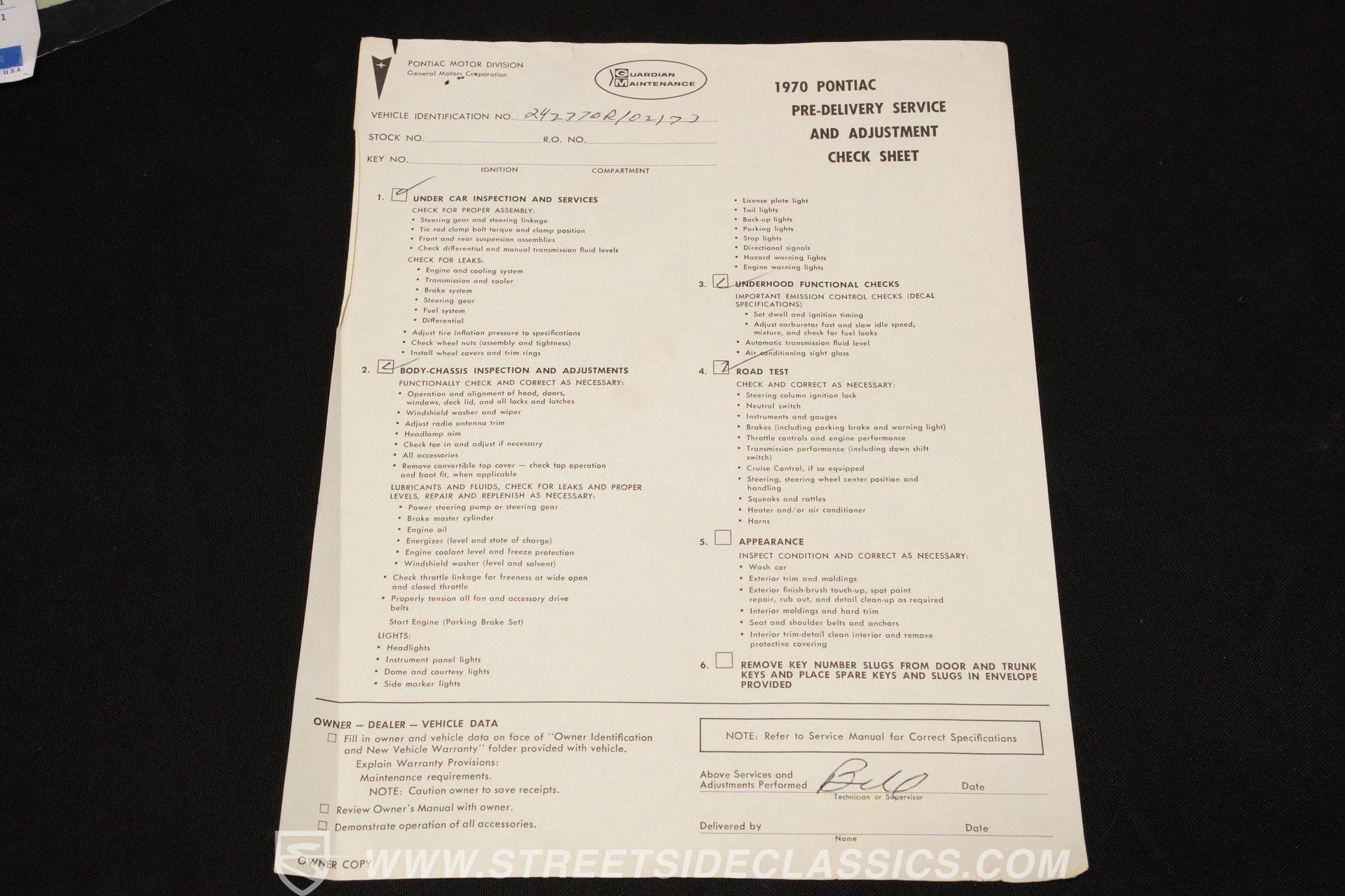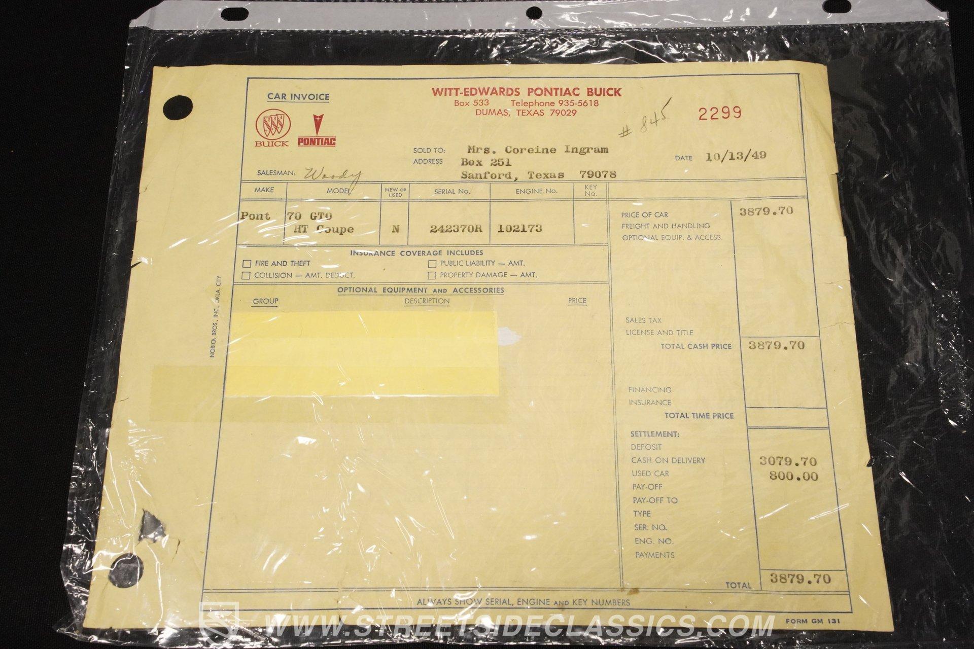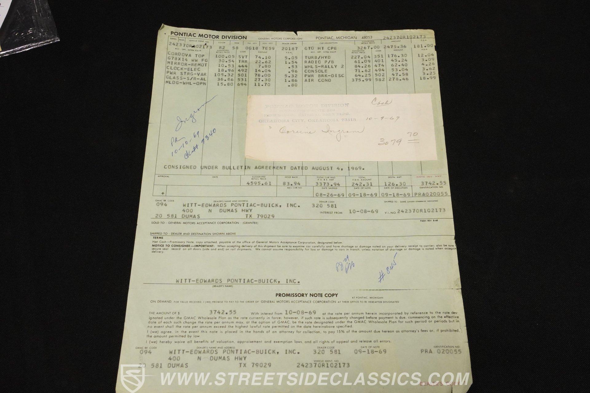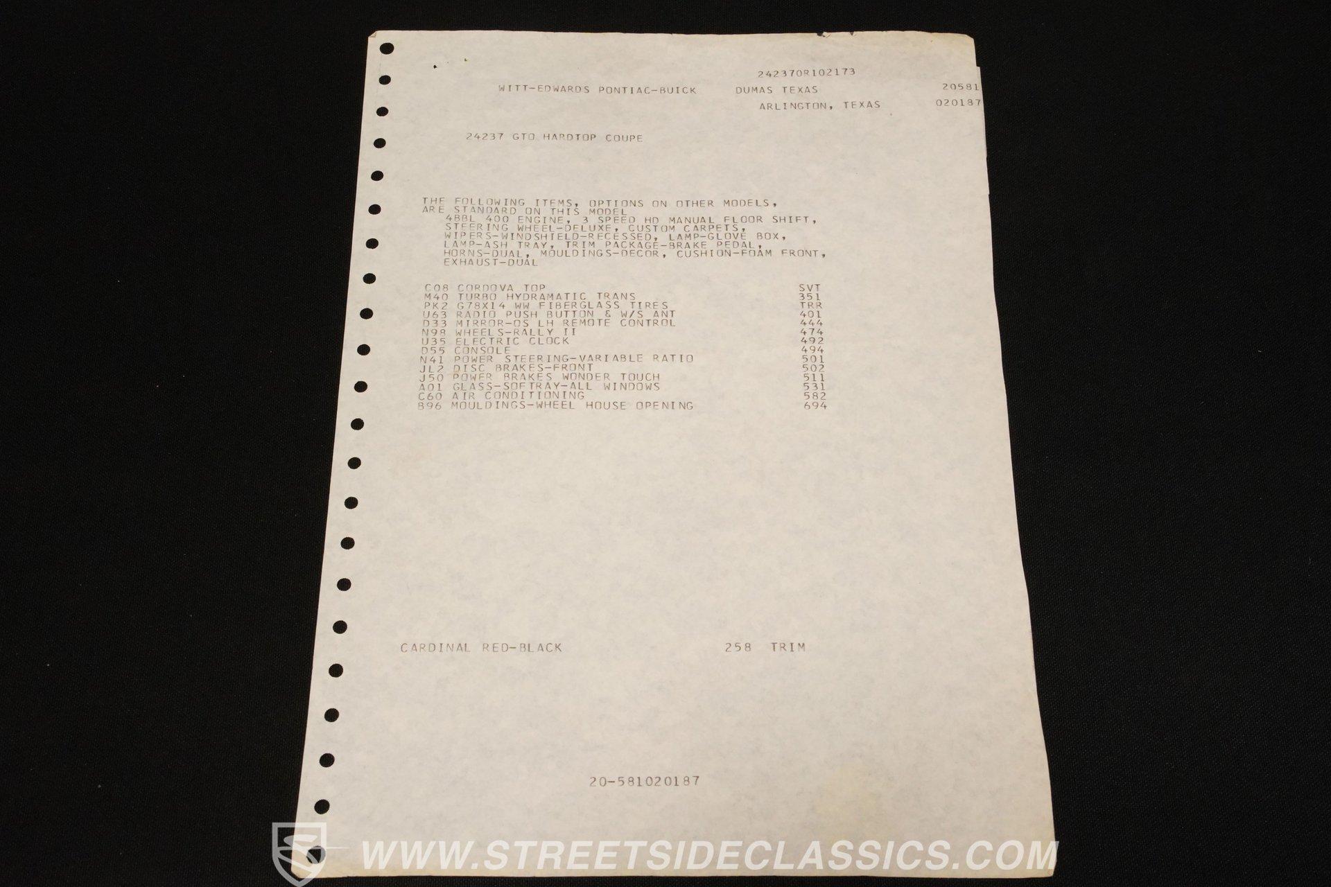 Original Buildsheet, Dealer Invoice, PHS Documentation