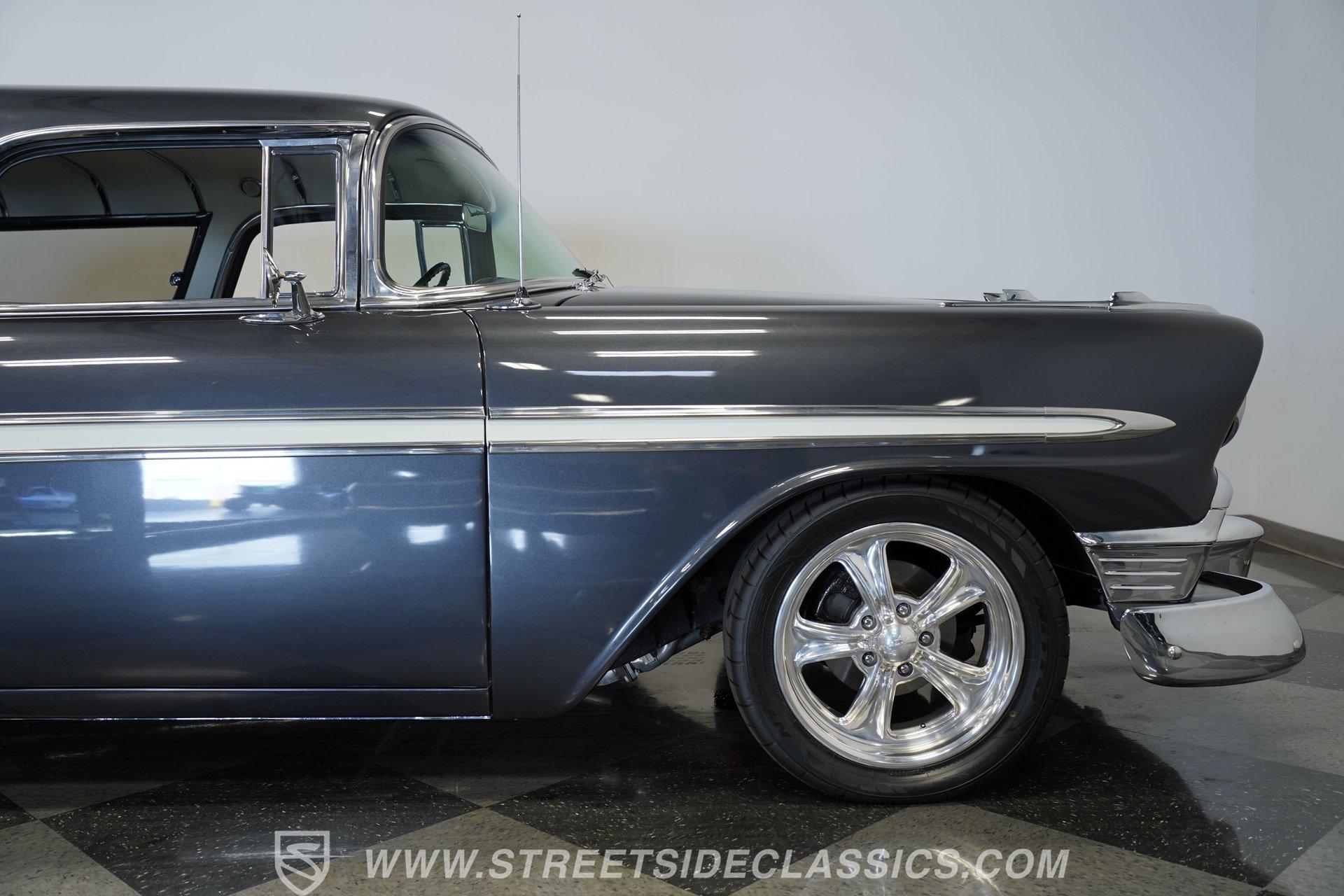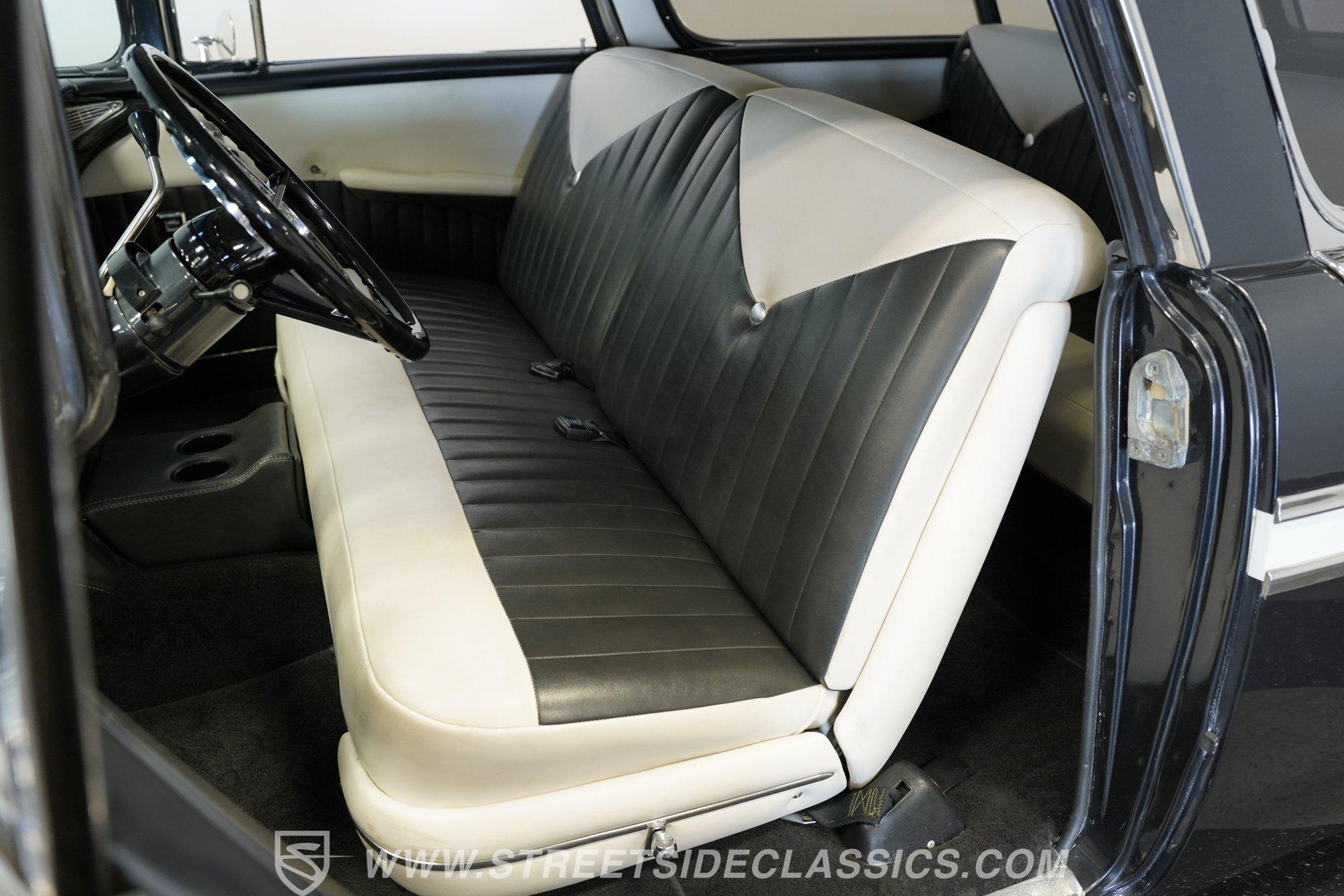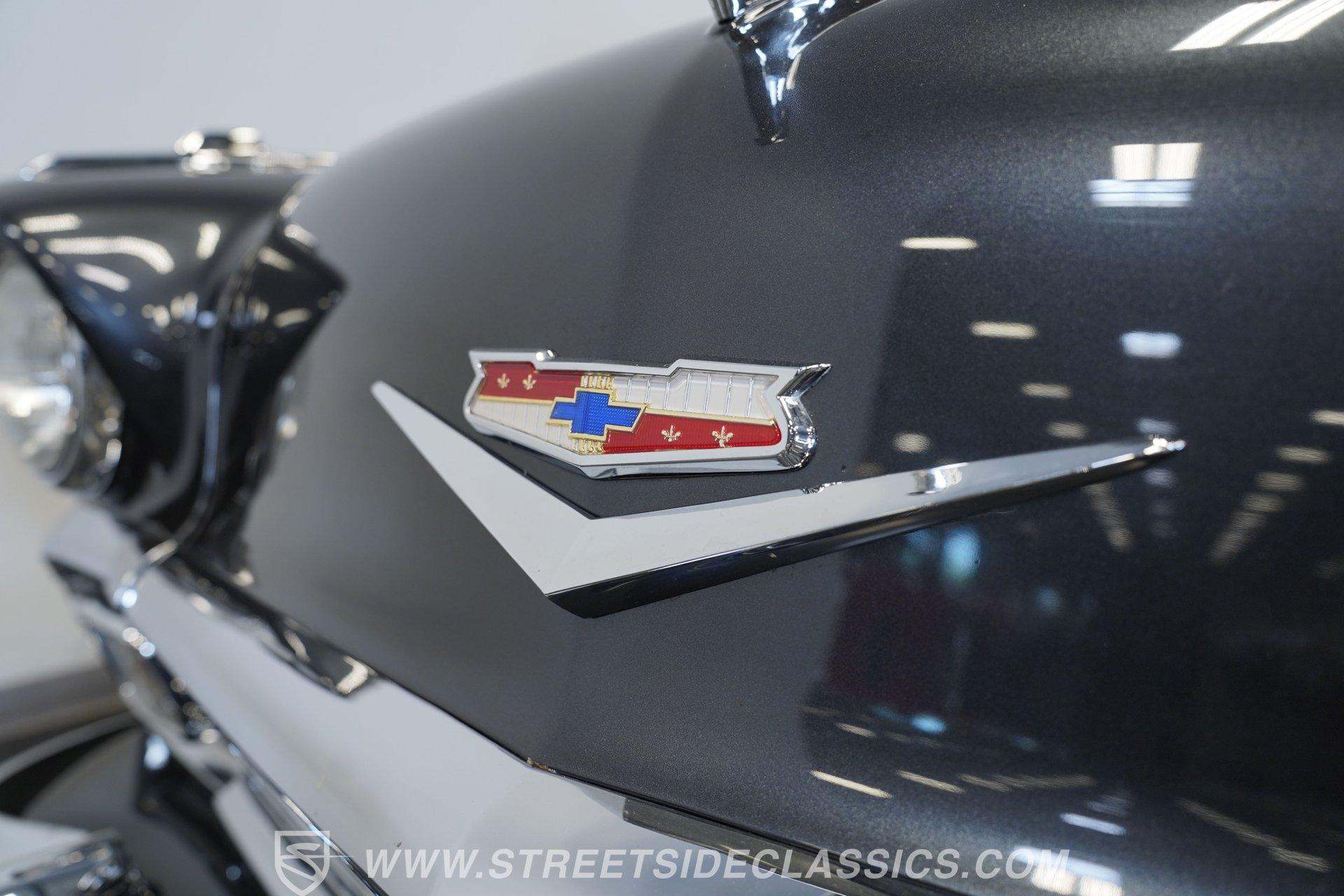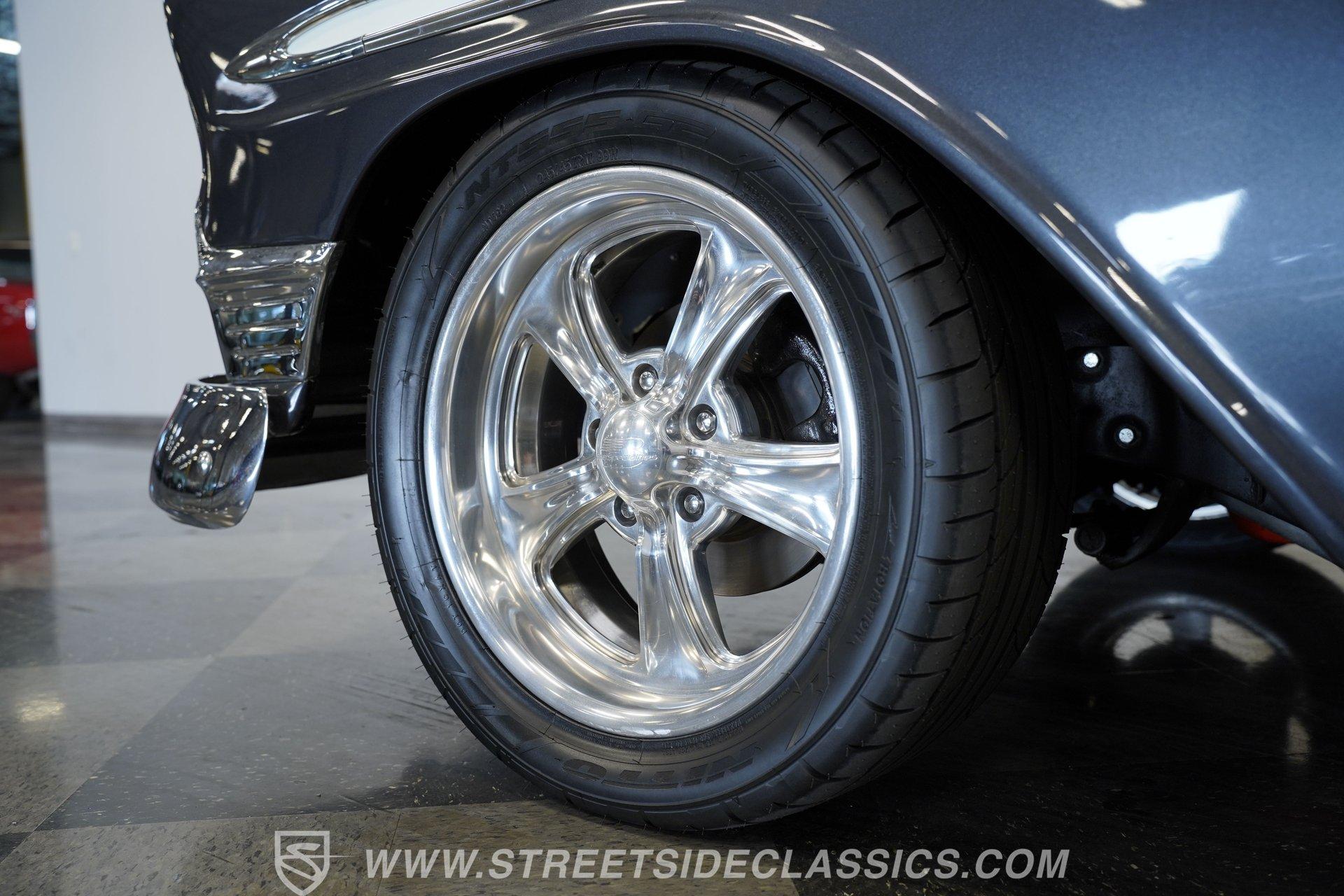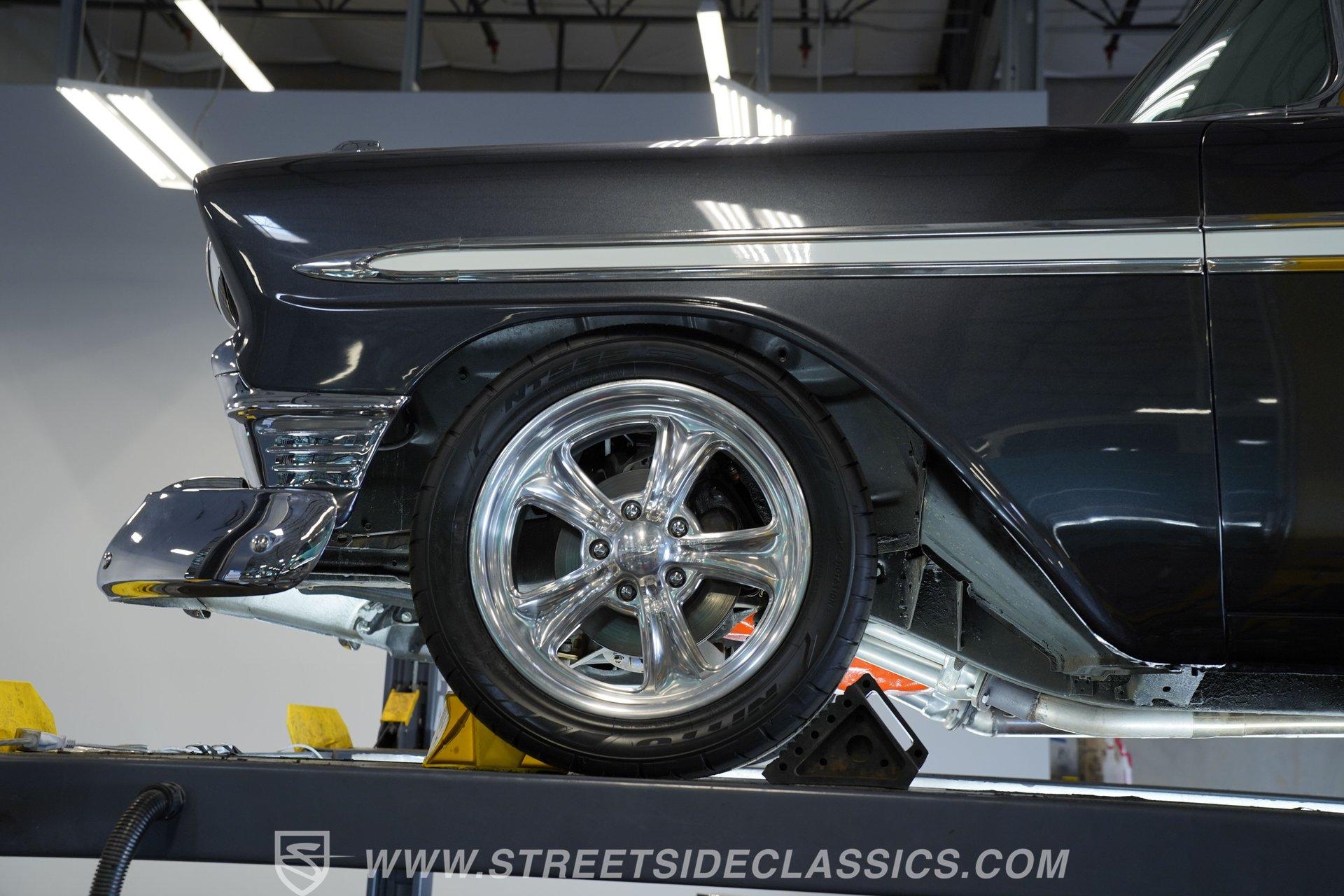 It's arguably one of the most iconic rides Chevy ever created. Just one look at this 1956 Chevrolet Nomad is all it takes to conjure up images of a simpler time, full of carefree adventuring. Revitalized in a Charcoal Gray Metallic over Cream color scheme, with some added metallic flakes in the gray section to catch the sun to perfection, this is a great looking classic. It features a tastefully lowered stance and its set of ultra-sharp 17'' Billet Specialties wheels adds the perfect finishing touch. This vintage Chevy's chrome bright work is in fine condition, including the telescoping chrome antenna, the window tinting retains nice, even coloring and a closer inspection will confirm that its door seals and window trim are pliable and have kept any potentially intruding elements at bay.