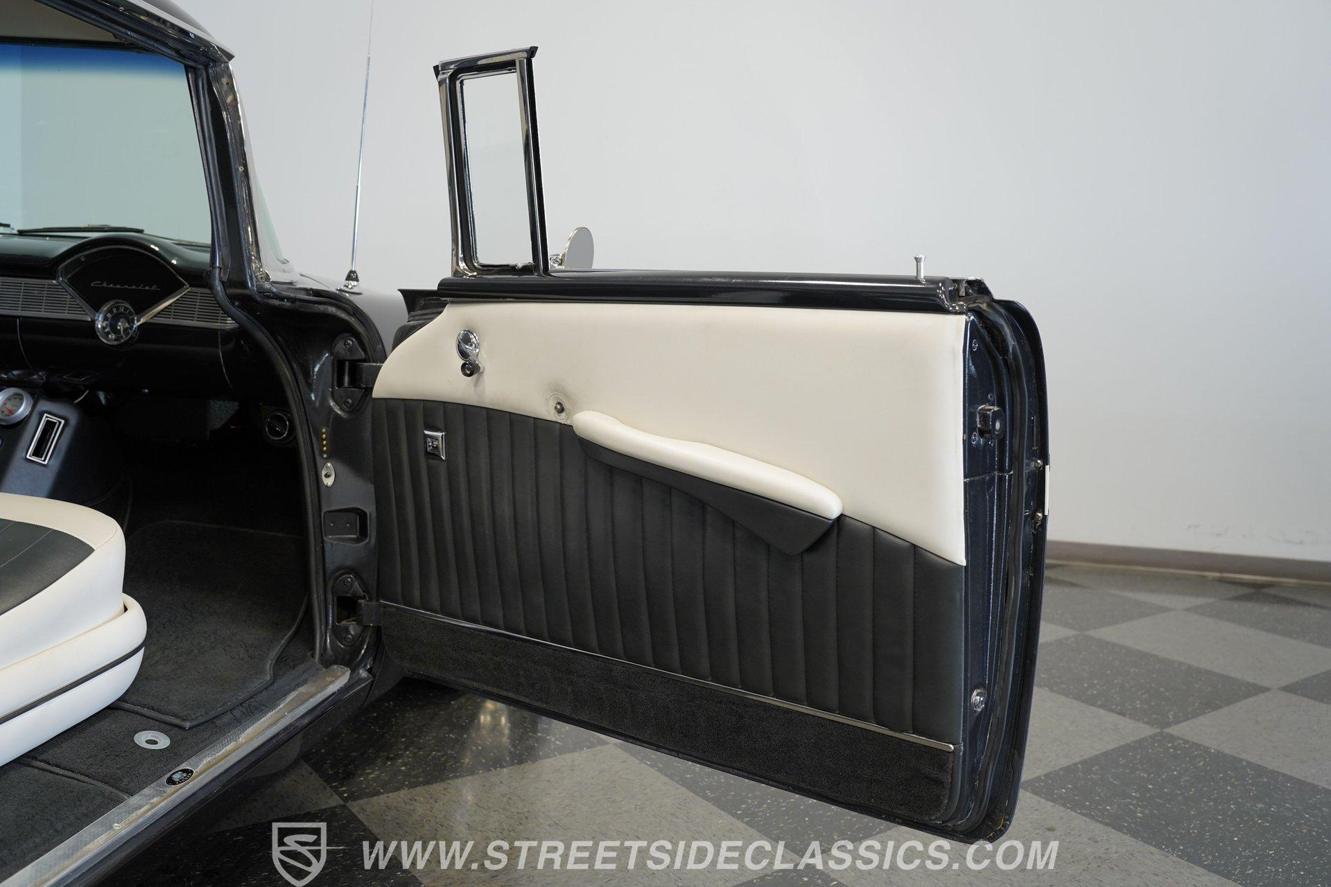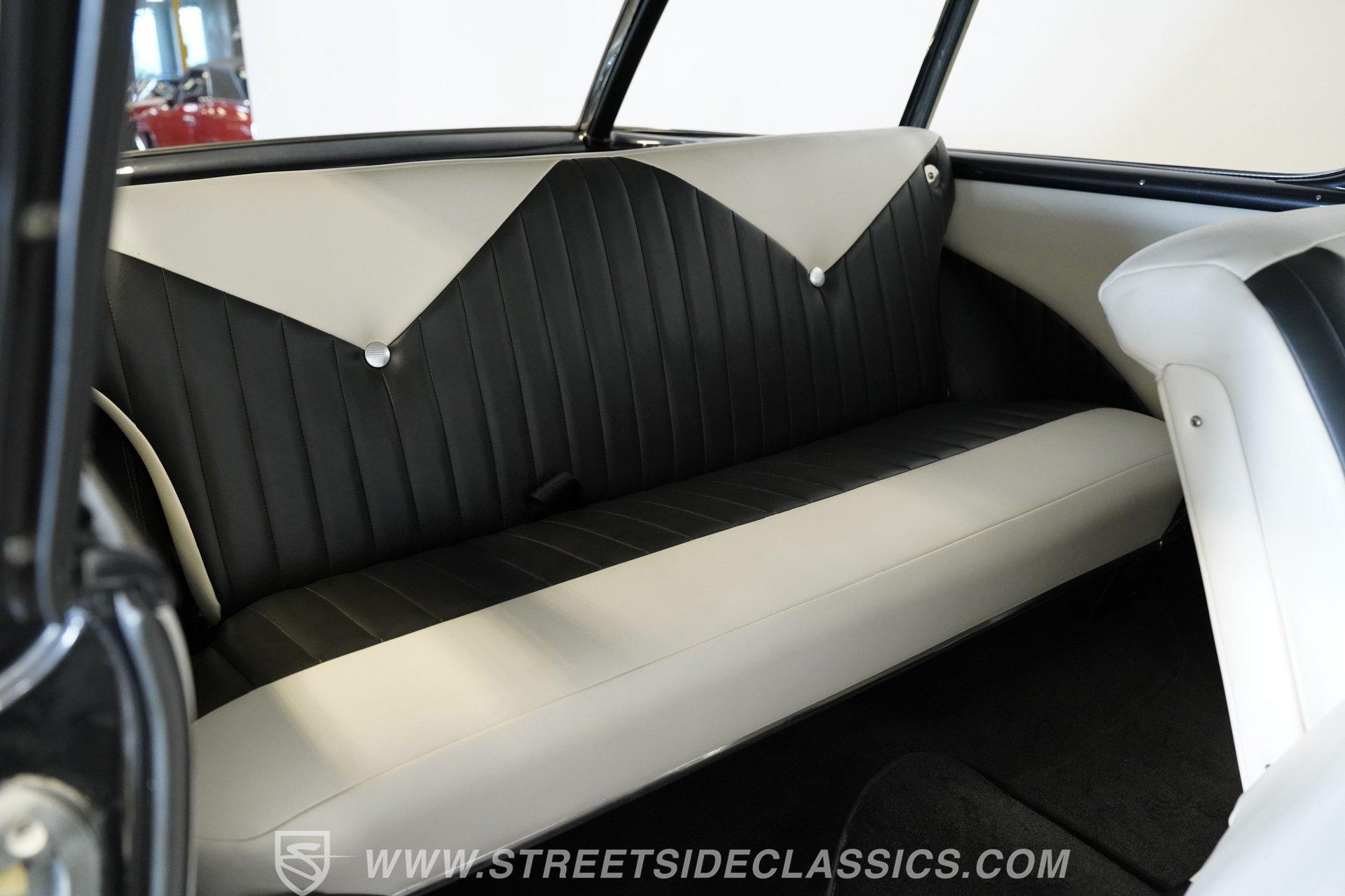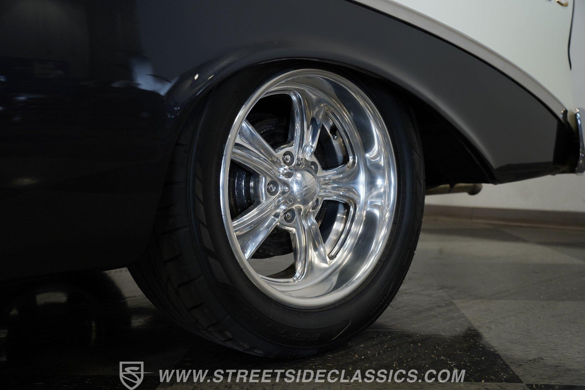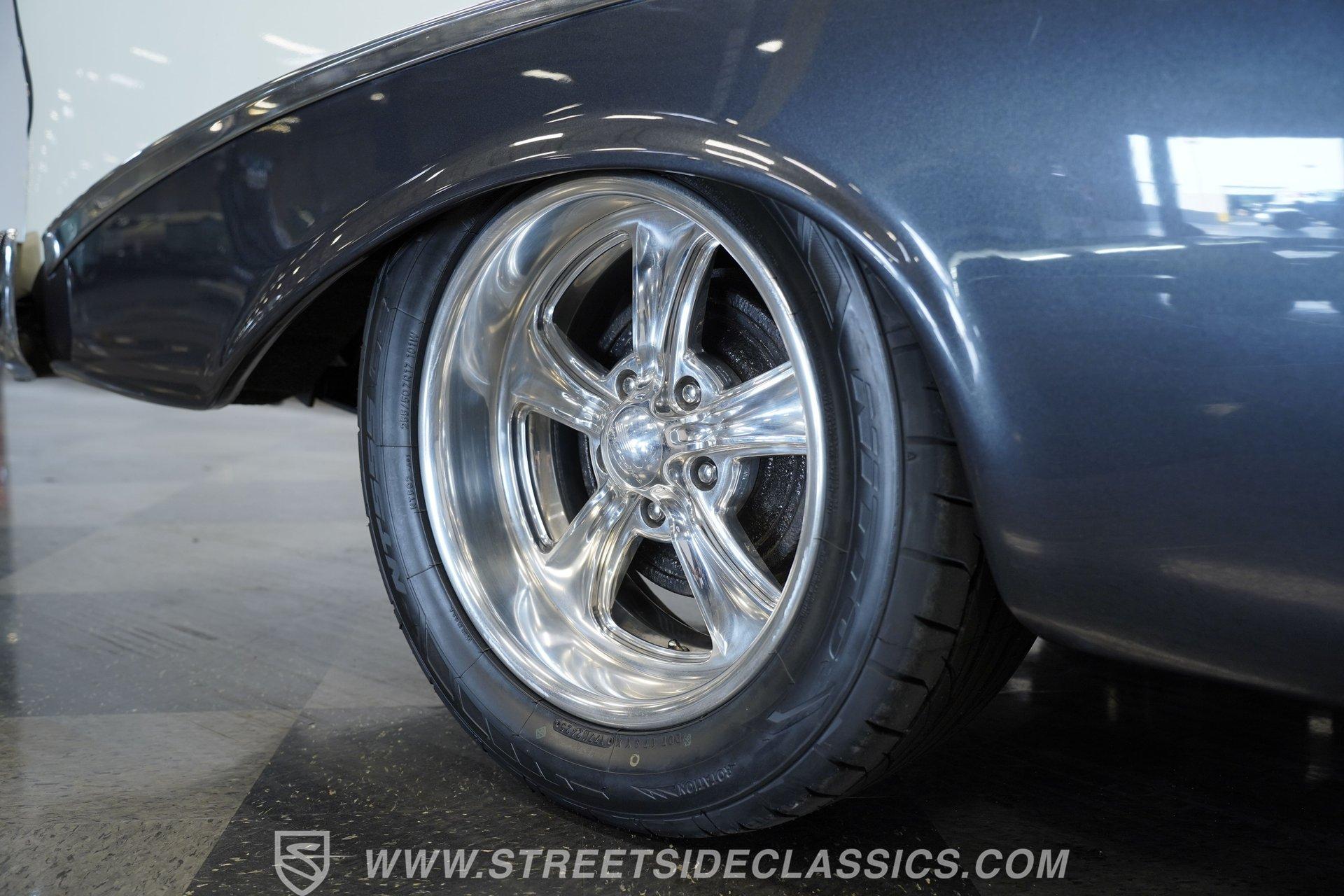 It's arguably one of the most iconic rides Chevy ever created. Just one look at this 1956 Chevrolet Nomad is all it takes to conjure up images of a simpler time, full of carefree adventuring. Revitalized in a Charcoal Gray Metallic over Cream color scheme, with some added metallic flakes in the gray section to catch the sun to perfection, this is a great looking classic. It features a tastefully lowered stance and its set of ultra-sharp 17'' Billet Specialties wheels adds the perfect finishing touch. This vintage Chevy's chrome bright work is in fine condition, including the telescoping chrome antenna, the window tinting retains nice, even coloring and a closer inspection will confirm that its door seals and window trim are pliable and have kept any potentially intruding elements at bay.