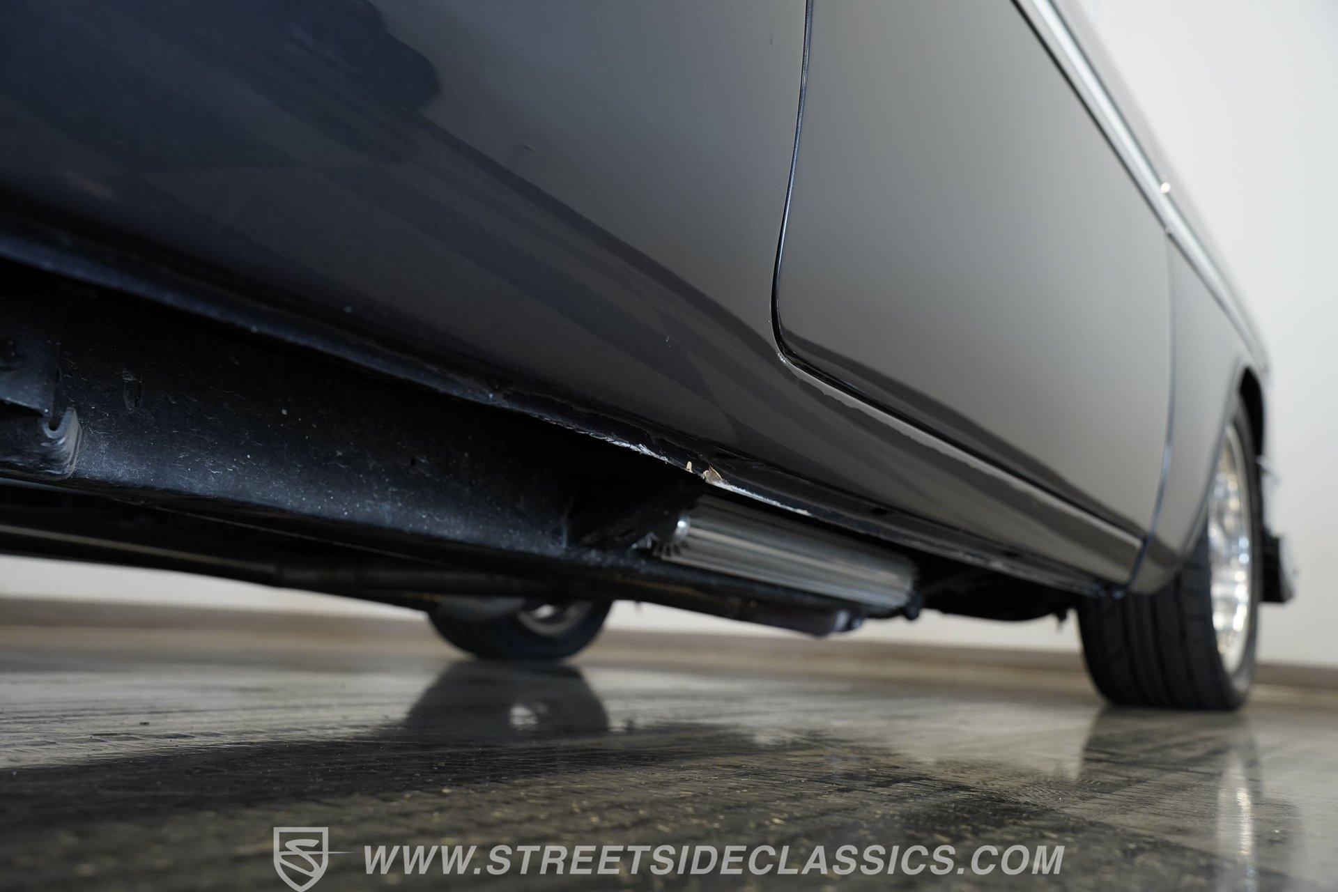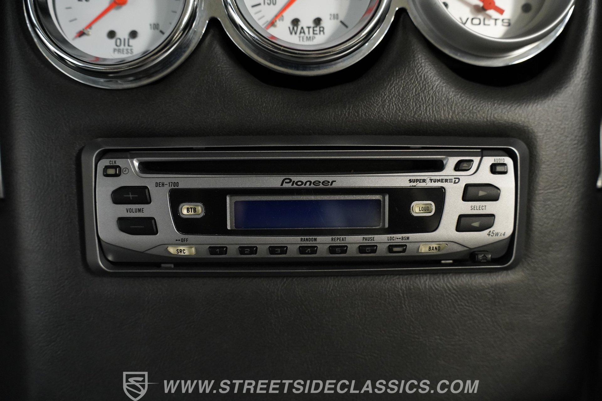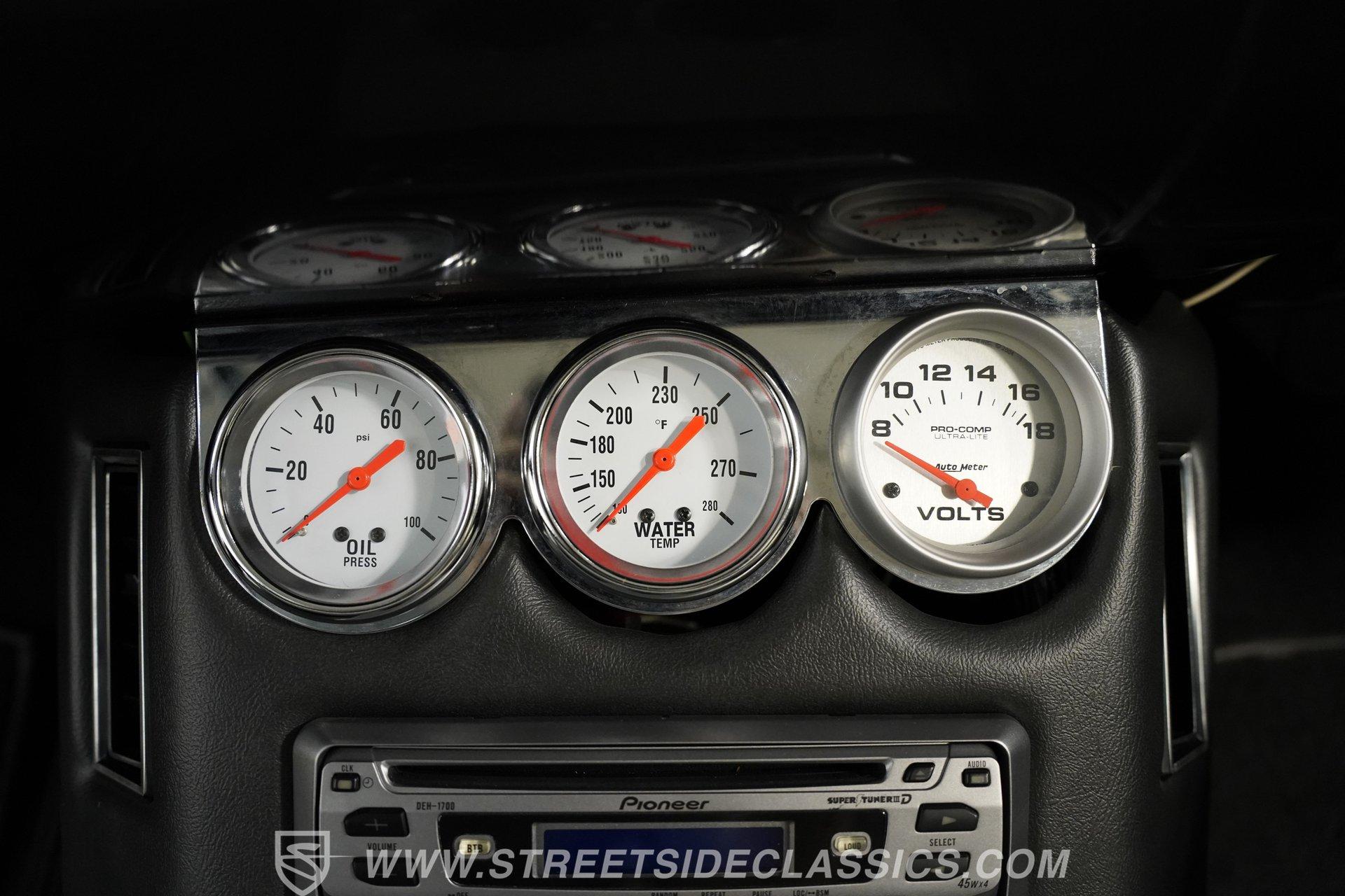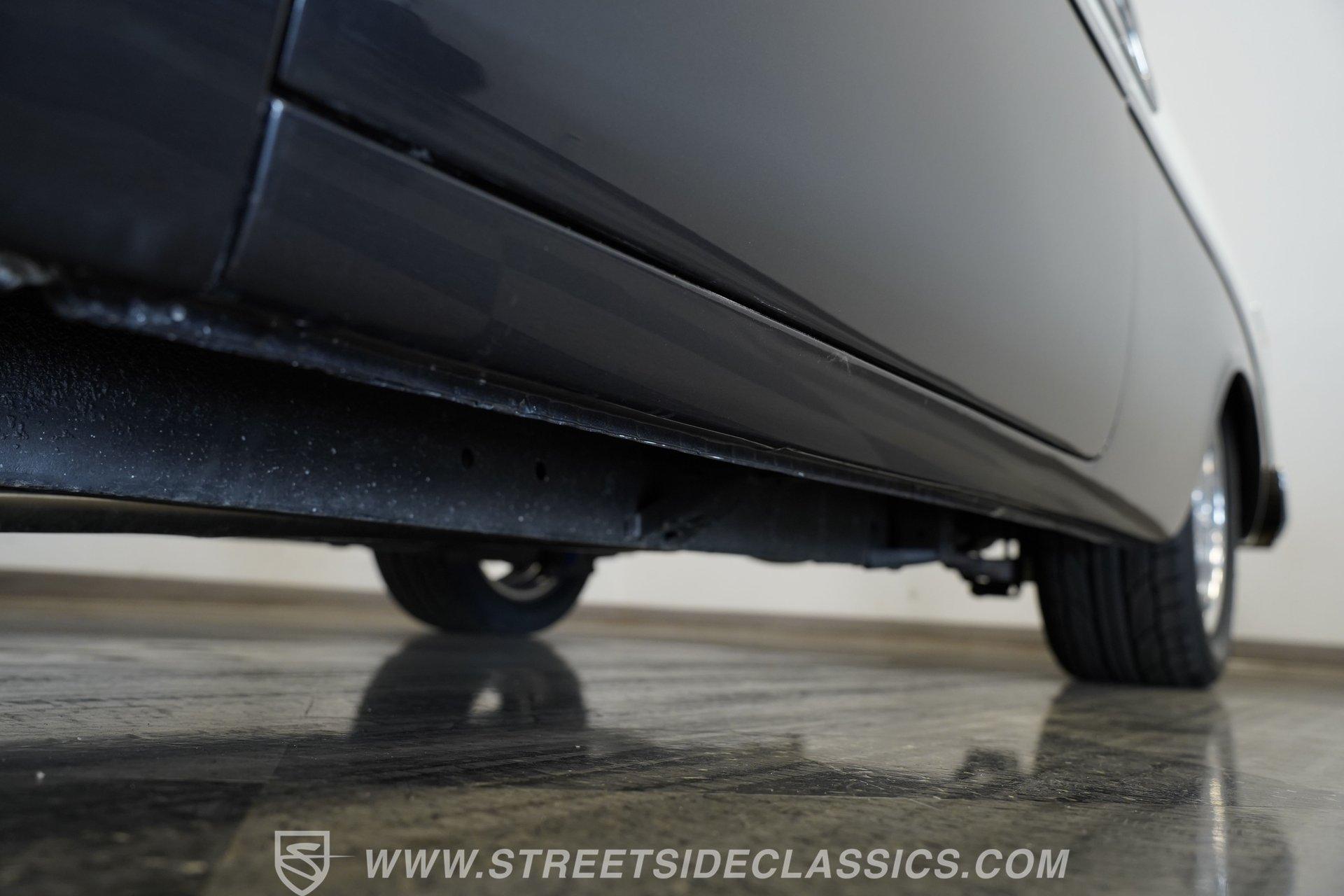 There's plenty to like beneath the hood, where a 350-cubic-inch V8 stands by, ready for action and outfitted with a four-barrel Quadrajet carburetor. Mated to a smooth shifting 3-speed automatic transmission, the engine is in fine form, sending a deep note out of the dual exhaust that leads to a pair of Borla mufflers. A Moroso aluminum radiator sits up front, equipped with a pair of electric fans to keep operating temperatures in check, and the way the aftermarket air conditioning condenser was so cleanly integrated with the radiator shows a reassuring attention to detail. Power brakes that include discs up front bring prompt stops, while the power steering on this Chevy makes it easy to maneuver.