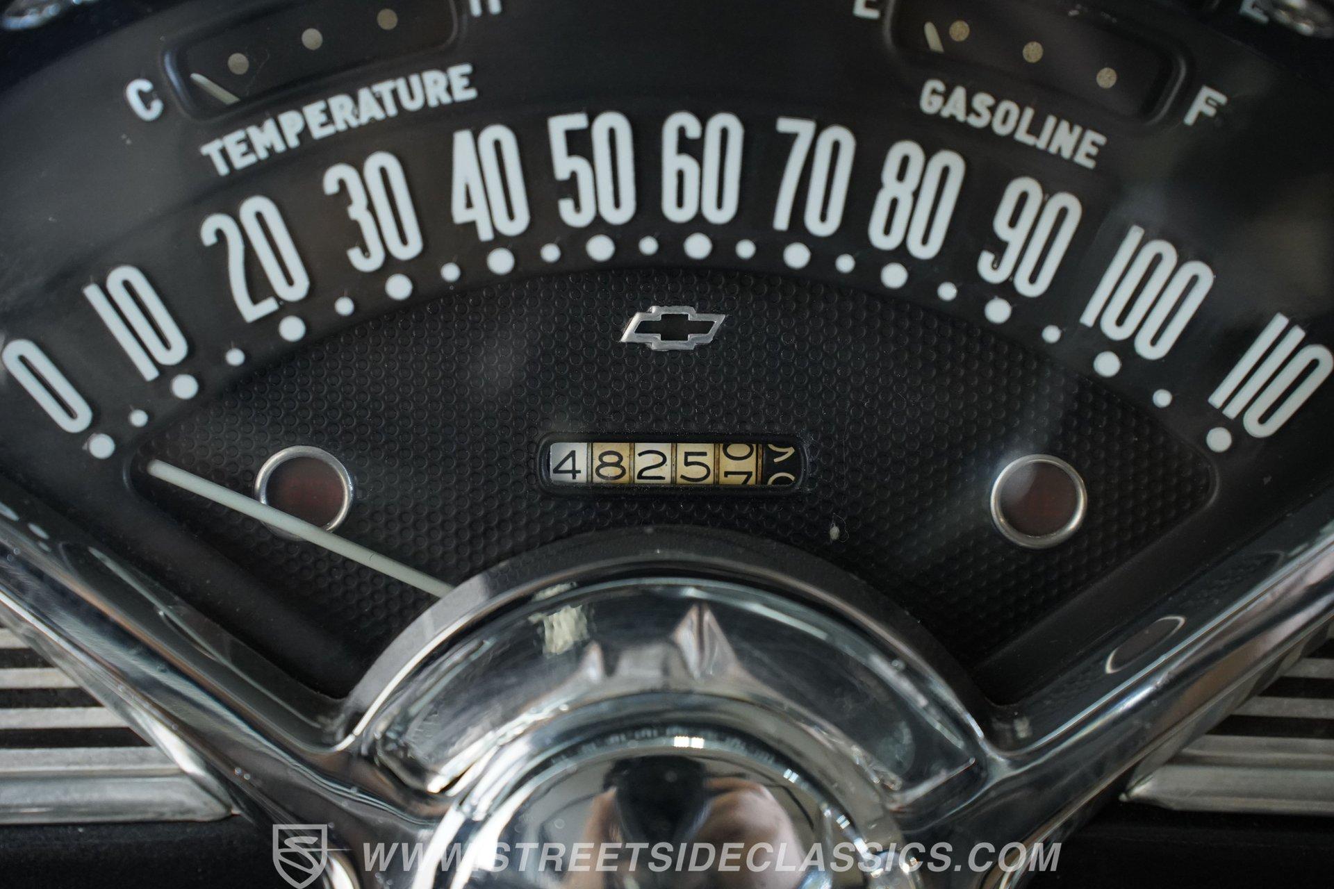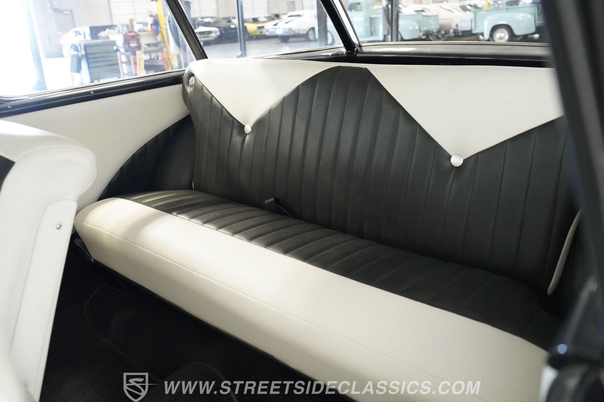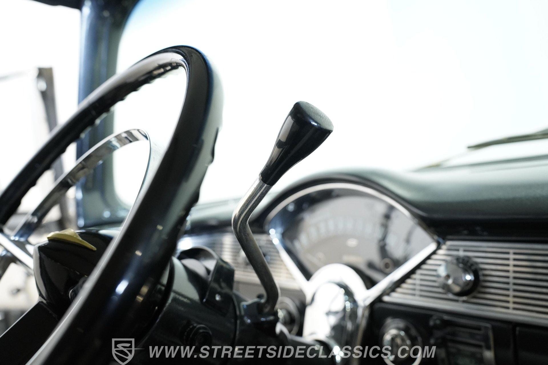 The vinyl interior has been thoroughly refreshed to color-match the exterior and it really presents well, with comfortable bench seating that shows no concerning wear and both carpeting and door panels that are in great shape. An undersized aftermarket steering wheel sits on a tilting column and the signature fan-shaped instrument cluster just beyond it is crystal clear, with a trio of AutoMeter gauges integrated into the custom center console just to the right to monitor motoring functions, along with a Pioneer AM/FM/CD stereo. An added Vintage Air climate control system makes this Bel Air a comfortable driver throughout the year and while the system isn't currently blowing as cold as it should, that should likely be remedied by a simple freon recharge.