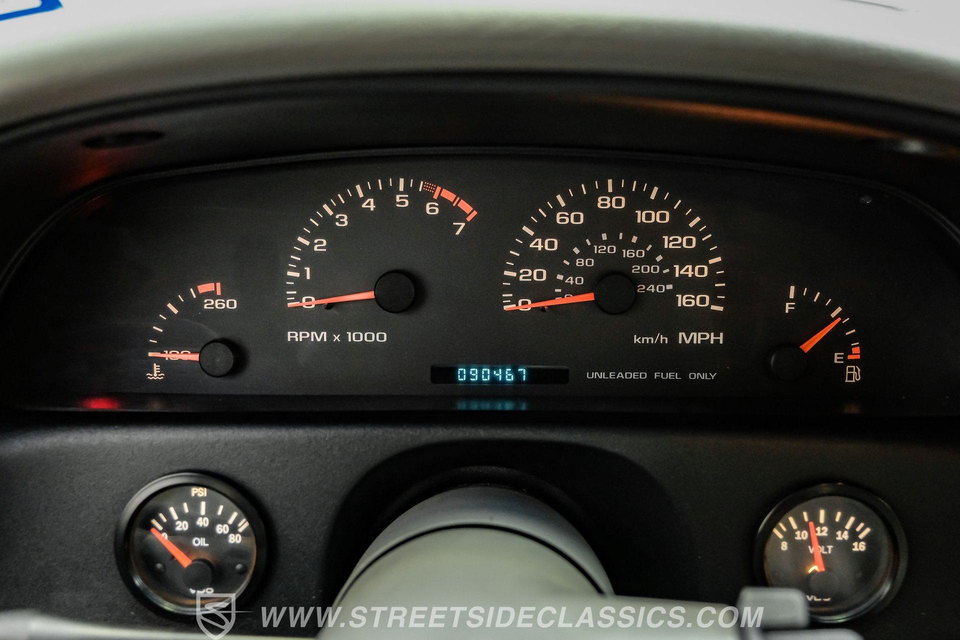 Slide inside and you are greeted by the inviting comfort of original gray leather seating, complemented by factory styling that feels both timeless and practical. Power front seats, windows, and mirrors make every drive effortless, while added A-pillar gauges for tach, water temp, and trans temp keep you connected to the car's performance roots. The classic AM/FM/CD radio delivers your favorite tunes, and factory air conditioning ensures year-round comfort. This is a spacious, driver-focused environment perfect for long cruises or weekend adventures.