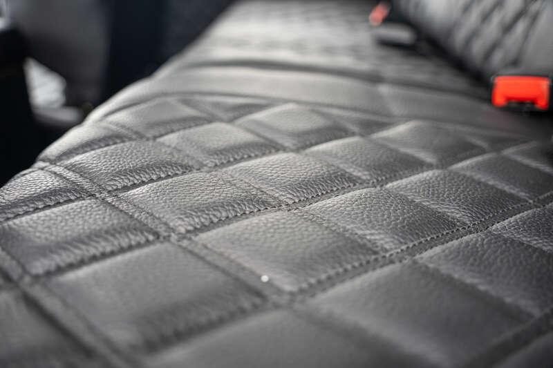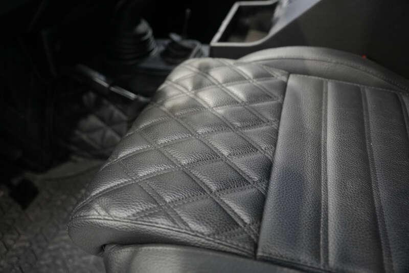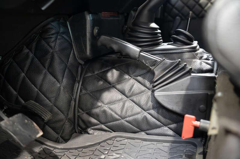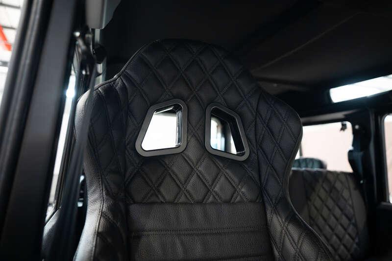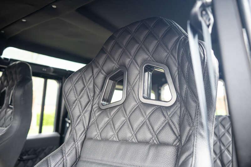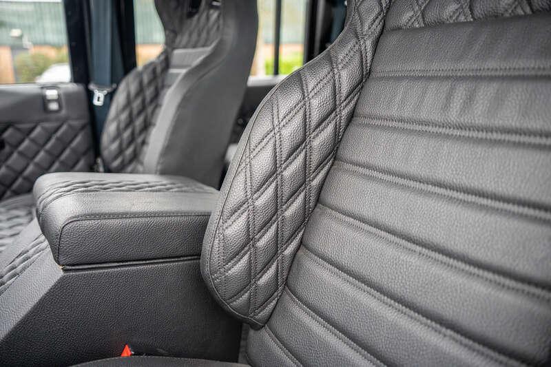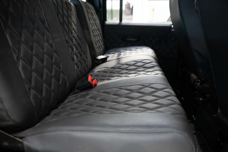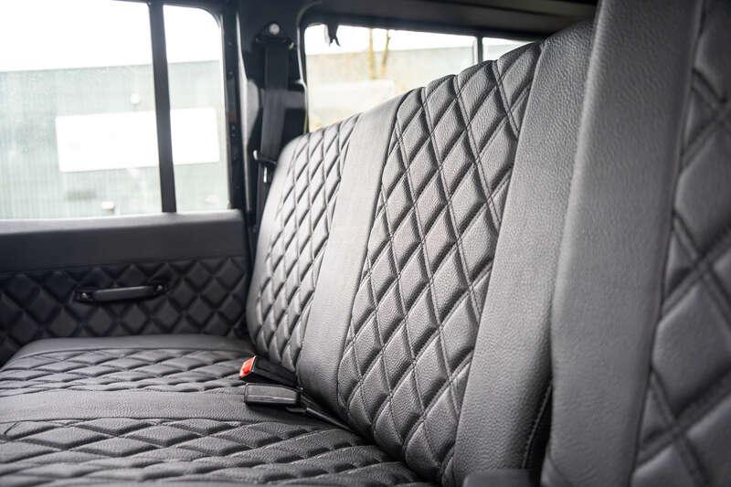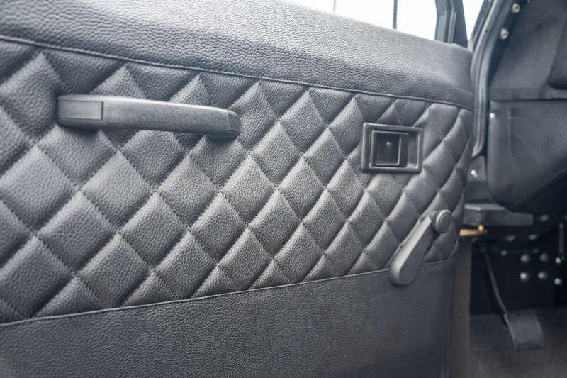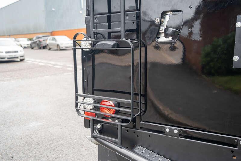 - Present specification includes a retrimmed black interior with a Diamond pattern finish, standard steel wheels currently fitted, however, a set of alternative alloy wheels will be supplied, side steps and rear side benches.