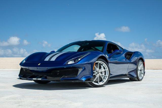 Ferrari 488 Pista- FERRARI CERTIFIED PRE-OWNED - AVAILABLE EXTENDED FERRARI WARRANTY -- Blu Tour de France over Nero - Two Owners - Low Miles - Pristine Condition - Many Fine Options - Expertly Maintained by Authorized Ferrari Dealers - Extended Ferrari Warranty to 3/6/27 - Complimentary Ferrari Genuine Maintenance Service to 2/27/27 -Factory Options:- Suspension Lifter- Two-Tone Stripe in Grigio Ferro and Argento Nurburgring- Carbon Fiber Front Air Vents- Carbon Fiber Front Flaps- Carbon Fiber Side Air Splitters- Carbon Fiber Engine Covers- Carbon Fiber Rear Diffuser- Carbon Fiber Rear Moulding- Carbon Fiber Underdoor Covers- Carbon Fiber Wheel Caps- Carbon Fiber Inner Sill Trim- Carbon Fiber Upper Center Console- Carbon Fiber Racing Seats- 20-inch Forged Wheels- Aluminum Brake Calipers- Scuderia Ferrari Shields- Racing Seat Lifter- Cavallino Stitched to Headrests in Grigio Scuro- 488 Pista Logo Embroidered to Headrests in Grigio Scuro- Special Stitching in Grigio Scuro- Alcantara Central Part of Seats in Blu Medio- Alcantara Interior Carpet in Nero- Colored Inner Details in Grigio Scuro- Dreamline on F1 Paddles in Argento Nurburgring- Dreamline on Steering Wheel in Argento Nurburgring- Adaptive Frontlight System (AFS)- Inner and Outer Electrochromic Mirrors with HomeLink- Integrated Audio System- Radio Navigation System with Bluetooth- Front and Rear Parking Cameras- White Rev Counter- Rear Italian Flag Applique- Heat Insulating Windscreen- High Emotion Low Emission (HELE) SystemIf you are in the market for a Ferrari 488 Pista, please call or email us today.This Ferrari has passed a multi-point inspection performed by our factory trained technicians, and has been enrolled in the Ferrari Approved Certified Pre-Owned Program. The Certified program makes available up to two years of additional Ferrari Approved Warranty coverage. Please see dealer for more details.