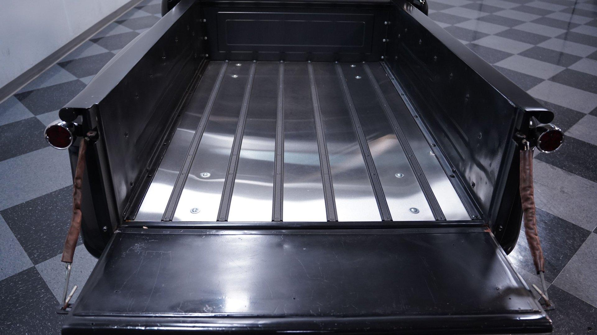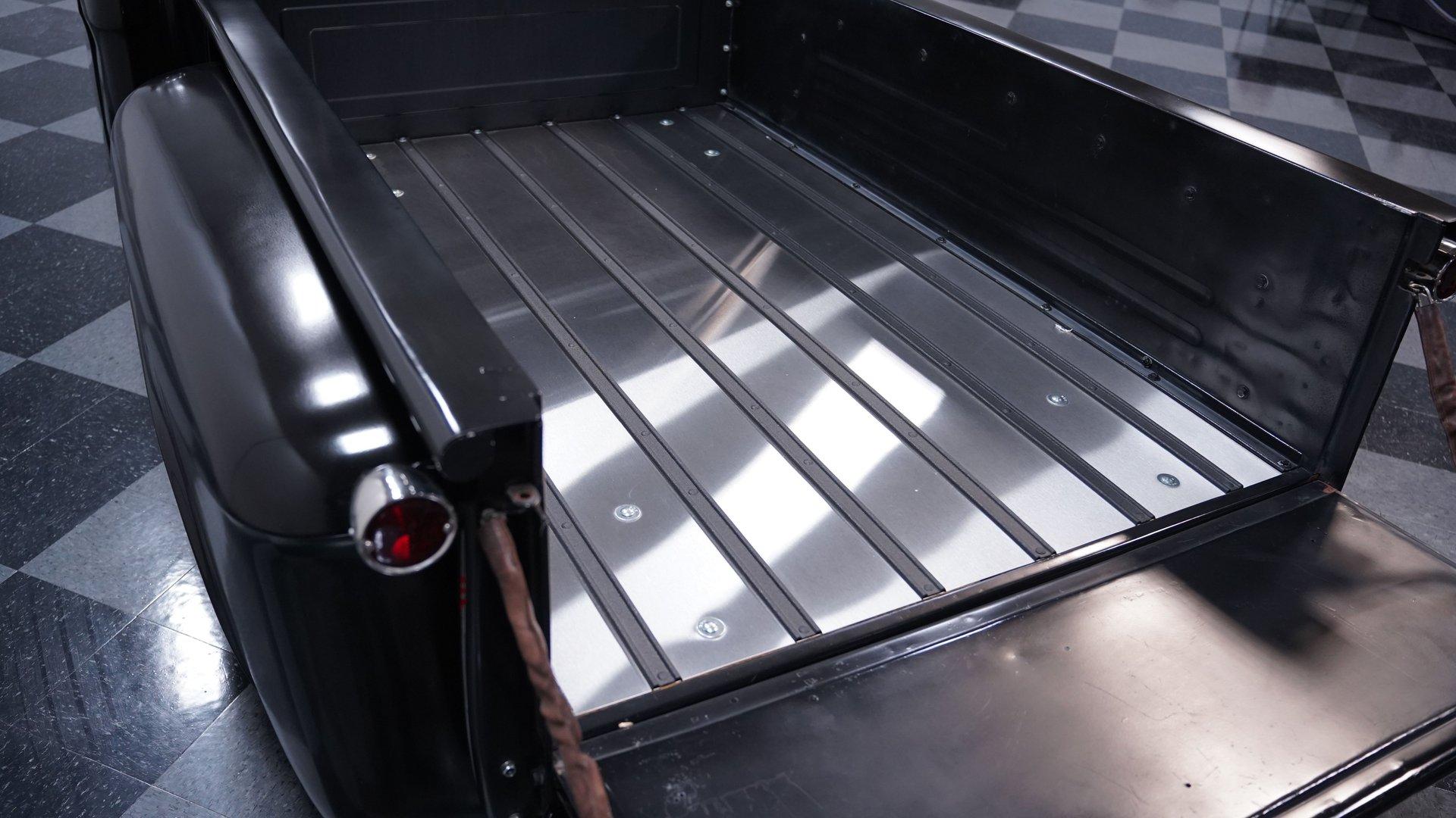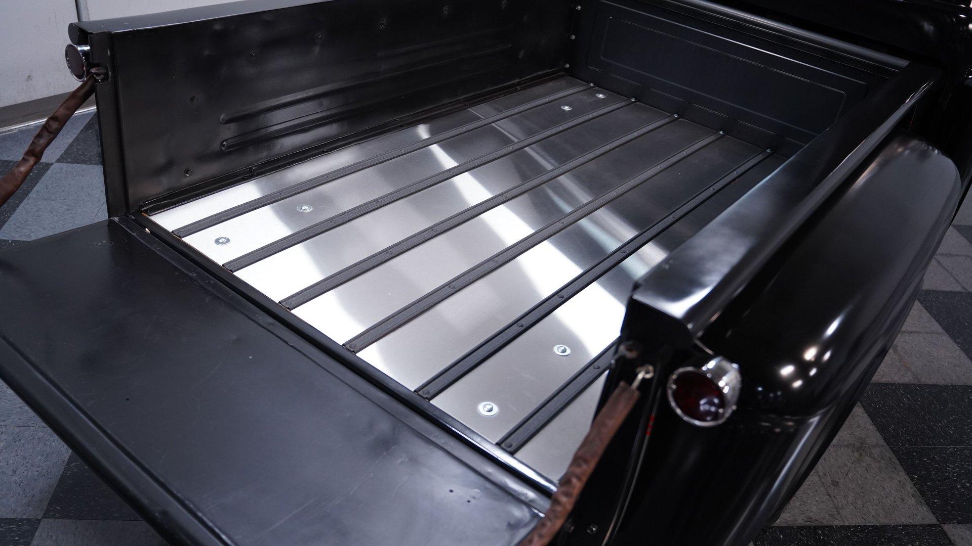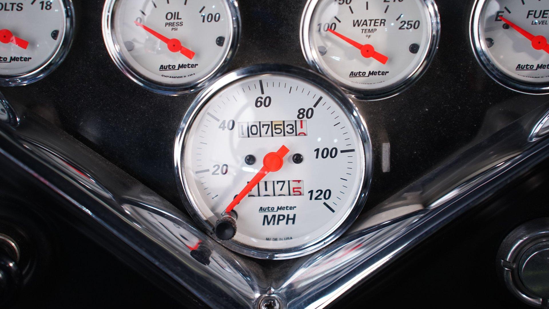 Step inside, and you'll discover a cabin that thoughtfully blends classic design with updated touches. The reupholstered bench seat and door panels, accented with bright yellow highlights and ''1955'' embroidery, offer comfort and personality. The headliner and interior trim show careful attention to detail, while Autometer gauges and a Kenwood head unit tucked behind the dash provide modern convenience without sacrificing vintage appeal. The long shifter handle with an iconic 8-ball knob adds a playful finishing touch to this inviting interior.