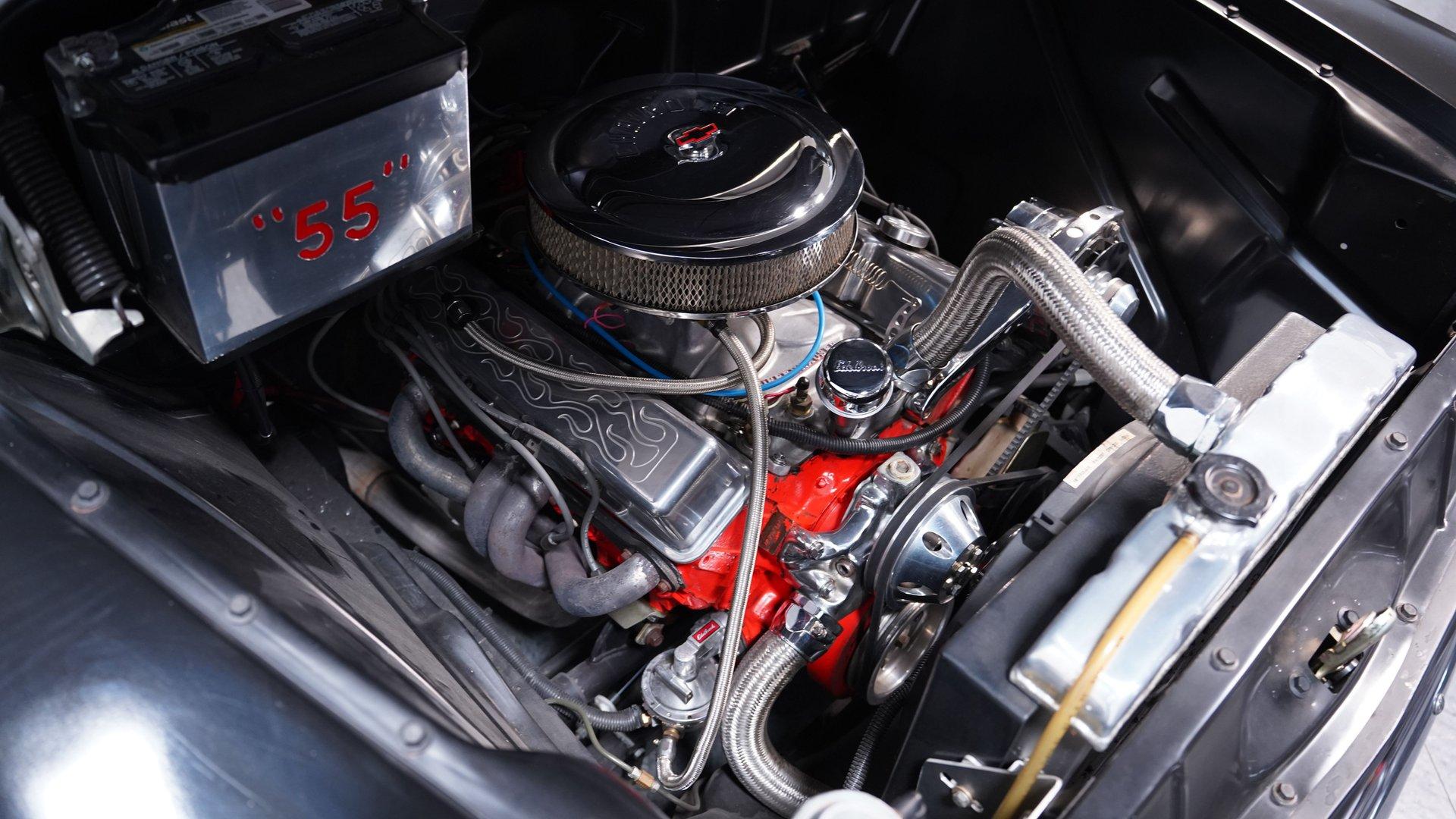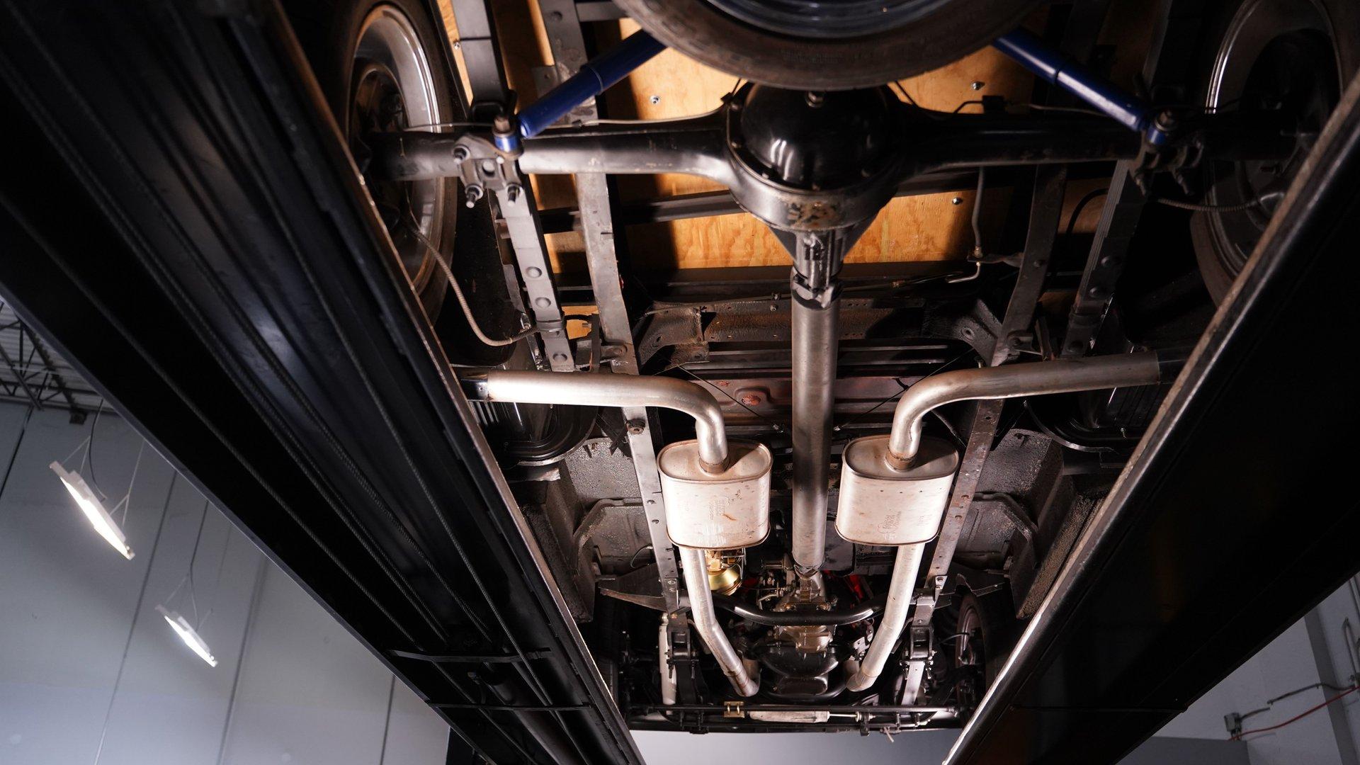 Under the hood, a 305 V8 engine is paired with a 4-speed manual transmission, delivering classic power with a modern edge. Engine bay upgrades include an aluminum radiator with electric fans, MSD electric ignition, Offenhauser intake manifold, Quadrajet carburetor, and aluminum valve covers enhancing reliability and performance. The Hooker headers and upgraded wiring harness further contribute to a responsive and enjoyable driving experience, while the posi 3.55 rear axle and Tom's axles provide confident traction.