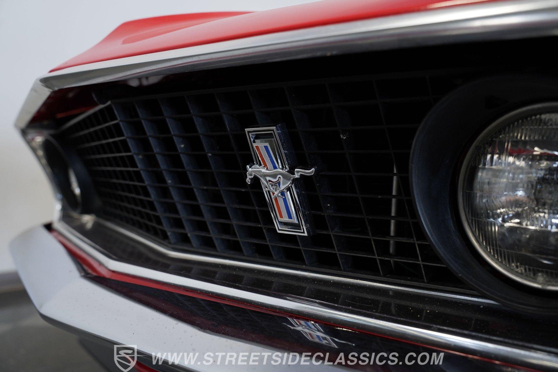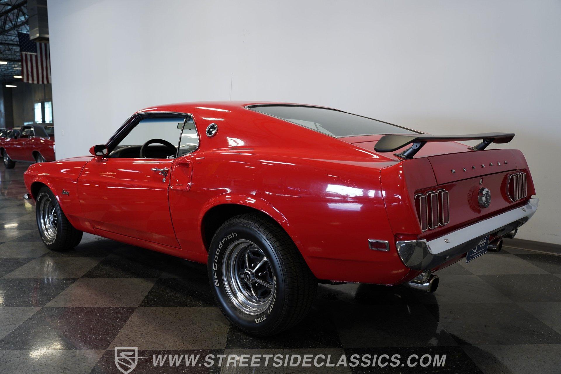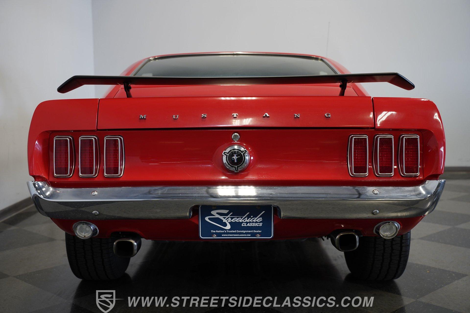 If a candy red classic has always been on your list, here's a top-of-the-line example. This 1969 Ford Mustang Fastback looks as good as it runs. Up front, a Shaker hood with full assembly rises above a clean grille and a bright bumper, featuring clear headlights and a lower black front spoiler that completes the aggressive look. Out back, the Mach 1–style rear spoiler, correct taillights, solid bumper, and dual exhaust carry the theme. Along both sides, the fenders, doors, and quarter panels, featuring signature side scoops, show well with only light wear from enjoying the car. Everything ties together perfectly with the classic Magnum 500 wheels.