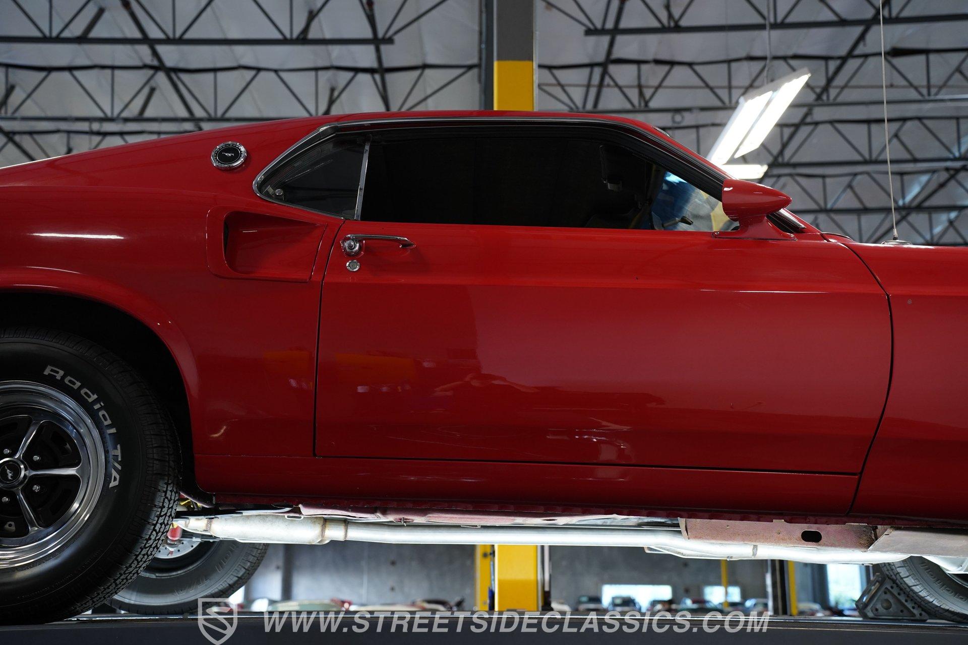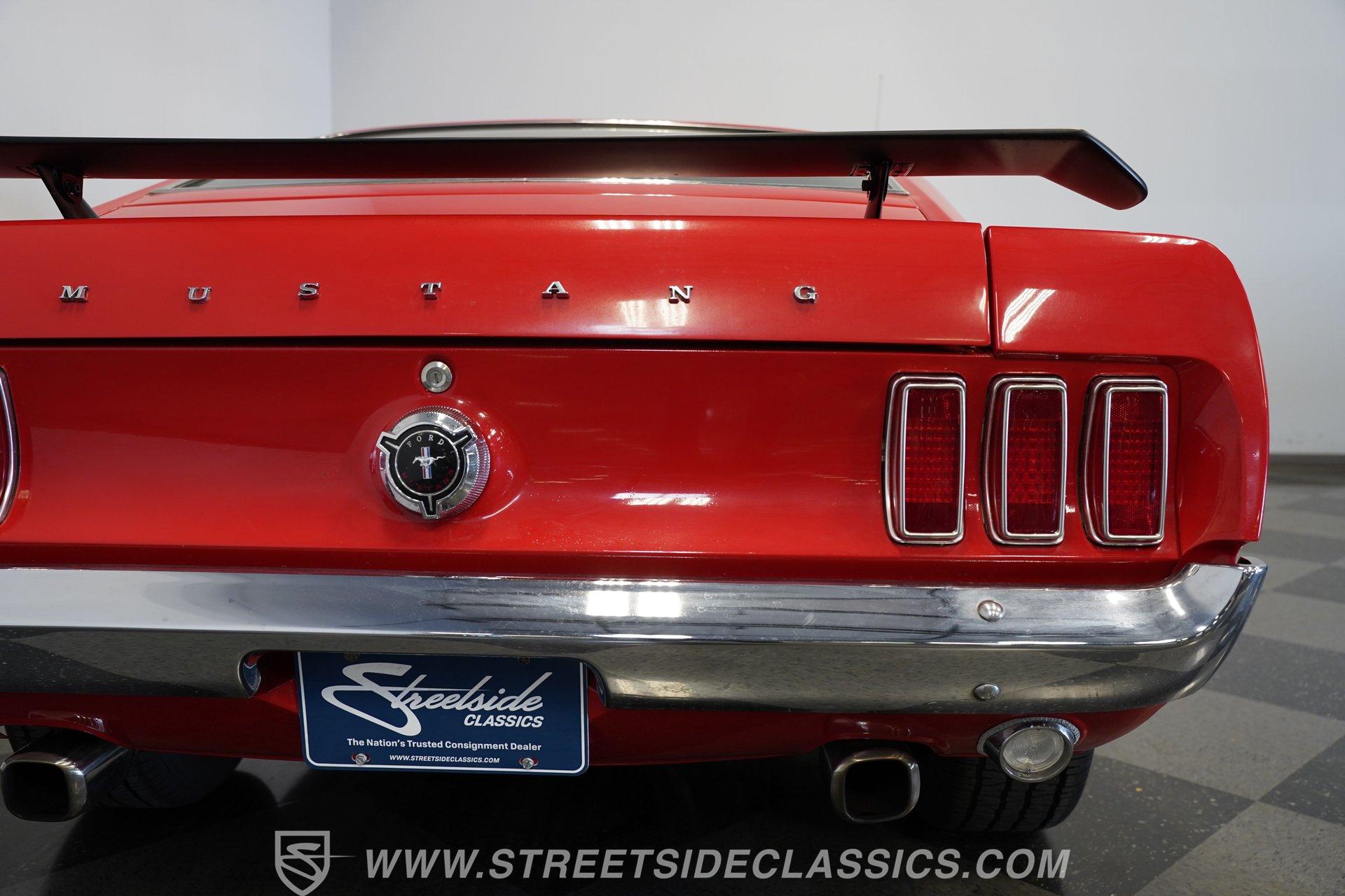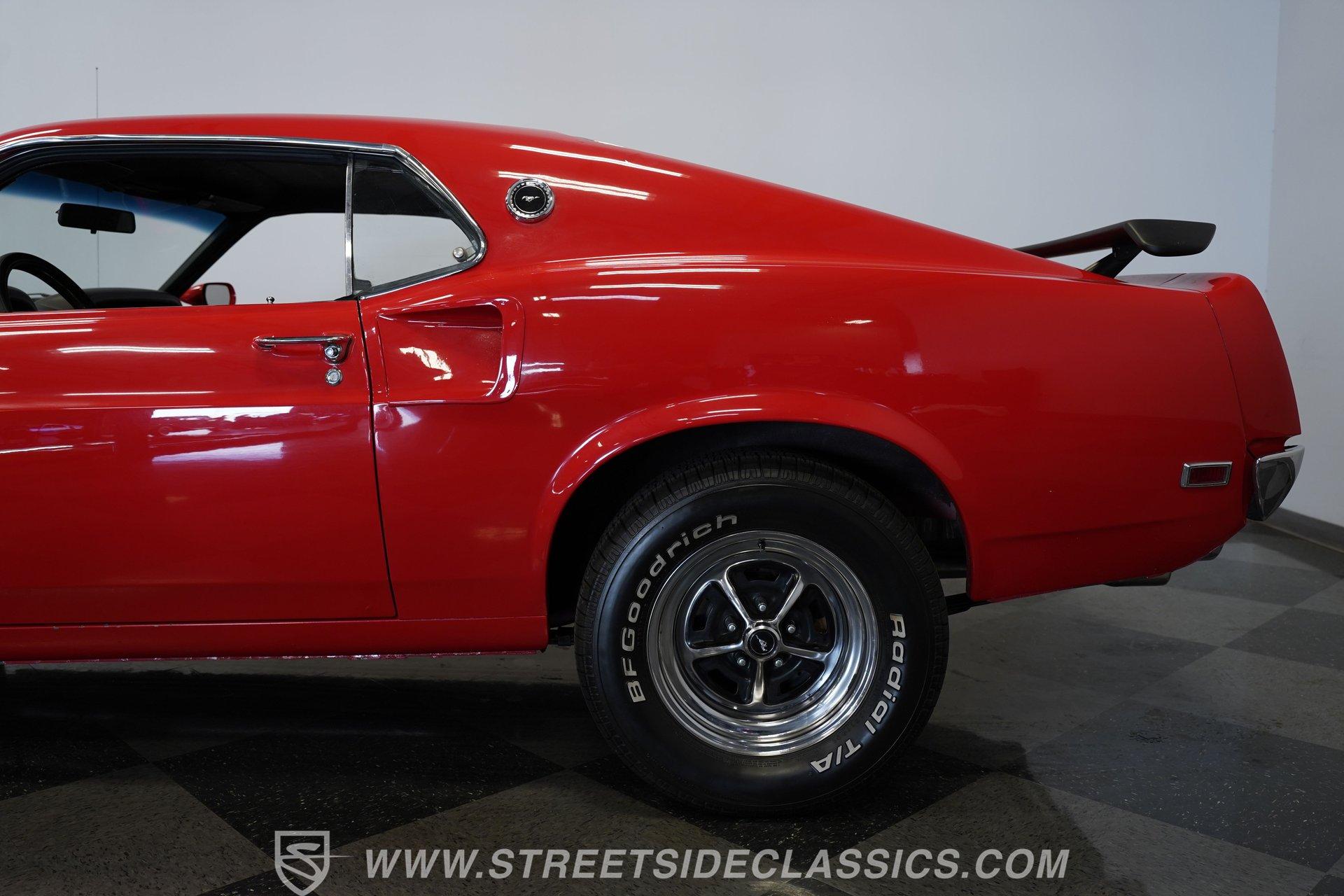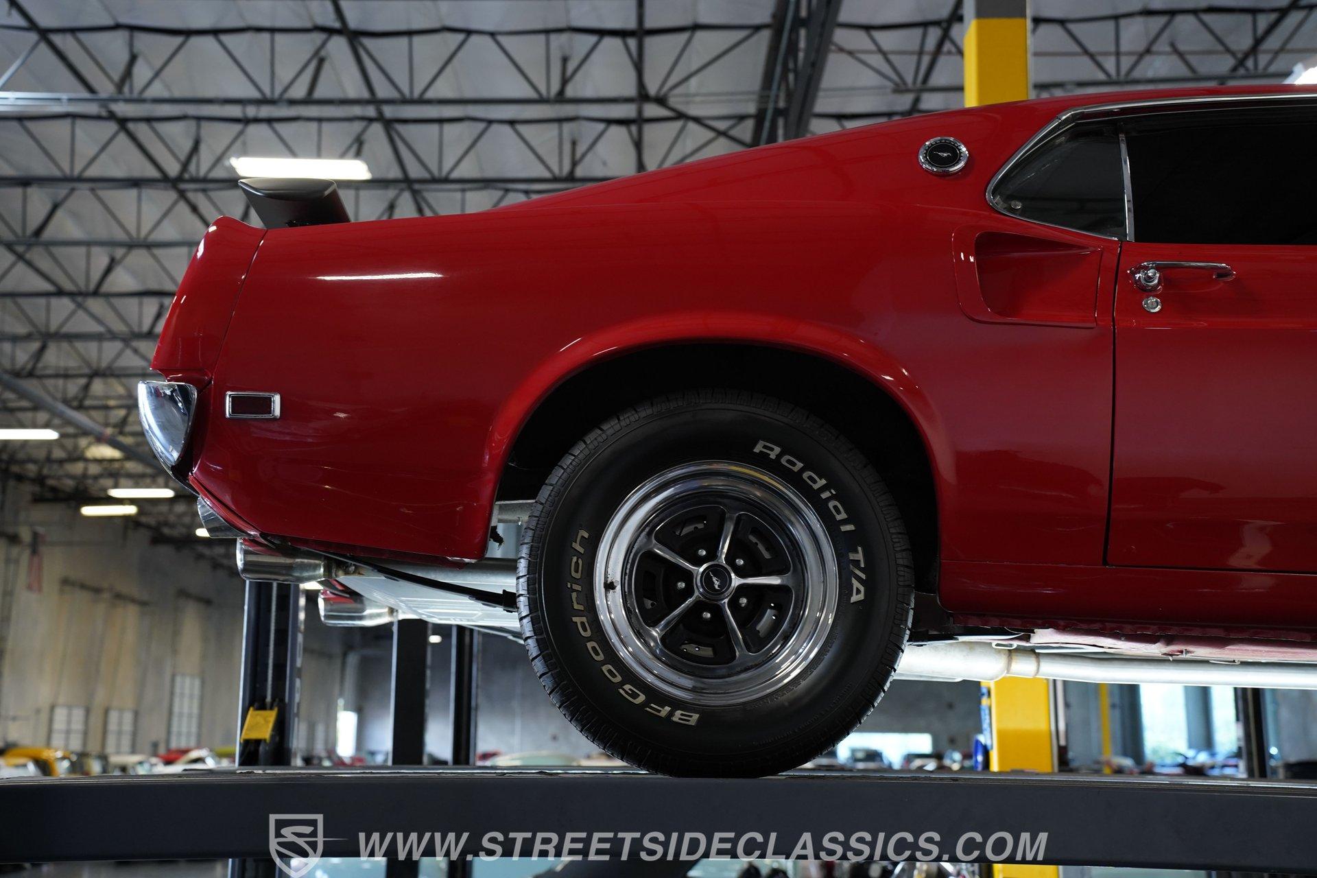 If a candy red classic has always been on your list, here's a top-of-the-line example. This 1969 Ford Mustang Fastback looks as good as it runs. Up front, a Shaker hood with full assembly rises above a clean grille and a bright bumper, featuring clear headlights and a lower black front spoiler that completes the aggressive look. Out back, the Mach 1–style rear spoiler, correct taillights, solid bumper, and dual exhaust carry the theme. Along both sides, the fenders, doors, and quarter panels, featuring signature side scoops, show well with only light wear from enjoying the car. Everything ties together perfectly with the classic Magnum 500 wheels.
