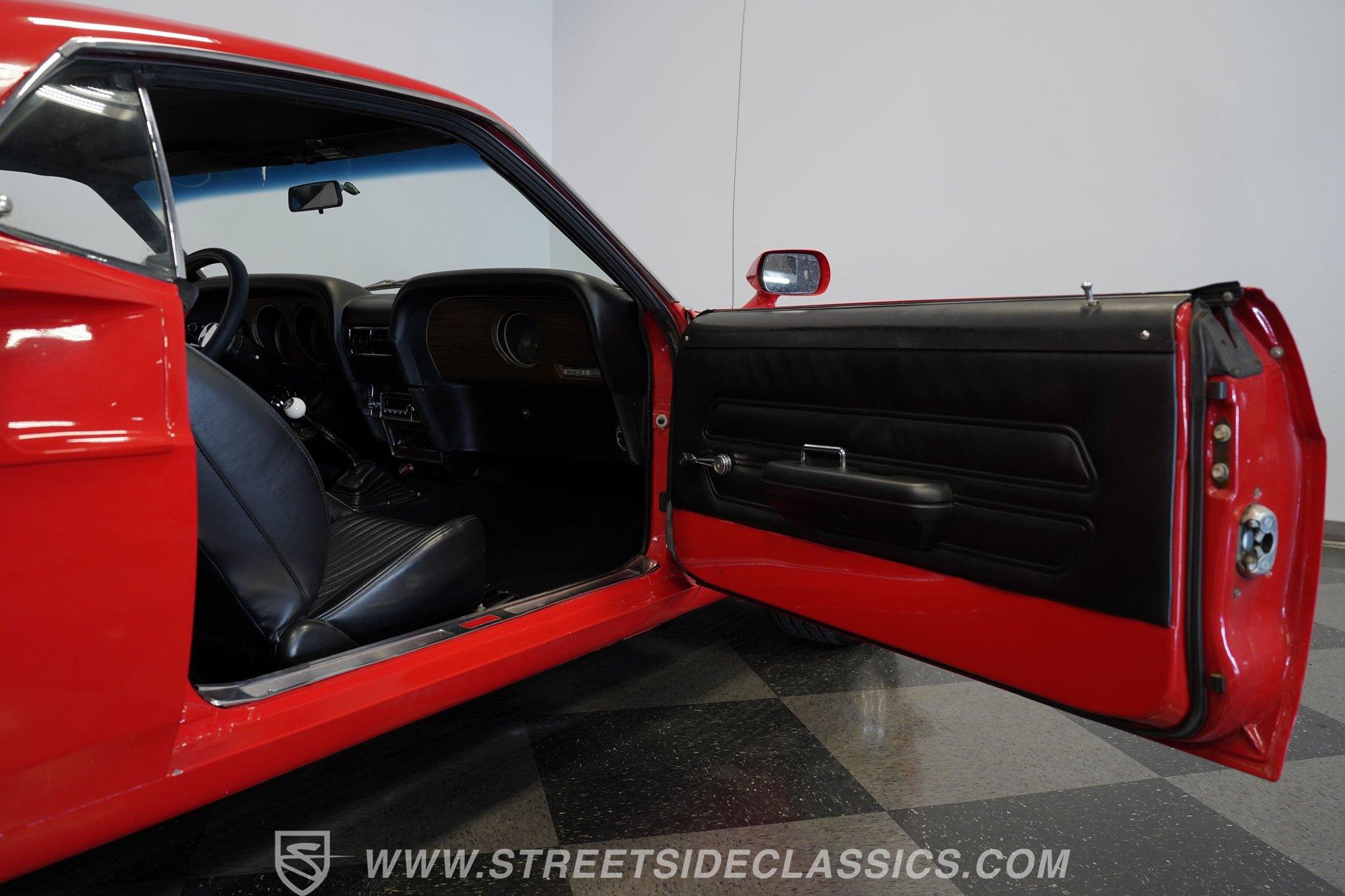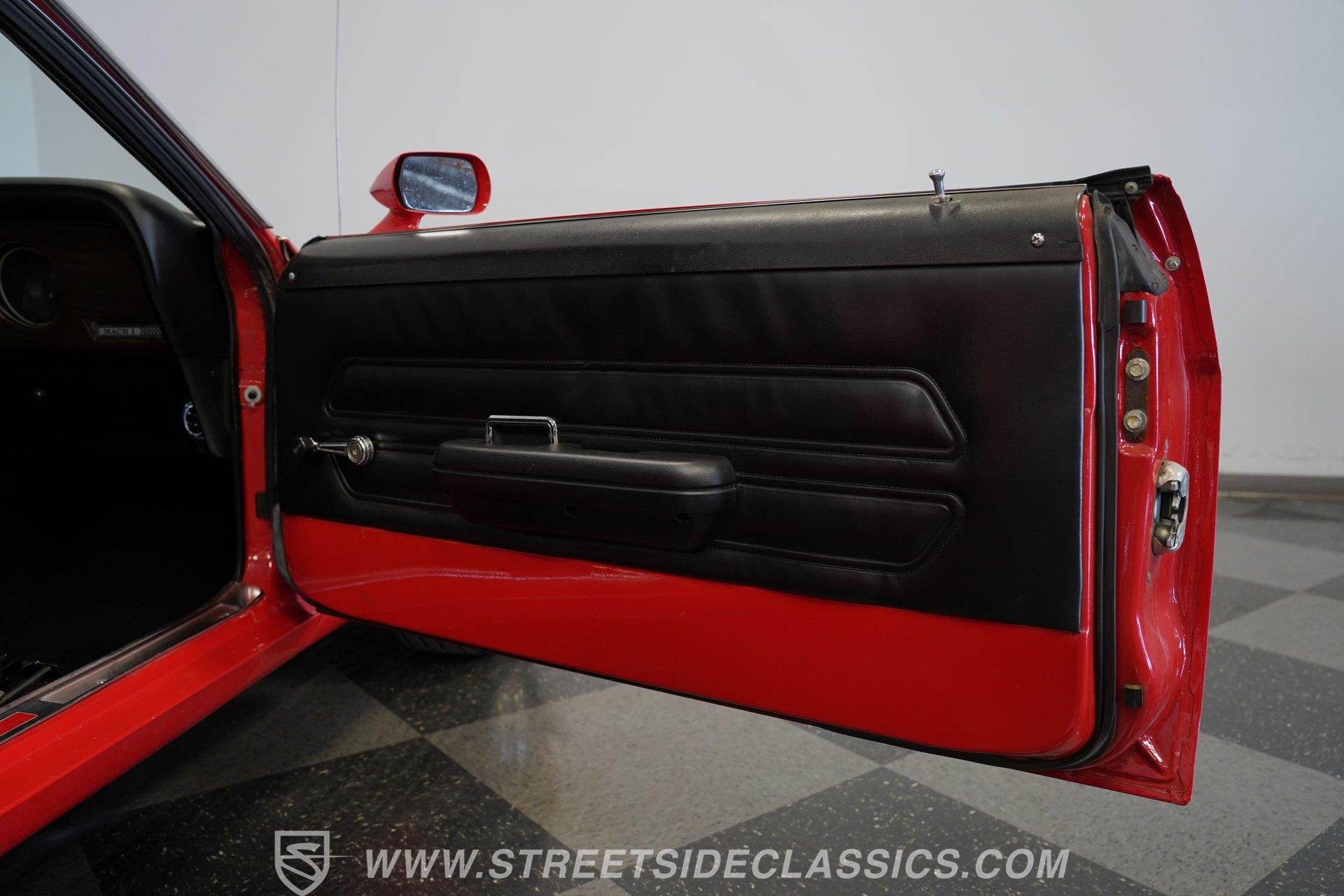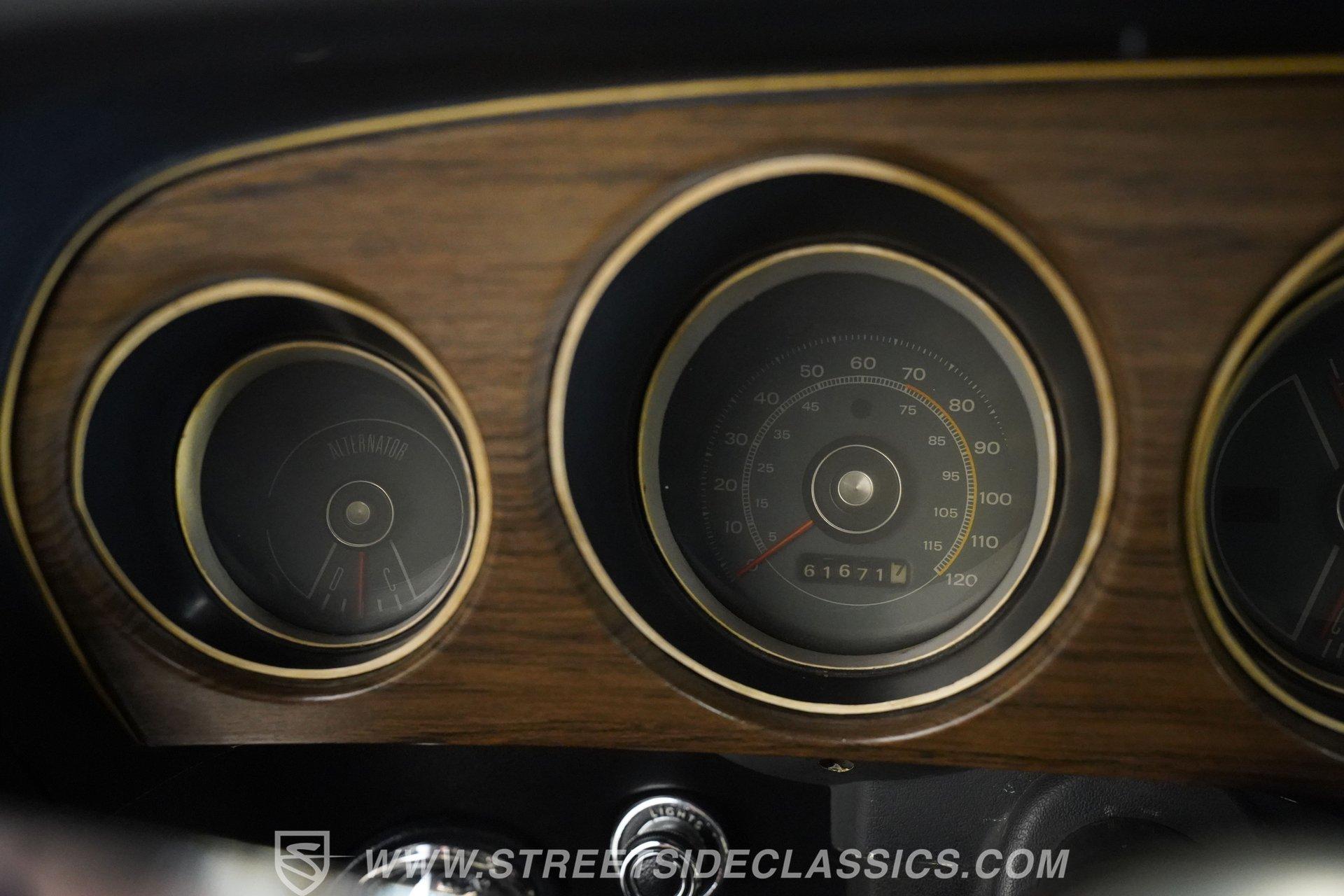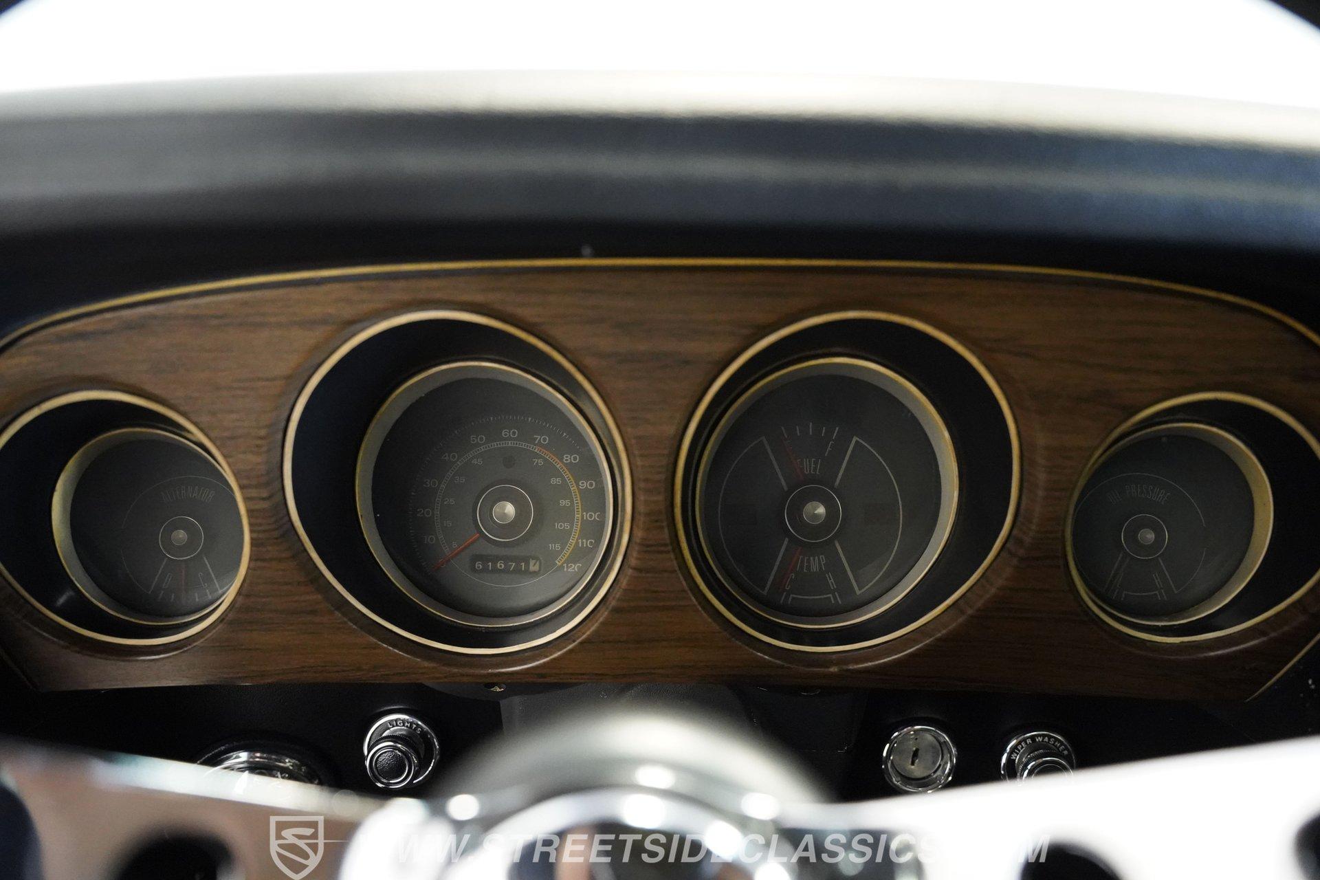 Under the hood sits a strong 351 cubic-inch Windsor V8 topped with a Holley Street Avenger carburetor and Edelbrock Performer aluminum intake. Supporting upgrades include a new fuel system, fresh plugs and wires, a high-flow water pump, and a 4-core aluminum radiator to keep everything running cool and smoothly. Power is sent through a Toploader Ford RUG-E 4-speed manual transmission to an 8-inch rear axle. The suspension retains a factory-style setup and features upgraded power disc brakes at all four corners, with drilled and slotted rotors in the rear. Fifteen-inch Magnum 500 wheels wrapped in 225/60R15 front and 255/60R15 rear tires provide the perfect stance. The exhaust uses stock-style manifolds flowing into dual pipes and glasspack-style mufflers for that unmistakable muscle car sound.