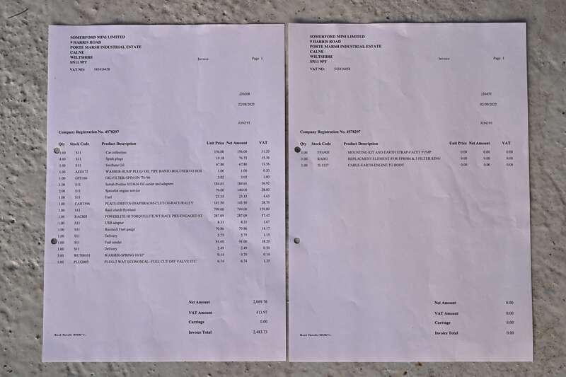 - Starting with an excellent, rust-free shell, the rally spec includes: a roll cage from Stone Motorsport, larger rear suspension turrets (to accommodate AVO coil-overs), a front bulkhead box to accept a ram-air system, a Curley carbon-fibre dashboard, OMP seats and harnesses, a custom wiring loom, a fresh air roof vent, handheld extinguishers and a plumbed-in extinguisher, AVO coil-overs all around, Tilton fully adjustable pedal box, KAD wide-track front hubs with 6-pot KAD alloy callipers, a lightweight rear beam axle with custom billet alloy rear radius arms from Track Day Performance, a KAD rear disc brake conversion with alloy callipers, adjustable front lower arms, reinforced front and rear subframes, electric power steering pump and Avon CR6ZZ tyres mounted on new 10"x6" Minilite wheels