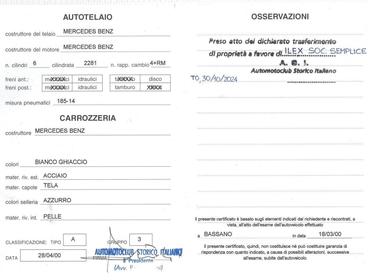 In 2006, the fourth and current owner (also from Bassano del Grappa) continued to preserve the car meticulously, performing all mandatory inspections and documented maintenance.